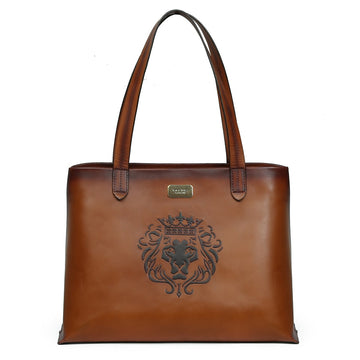 Shopping Bag for Women Tan Leather Top Zip Opening by Brune & Bareskin