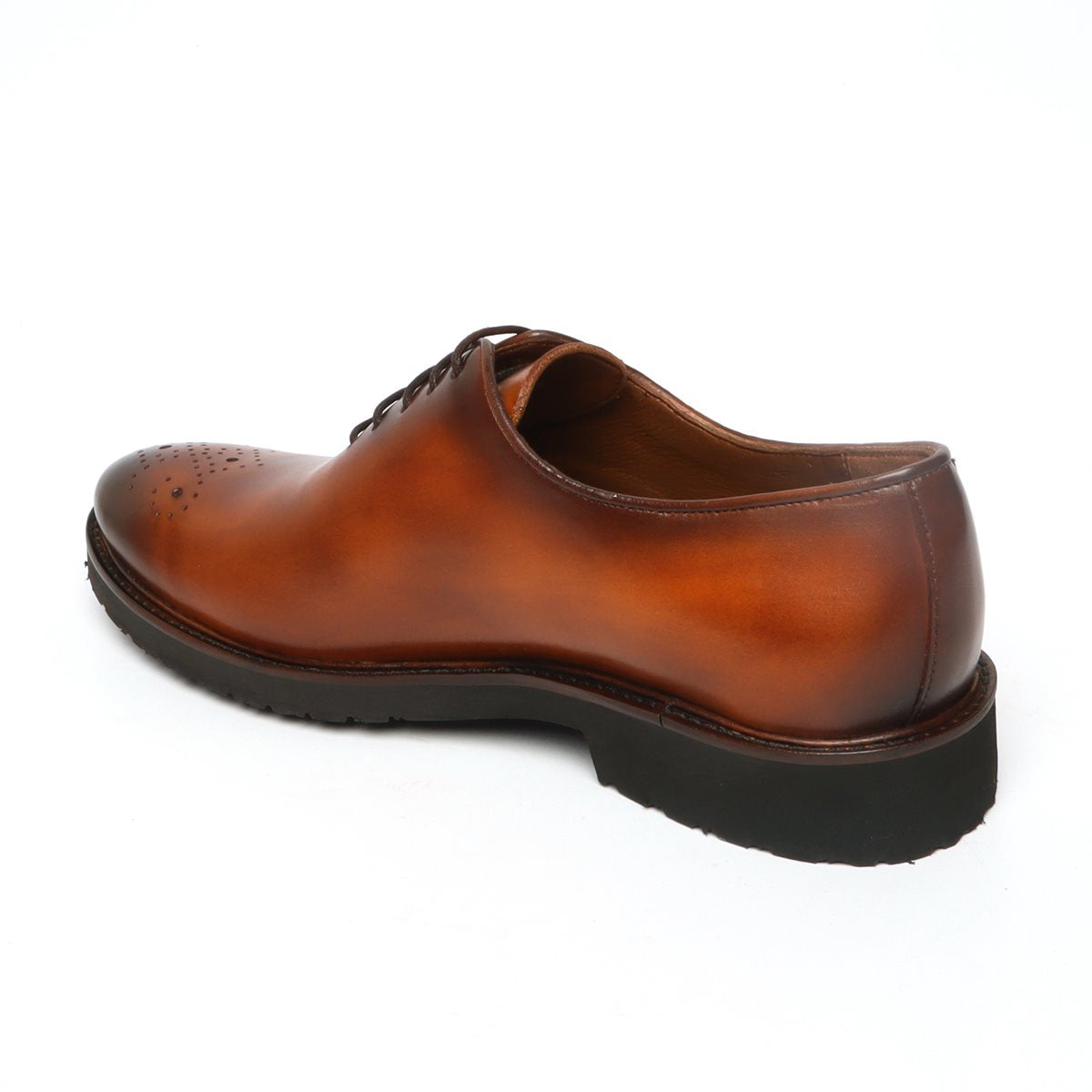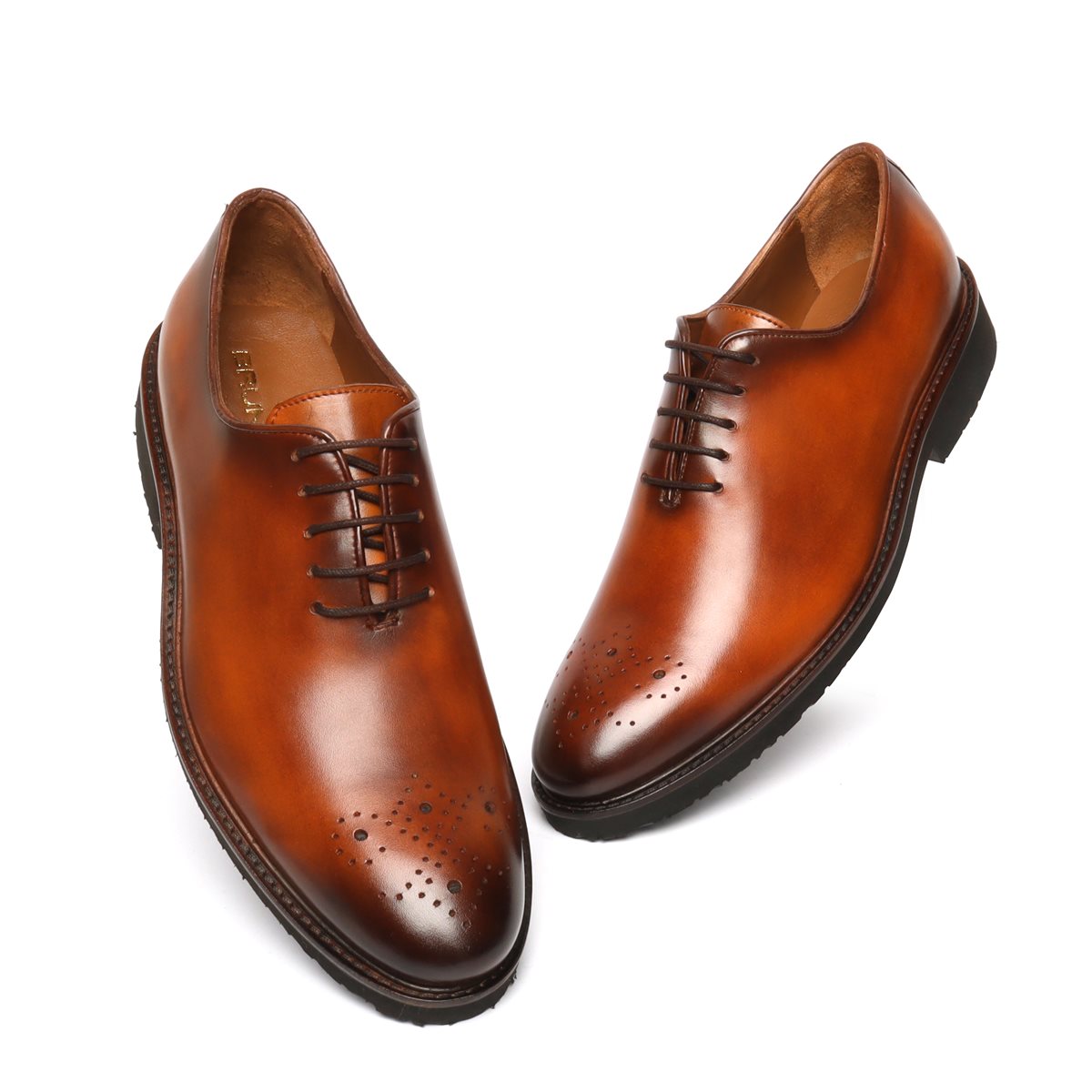Light Weight Tan Leather Shoes Whole Cut/One Piece Medallion Toe Oxford Lace-Up By Brune & Bareskin