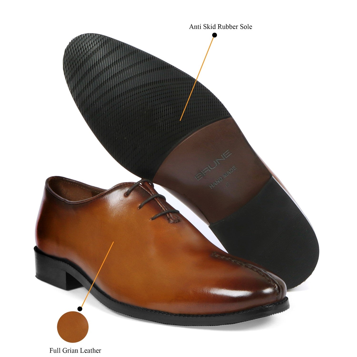 Cut In one piece Natural Crust Leather and hand finished with this burnishing Effect Makes this shoe one of the kind. The mid-stitched design on the toe provides elegance in style. When you choose to wear branded, handcrafted shoes by Brune & Bareskin, you are sure to get more than a few glances coming your way. These high-ending leather shoes with a 3-lace design are crafted with a fit and finish that spell designer wear. Flaunt your fashion style in this pair of hand-painted leather shoes for your first one-to-one with your boss and come away leaving an unforgettable impression.