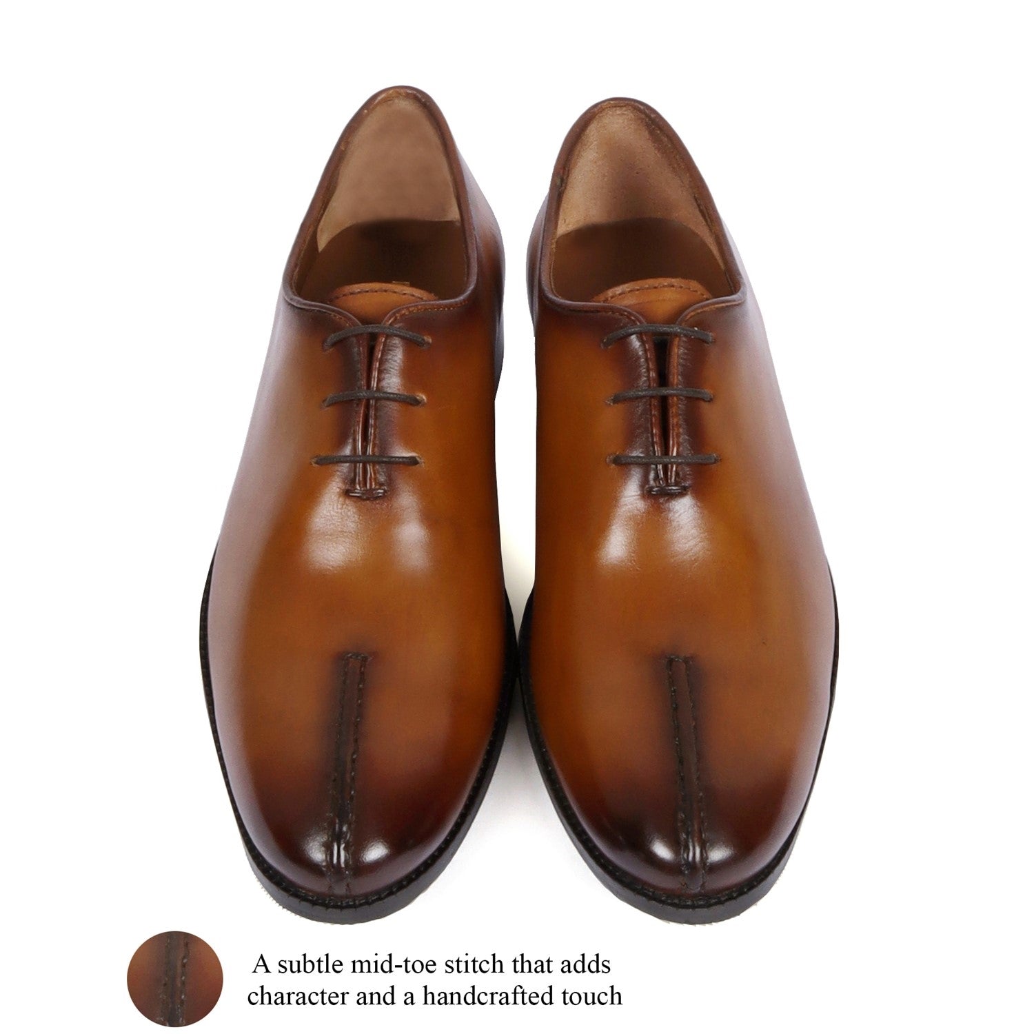 Mid Stitched 3-Lace Oxford Shoes in One Piece Whole Cut Tan Leather By Brune & Bareskin