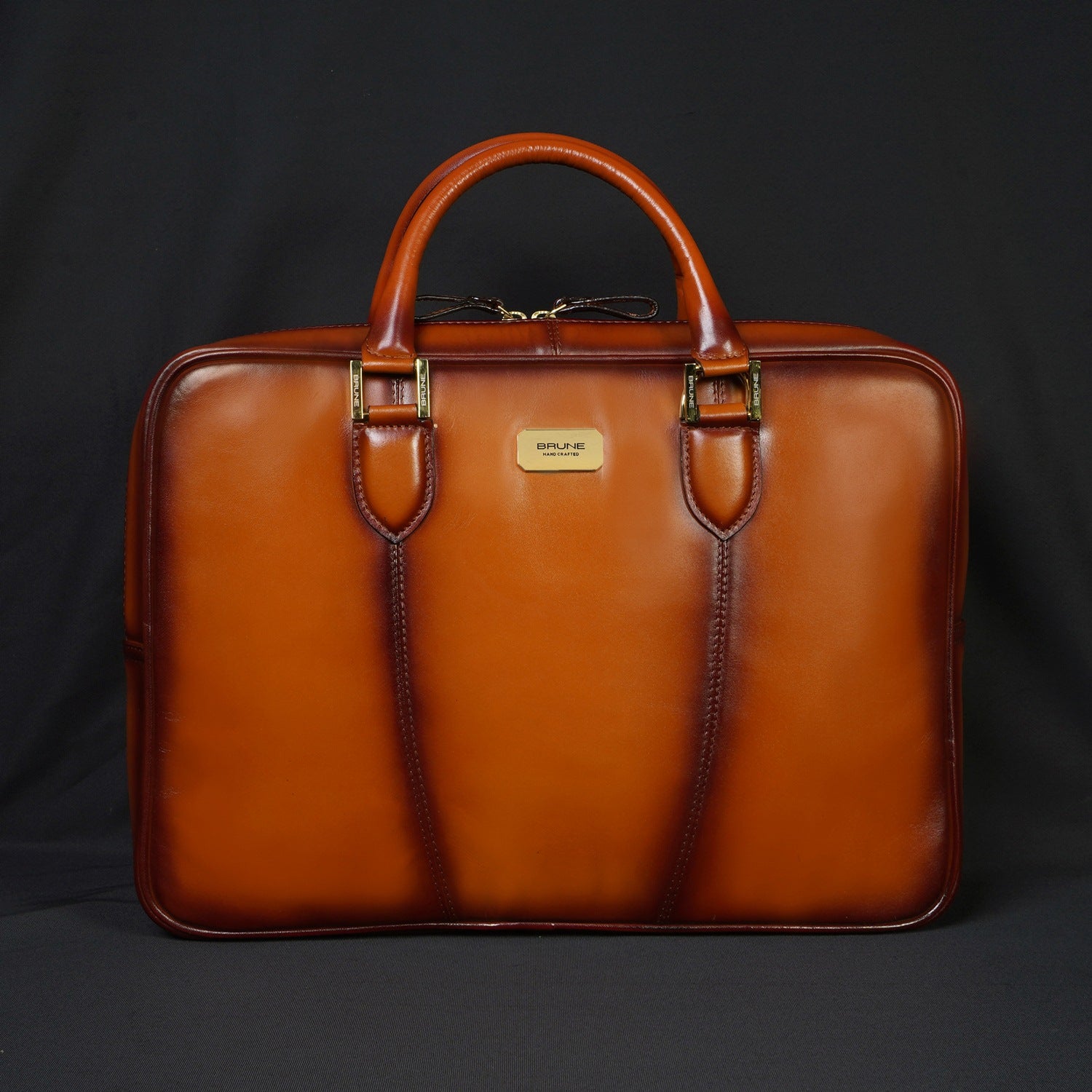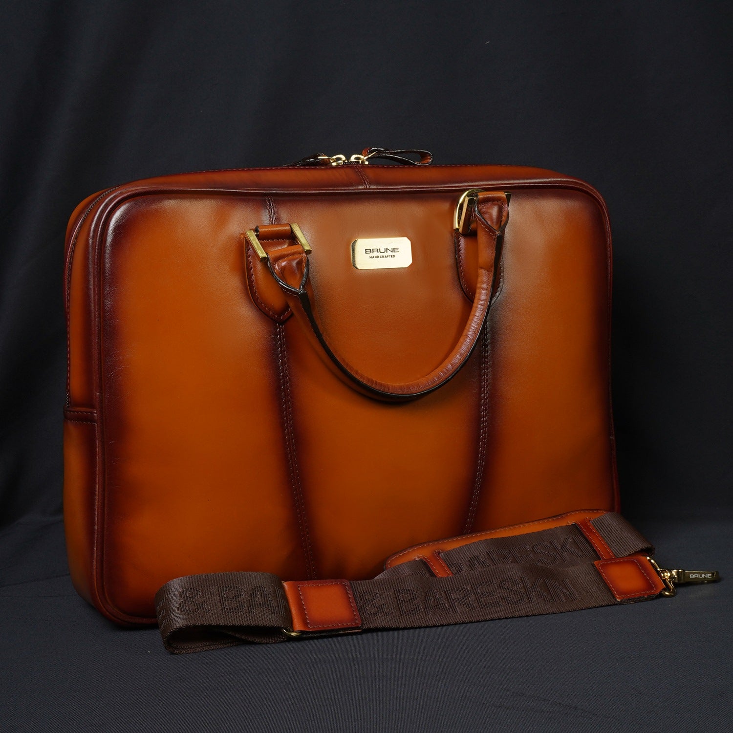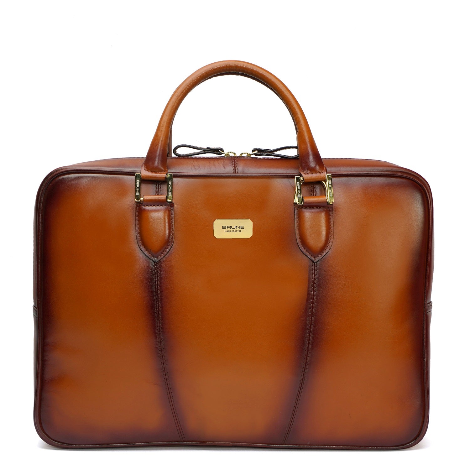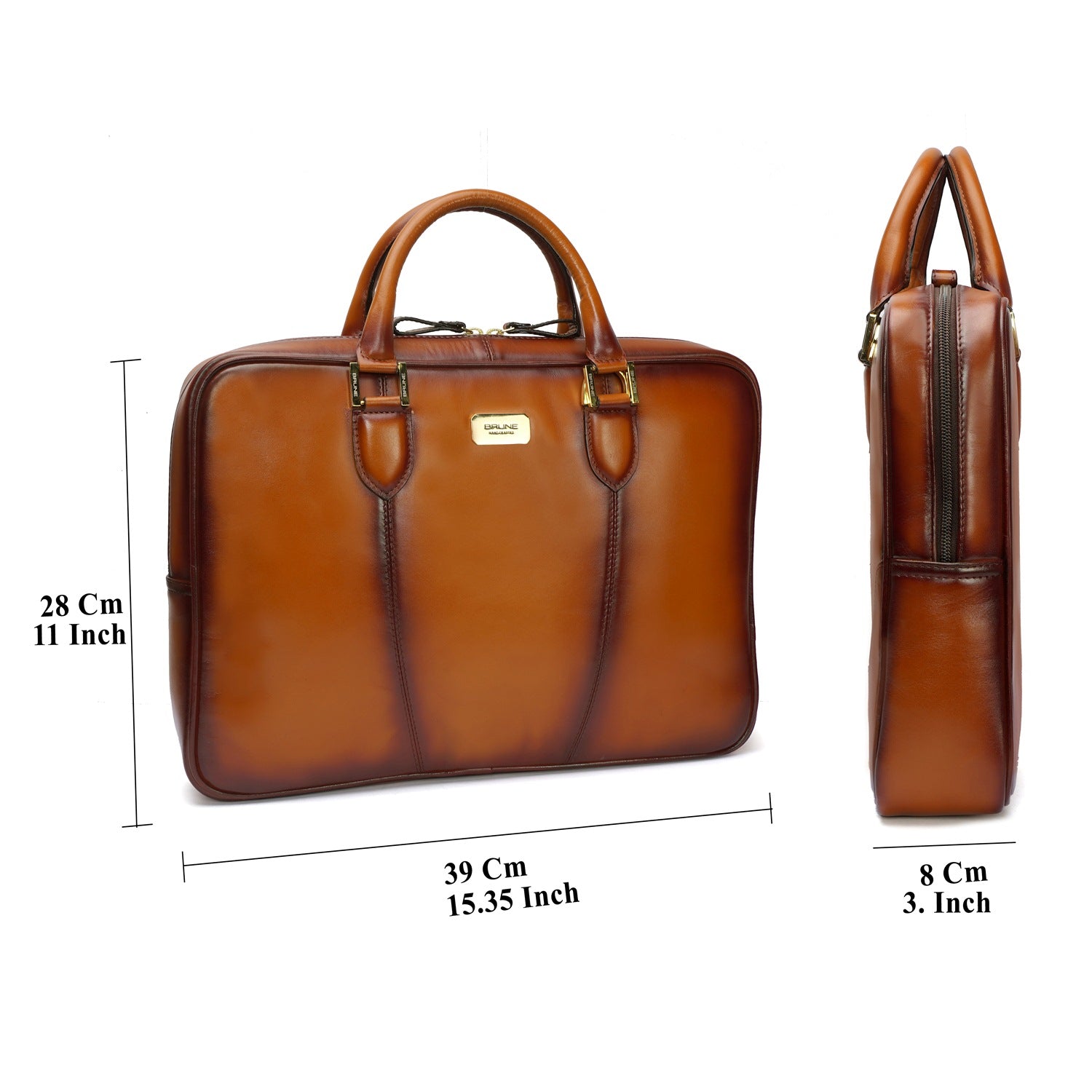 BRUNE & BARESKIN office briefcase makes all the difference on office bounds days with its timeless design and two tone veg tanned leather. Created by skilled artisans. It is a perfect combination of elegant look and usability with large zip compartment along with dedicated laptop pocket inside. It features large zip pockets on front and rear of the bag. The shoulder strap buckle is placed creatively with handle strap buckles to maintain the sleek look.