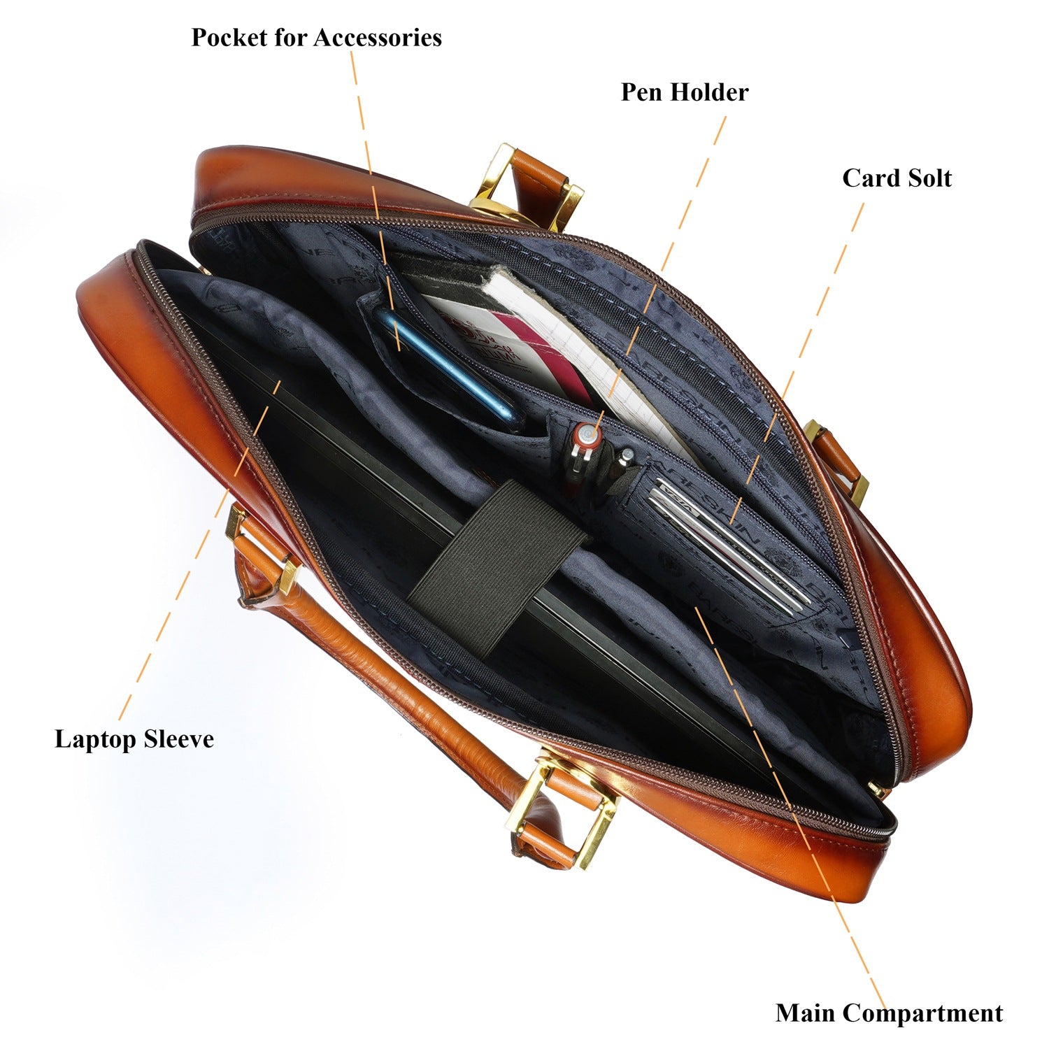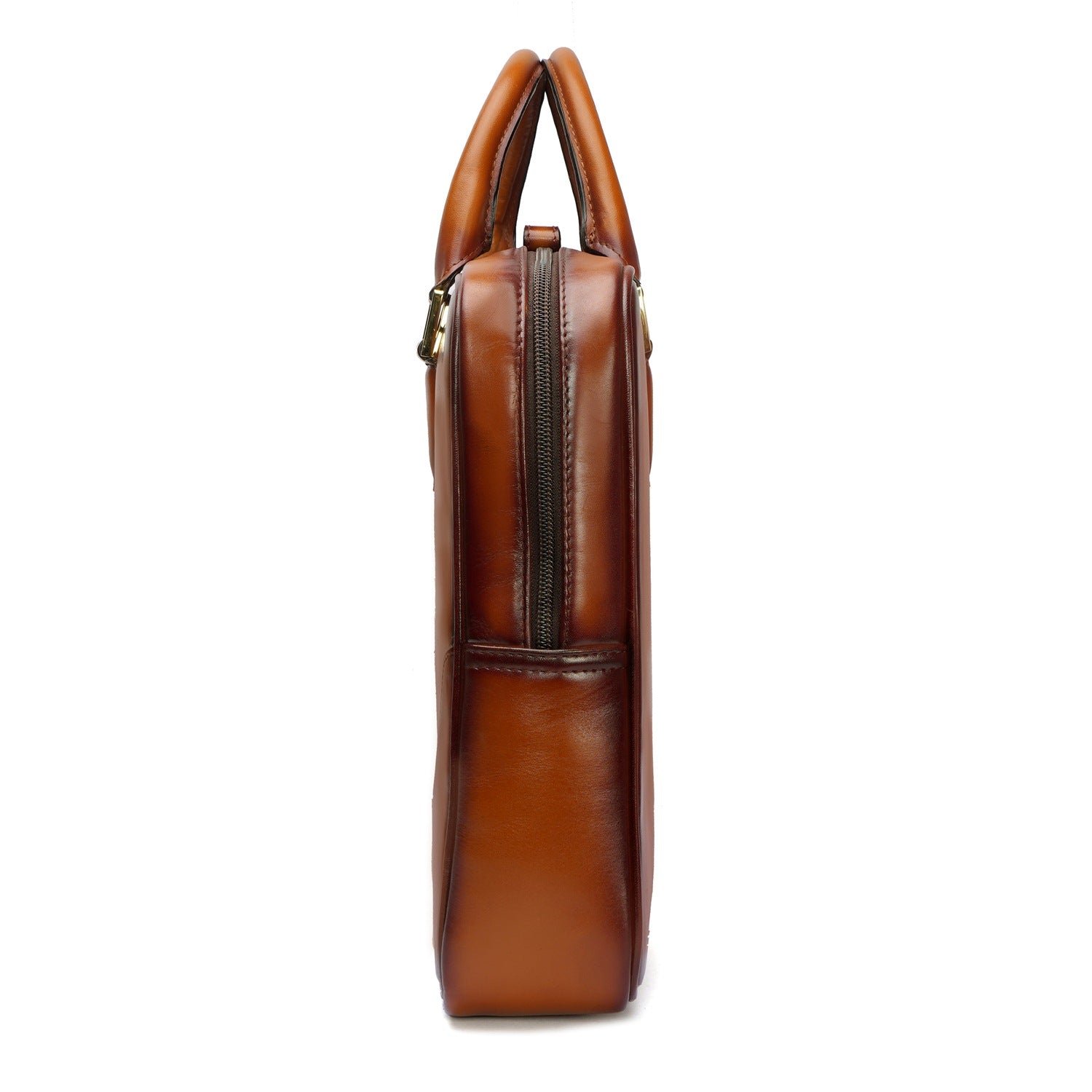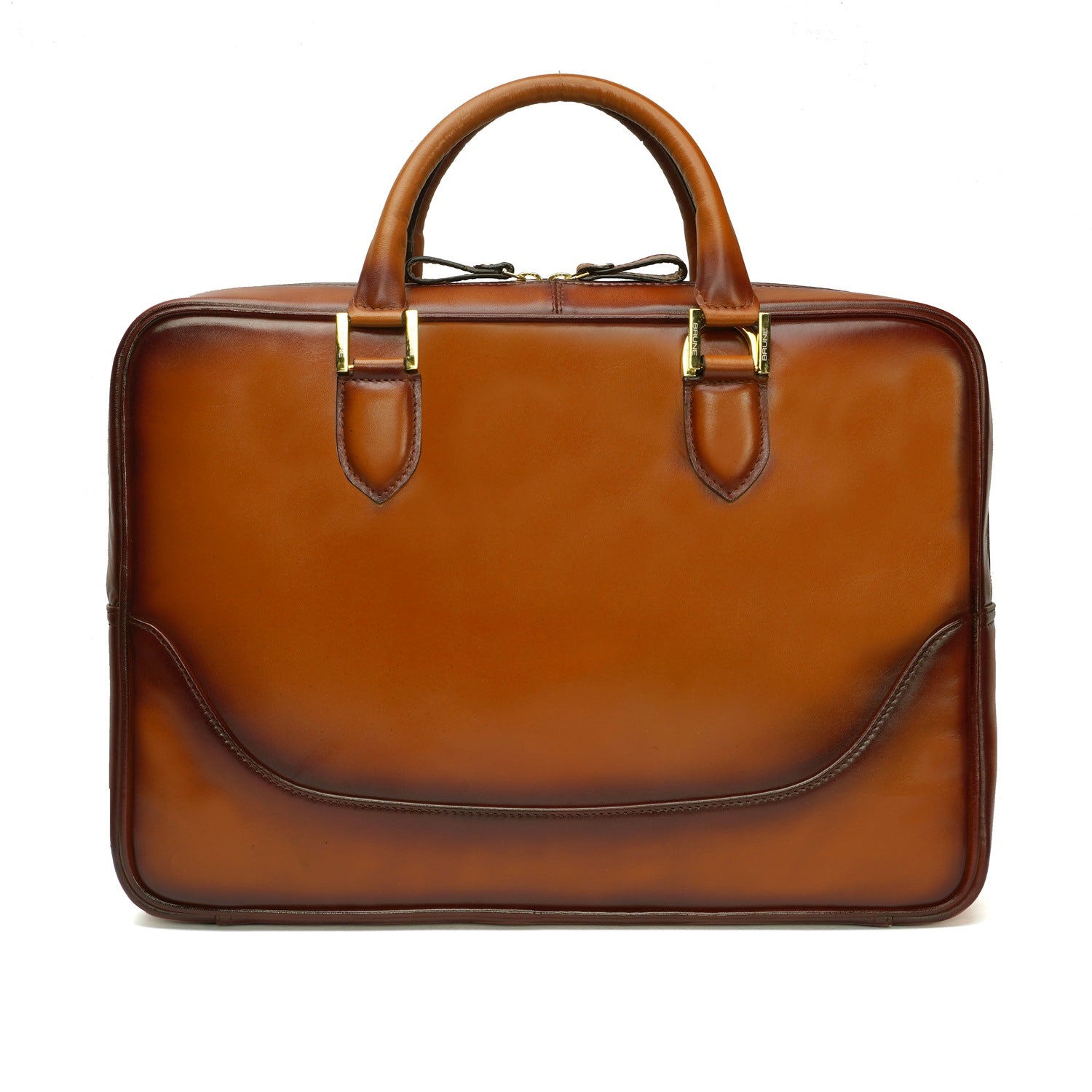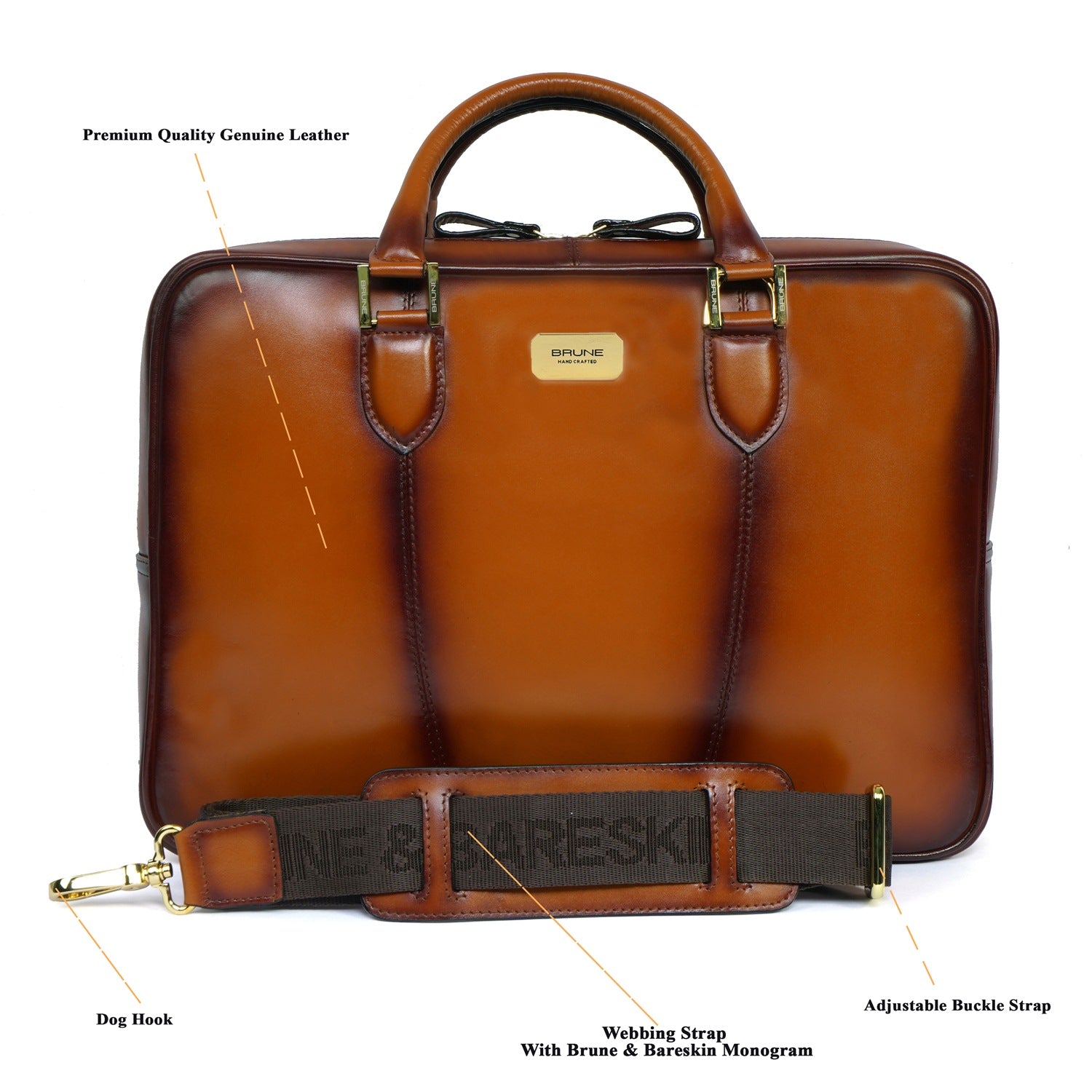 BRUNE & BARESKIN office briefcase makes all the difference on office bounds days with its timeless design and two tone veg tanned leather. Created by skilled artisans. It is a perfect combination of elegant look and usability with large zip compartment along with dedicated laptop pocket inside. It features large zip pockets on front and rear of the bag. The shoulder strap buckle is placed creatively with handle strap buckles to maintain the sleek look.