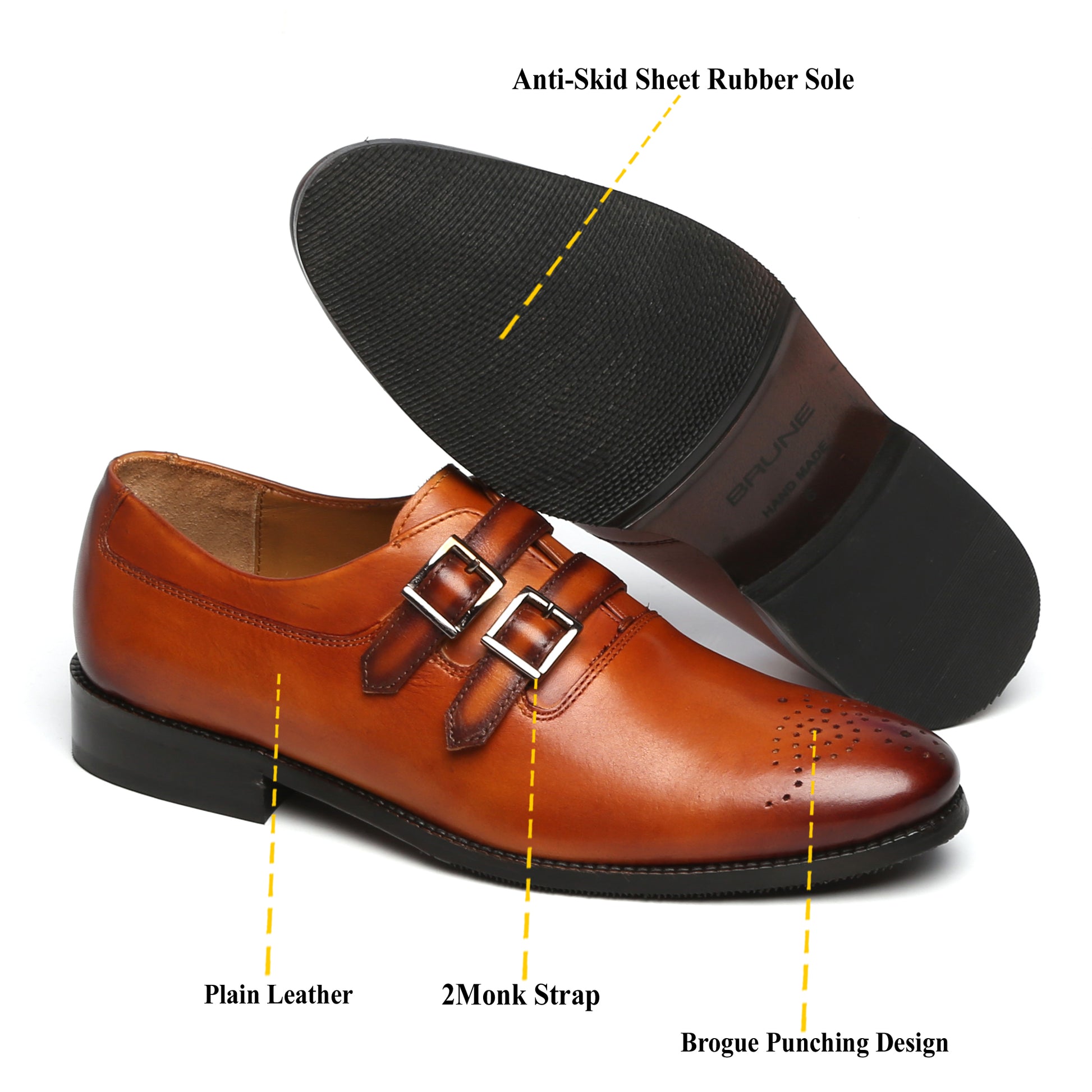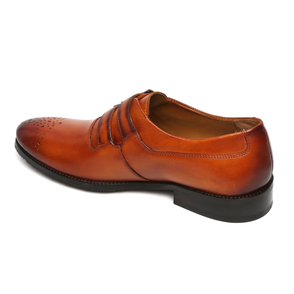 This stylish parallel double monk is made to stand you out from the crowd. If it is a pair of hand Made leather shoes by BRUNE & BARESKIN, then you are sure to be satisfied with the fit and the style. This burnished effect is specially attained with the Patina Finish technique. This Tan Italian Leather Shoes are handcrafted with immense precision. Padded foot-bed provides the comfortability to wear it all day long.