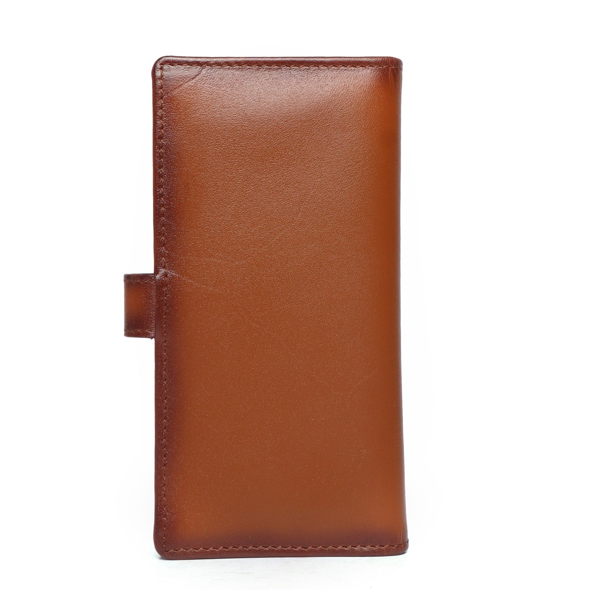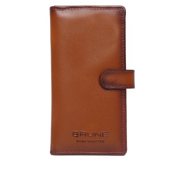 Tan Plain Leather Long Wallet with Multi-Pockets