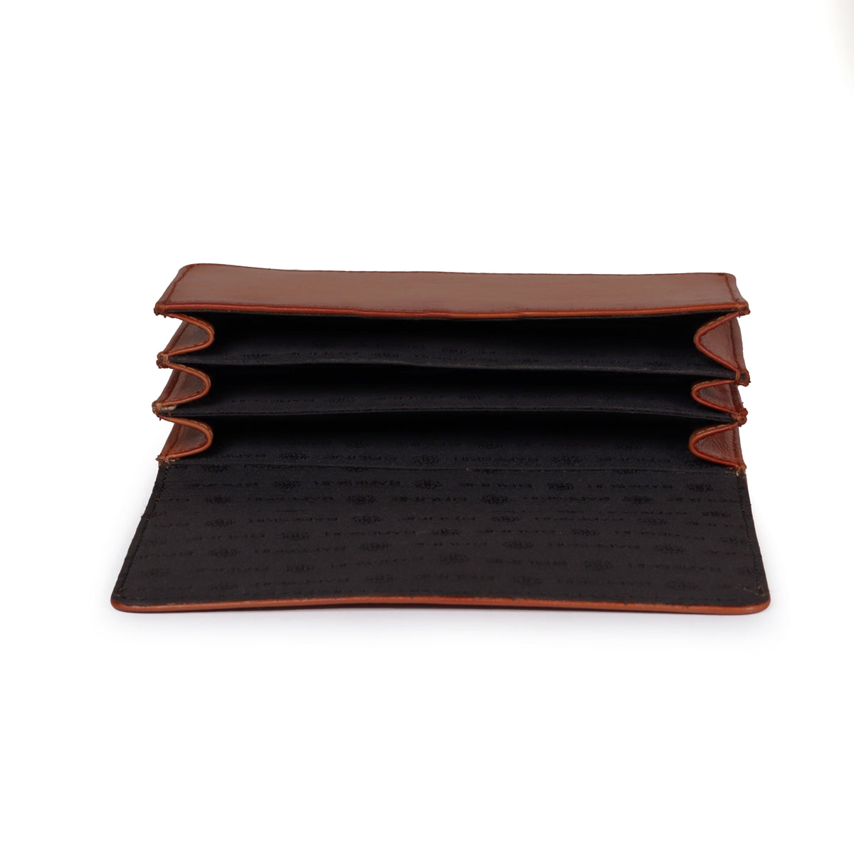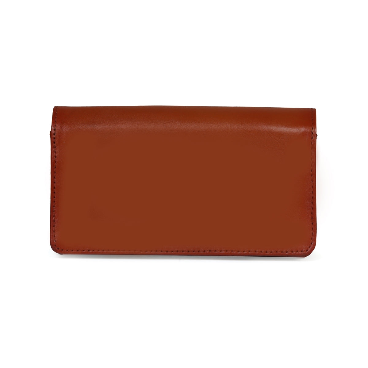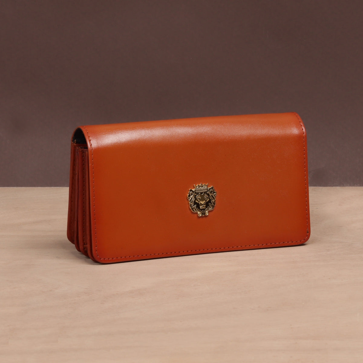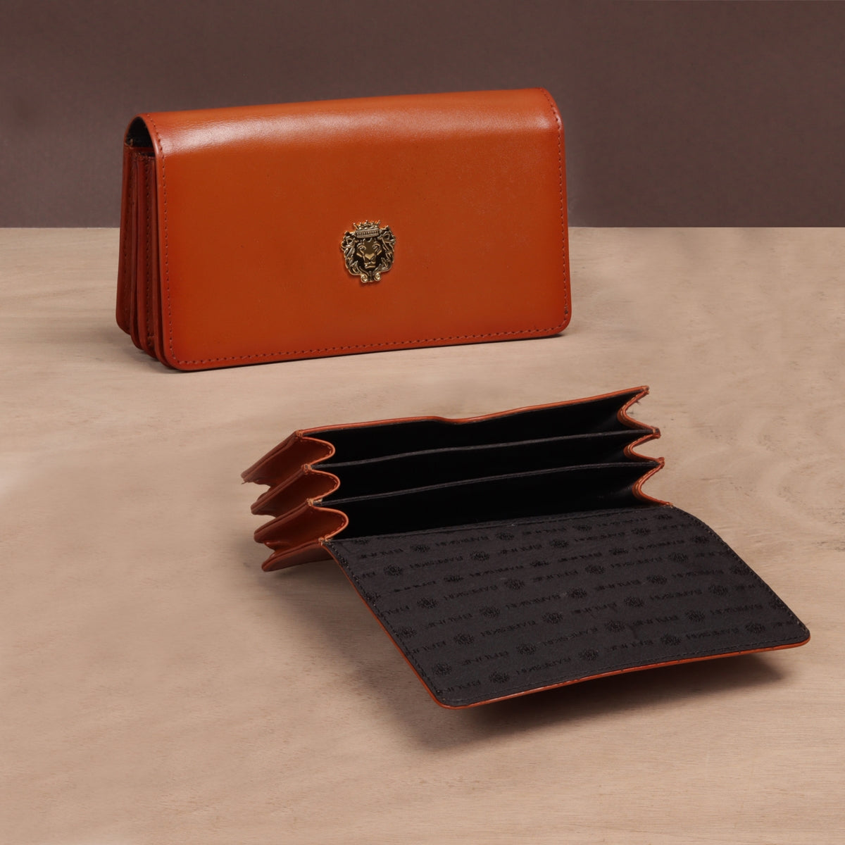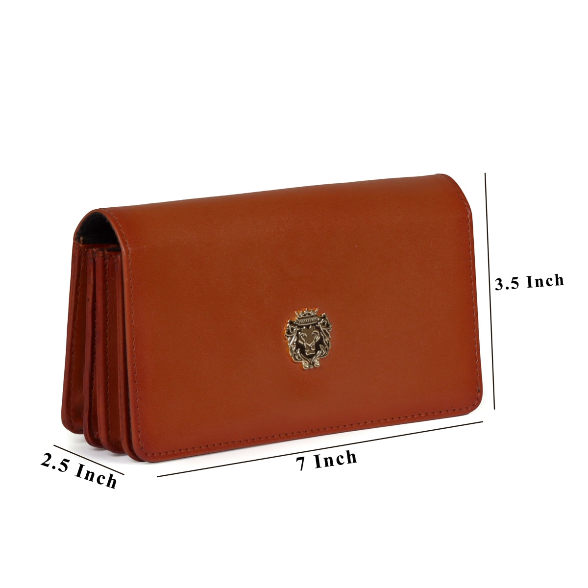 Tan Plain Soft Touch Genuine Leather Ladies Clutch/Wallet with Metal Lion Logo By Brune & Bareskin