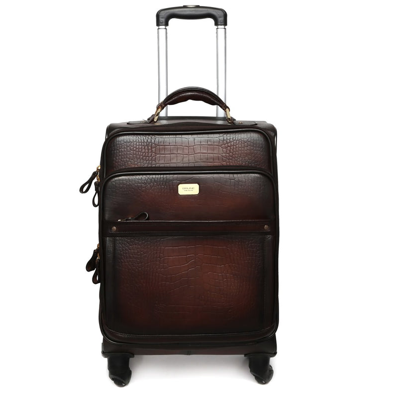 Tan Strolley Travel Bag in Croco Textured Leather