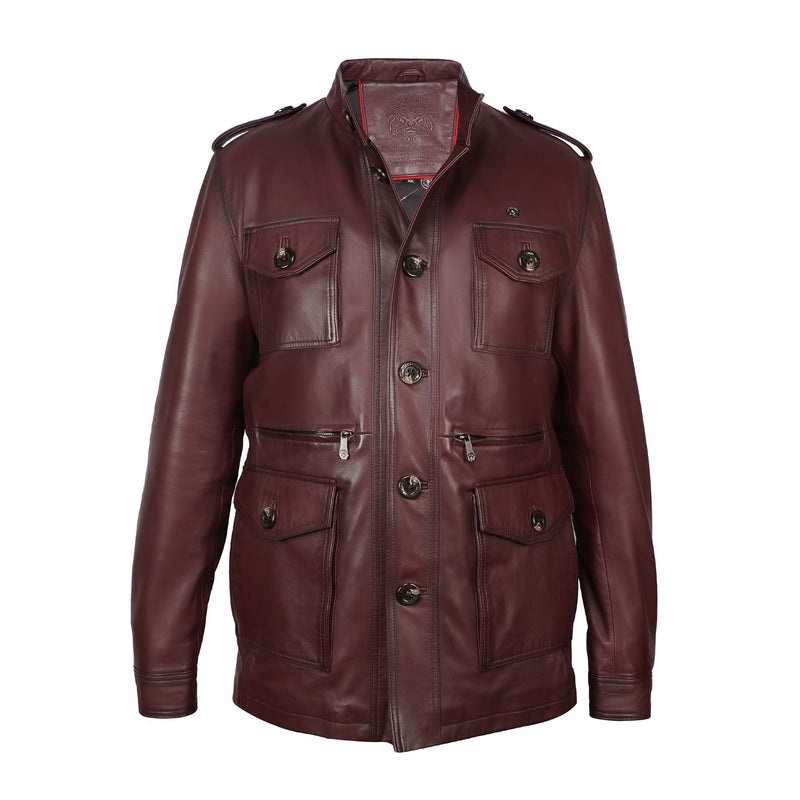 Introducing a luxurious addition to your wardrobe, the Brune & Bareskin Tan Leather Field Coat & Jacket. Handcrafted with genuine leather, this stylish shirt-style jacket features multiple flap pockets and a front button closure, complete with a gun metal lion logo. With a sophisticated look and premium lining, this high fashion field jacket boasts both warmth and style. Perfect for any occasion, it also offers concealed internal pockets, front zipper closure, and a comfortable fit. Upgrade your outerwear game with this exclusive piece.