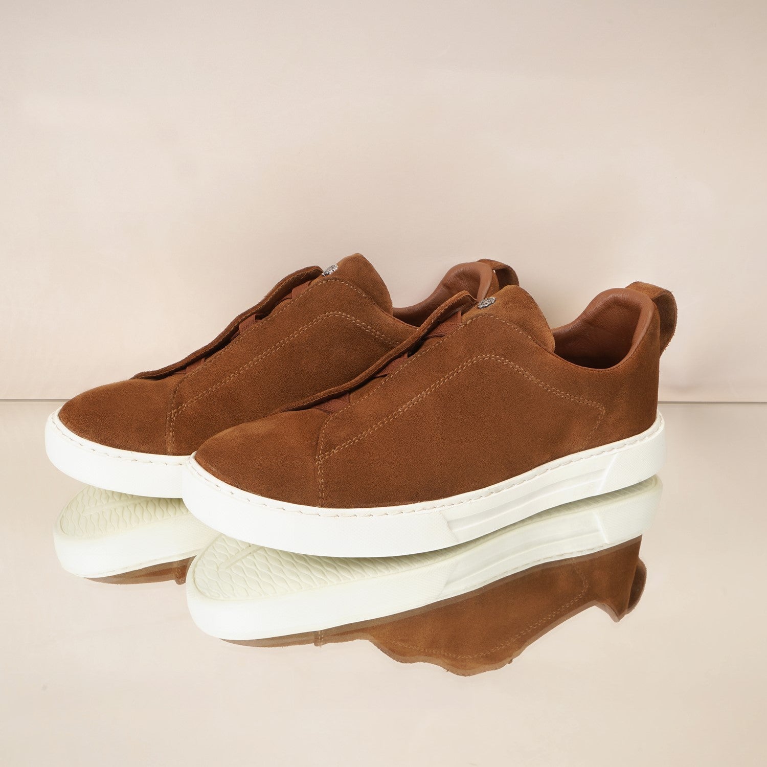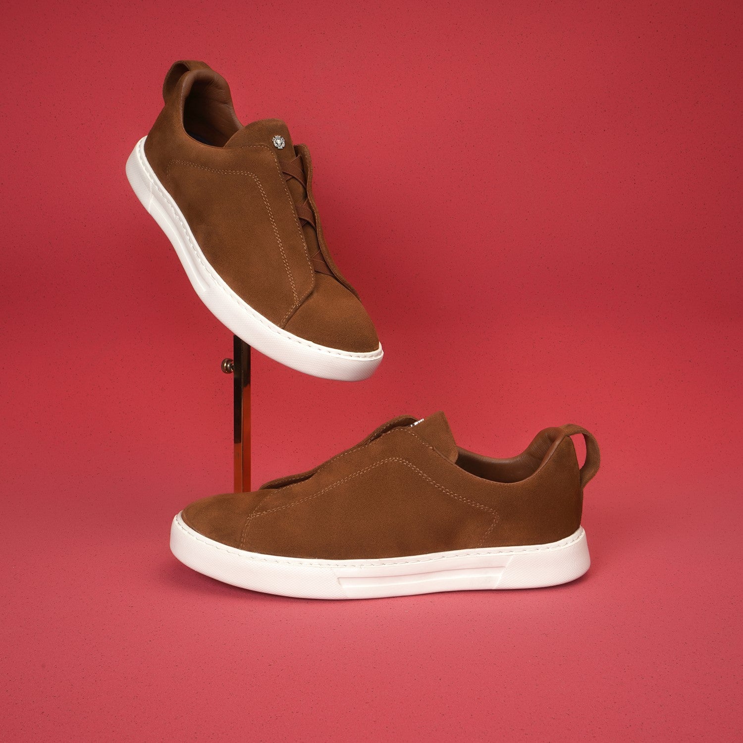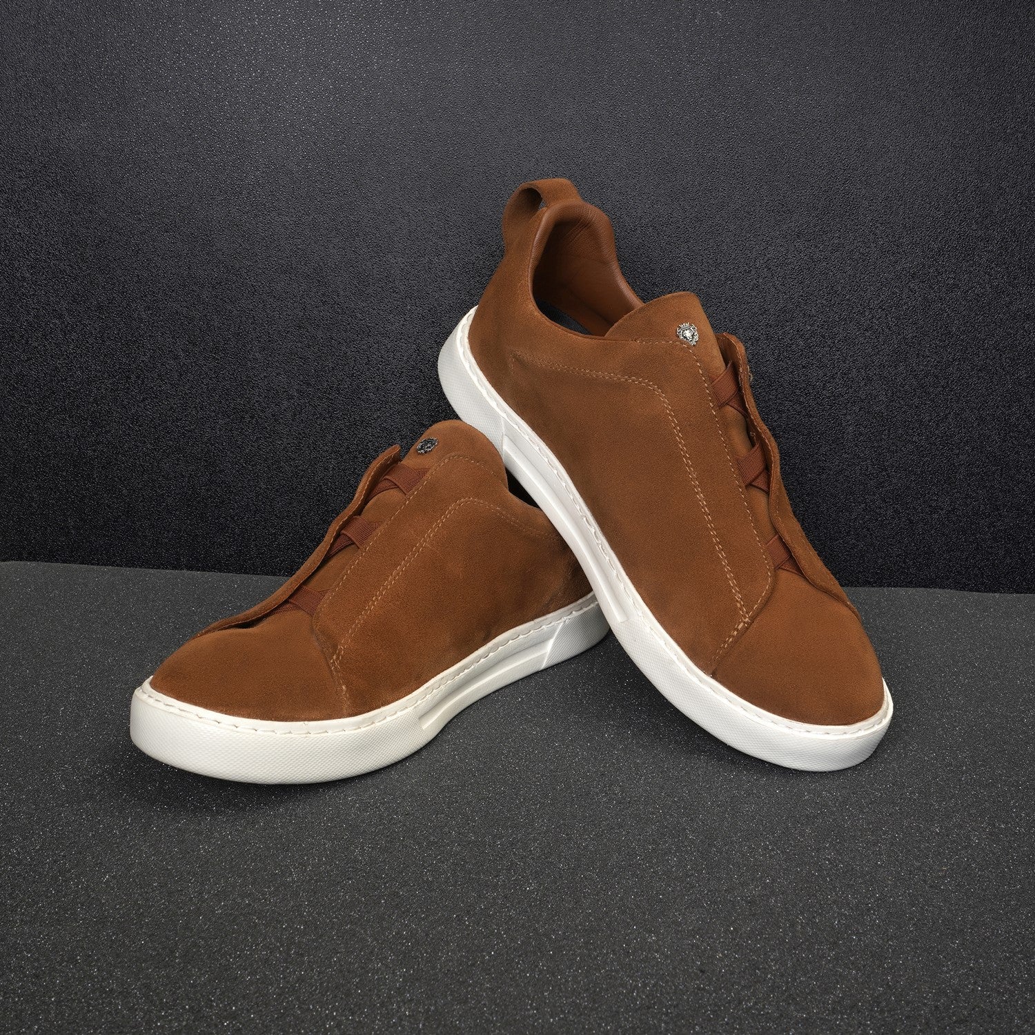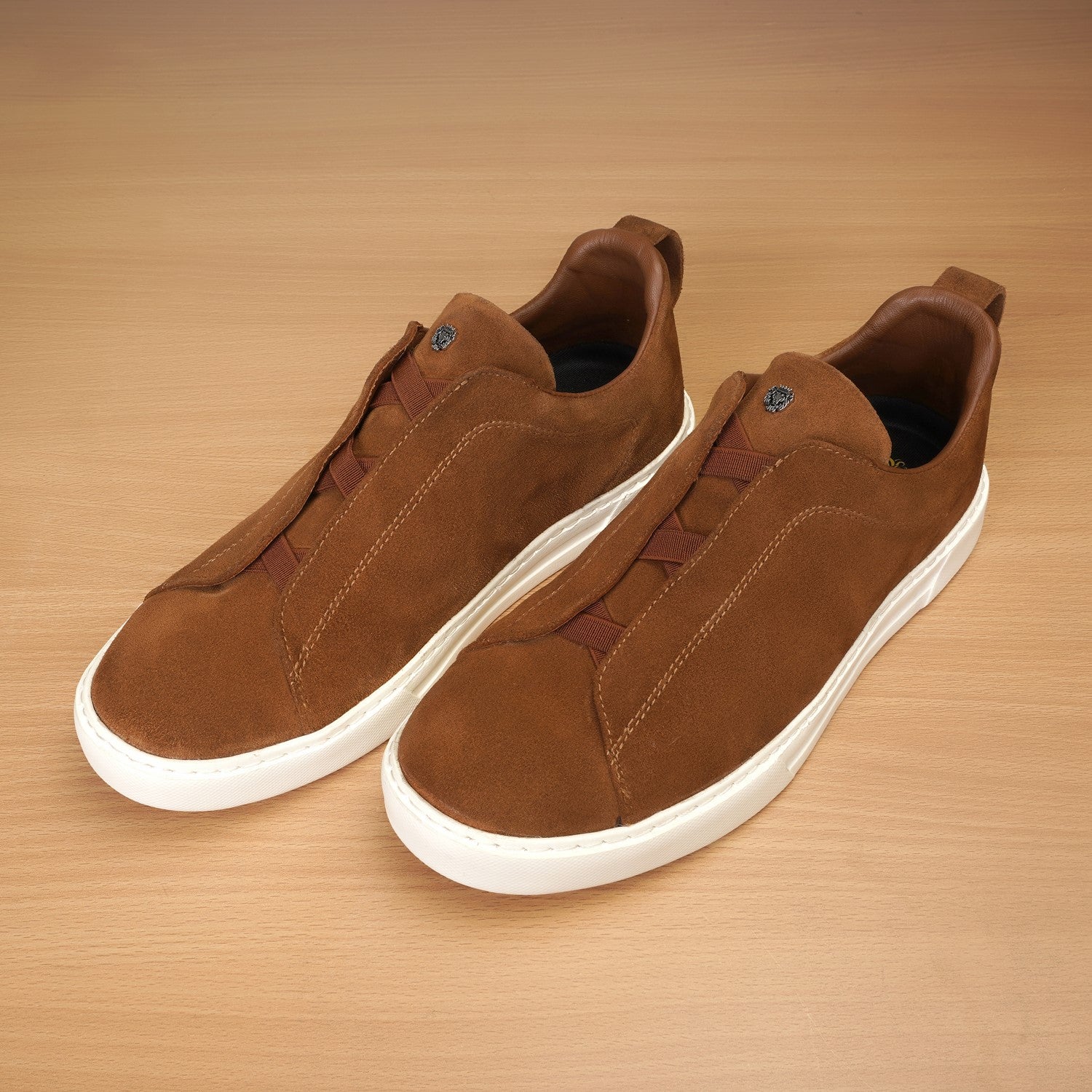 Tan Suede Laceless Leather Sneakers By Brune & Bareskin