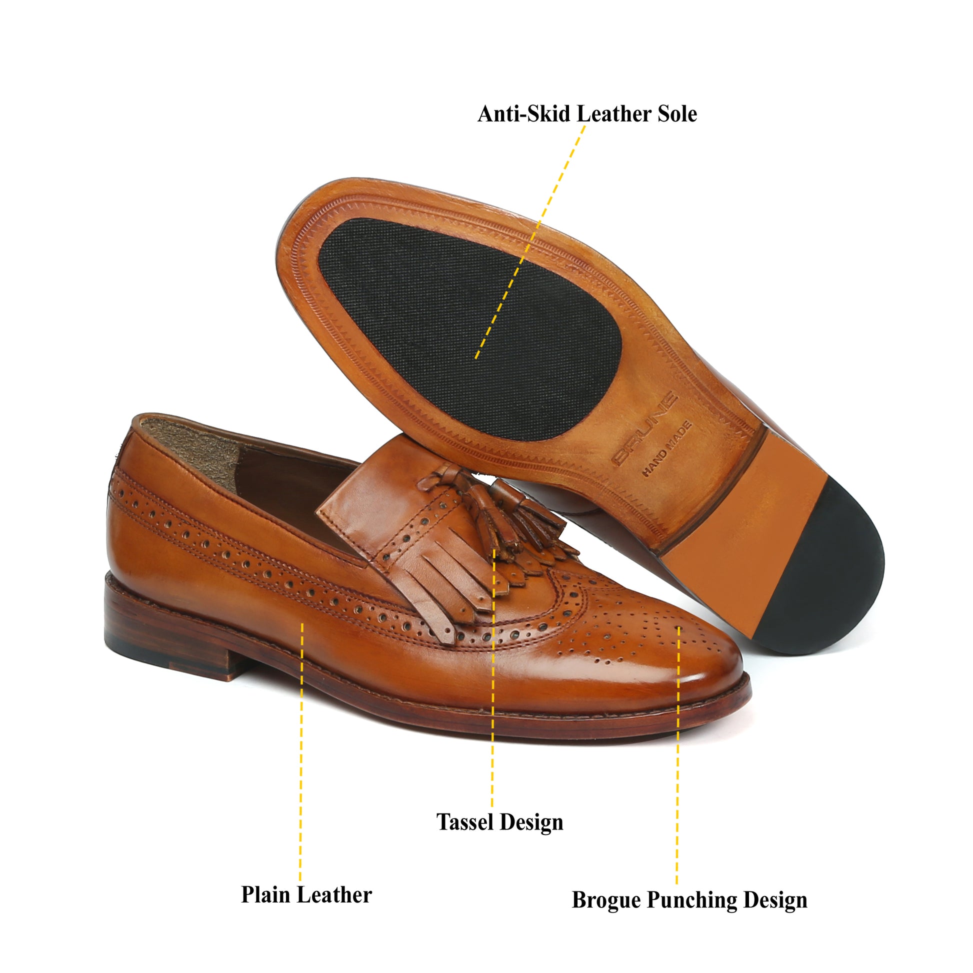 Tan Tassel with Fringes Long Tail Brogue Design Leather Men's Formal Slip-On by Brune & Bareskin