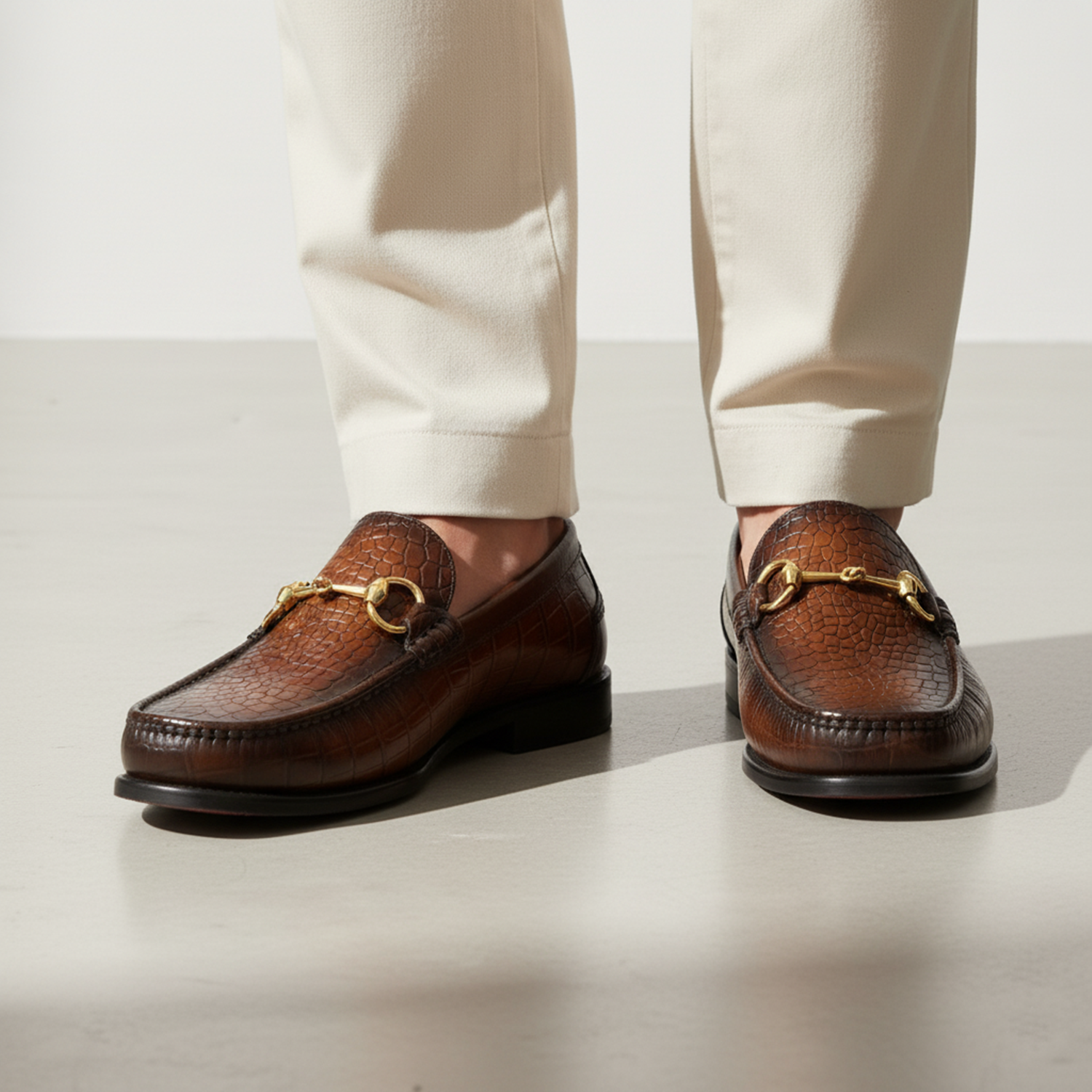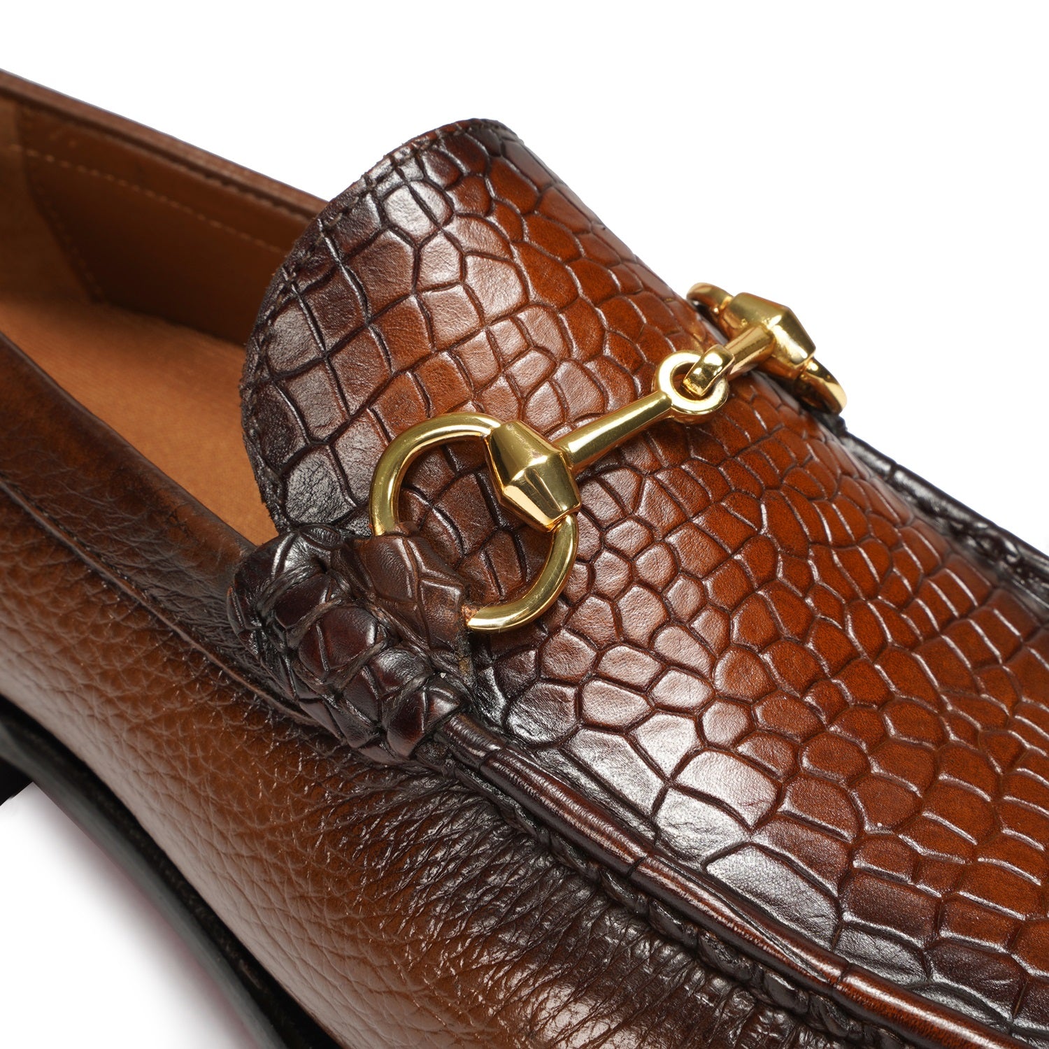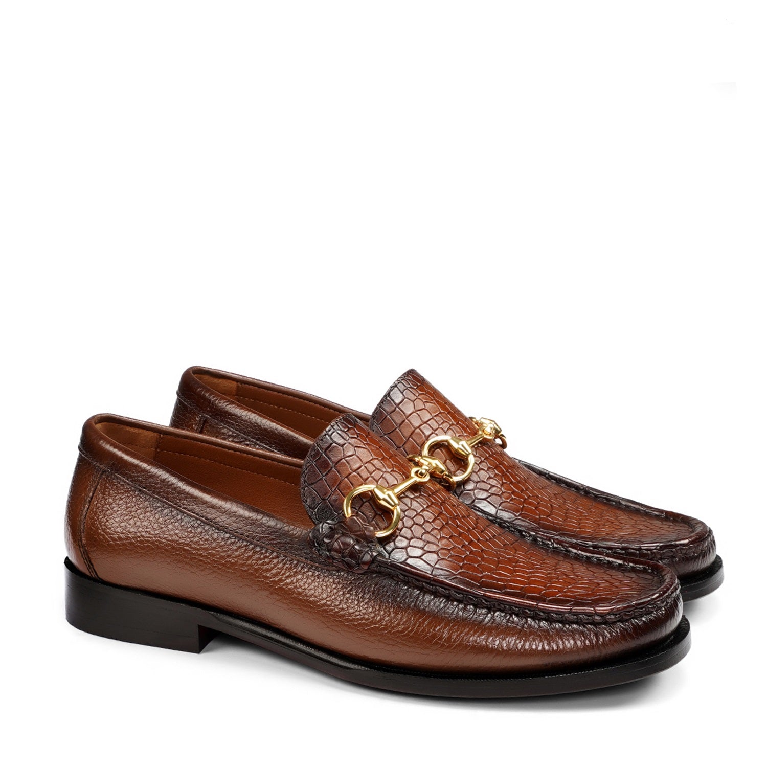 Tan Textured Moccasin with Horse-Bit Buckle Detailing