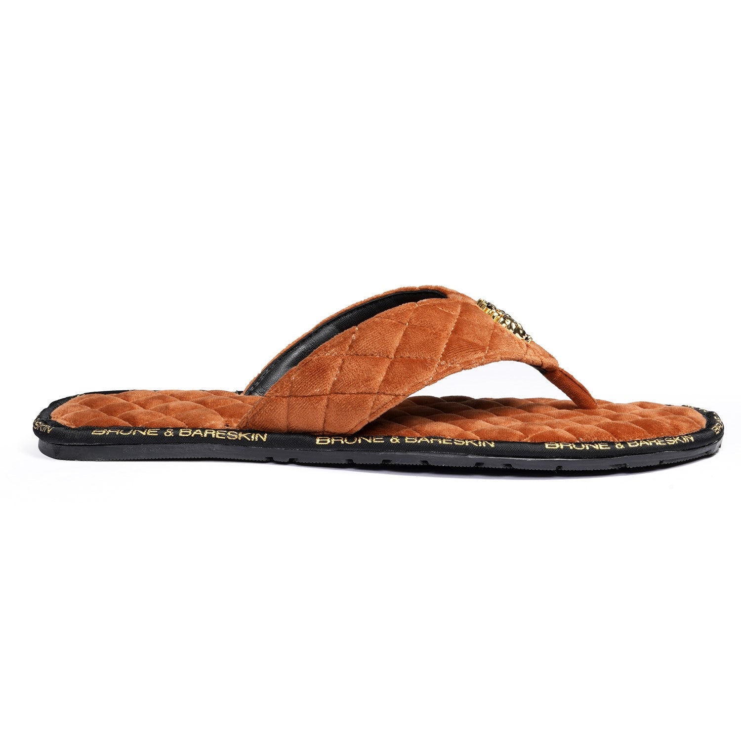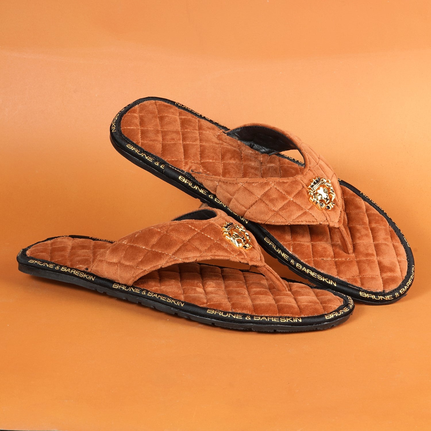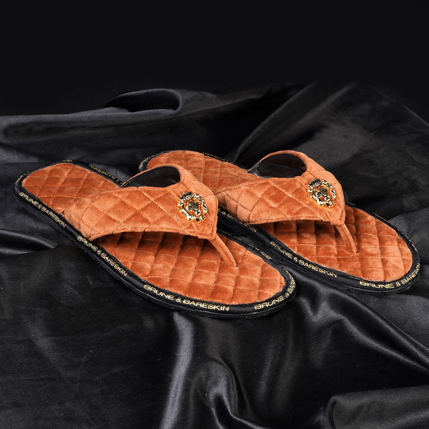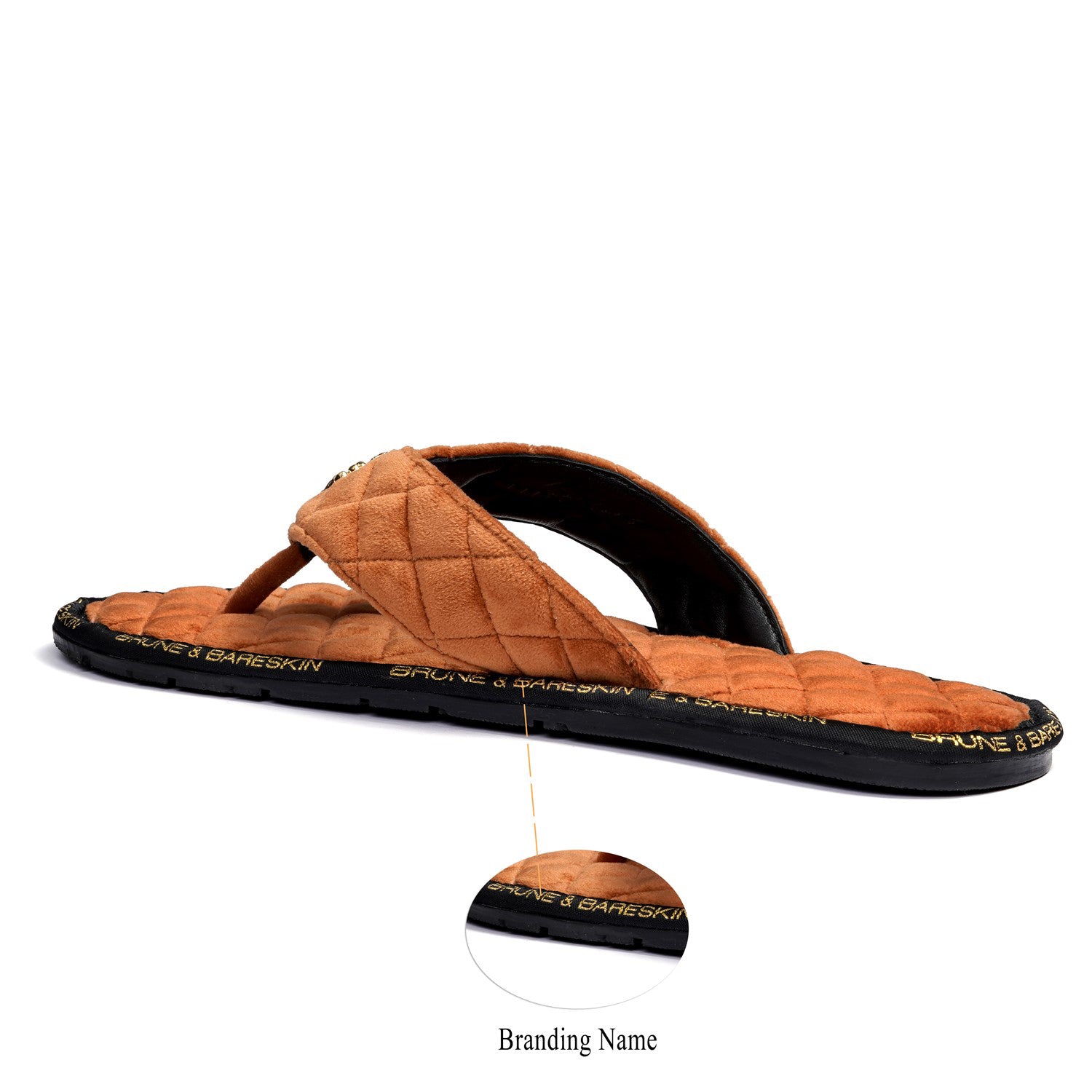 Discover the highest standards of luxury and style with Brune & Bareskin's V-Strap Slide-in Slipper. Handcrafted with premium and featuring a velvet, this men's Slide-in Slipper boasts iconic hand stitched v-strapped design. Experience comfort with extra-padded insoles and a rubberized flat sole for added durability.
