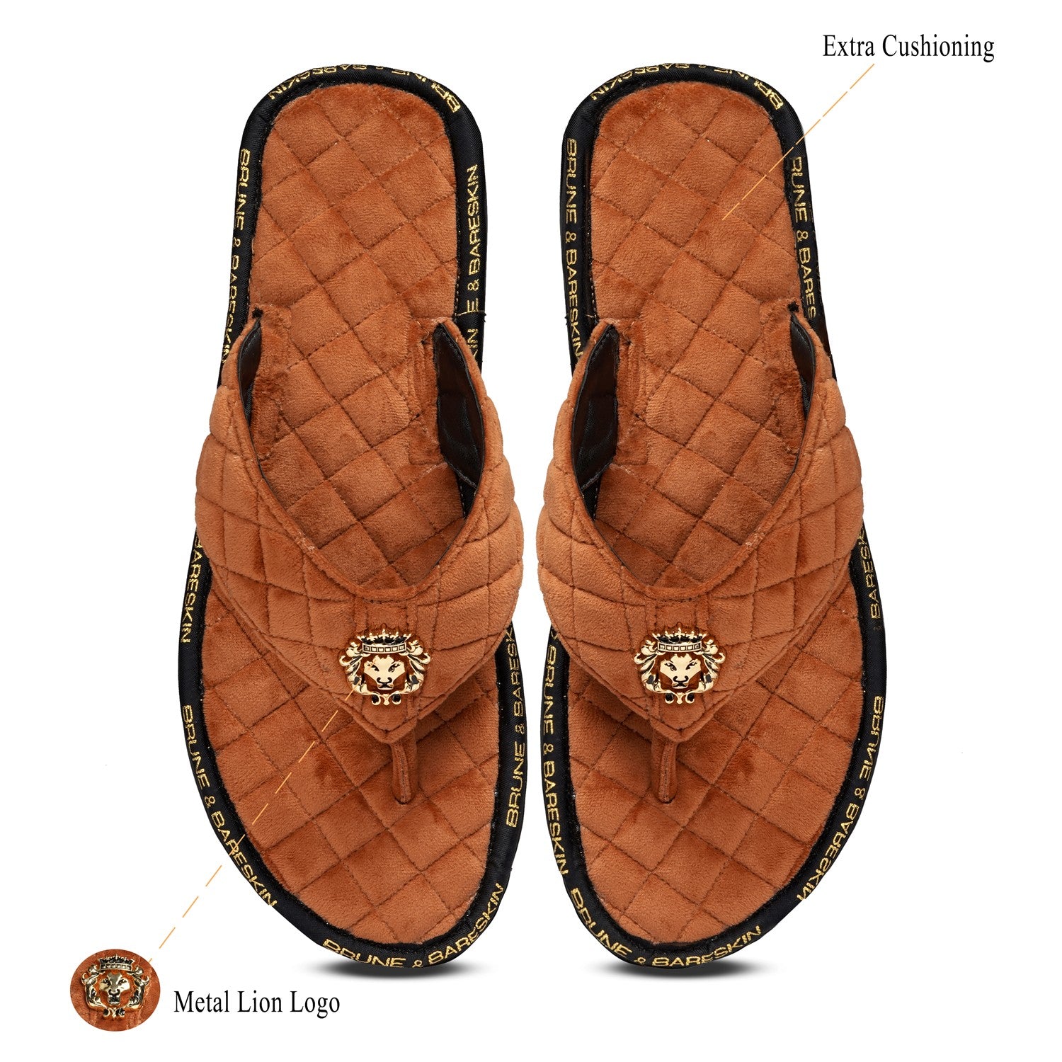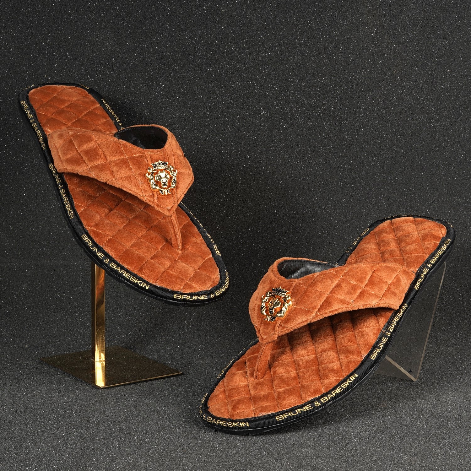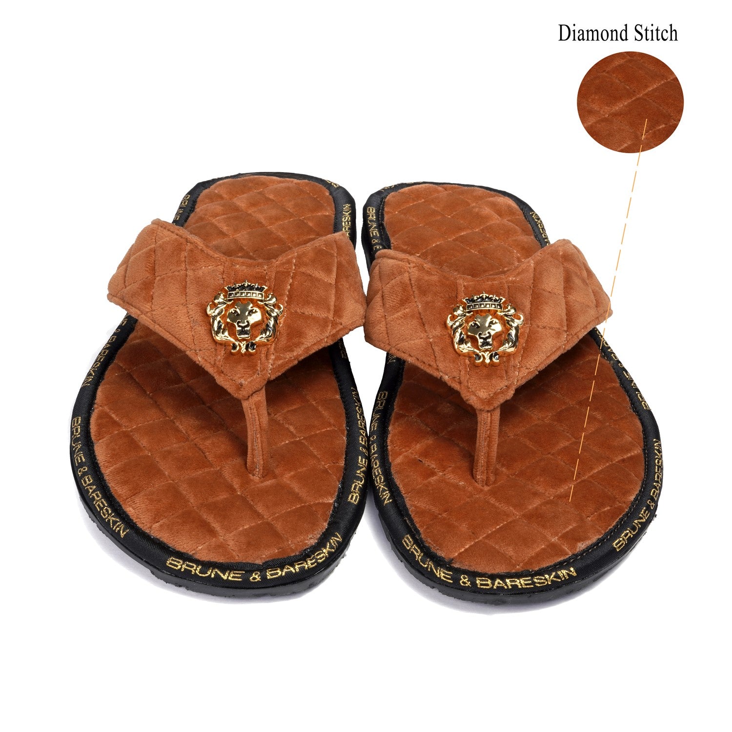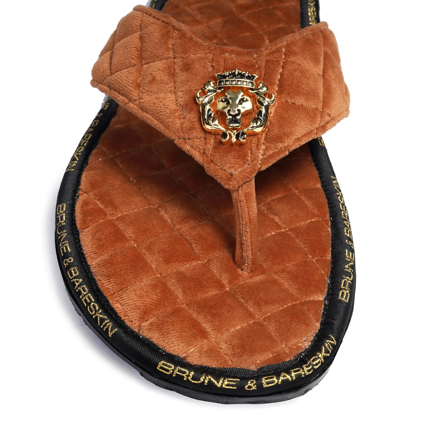 Discover the highest standards of luxury and style with Brune & Bareskin's V-Strap Slide-in Slipper. Handcrafted with premium and featuring a velvet, this men's Slide-in Slipper boasts iconic hand stitched v-strapped design. Experience comfort with extra-padded insoles and a rubberized flat sole for added durability.