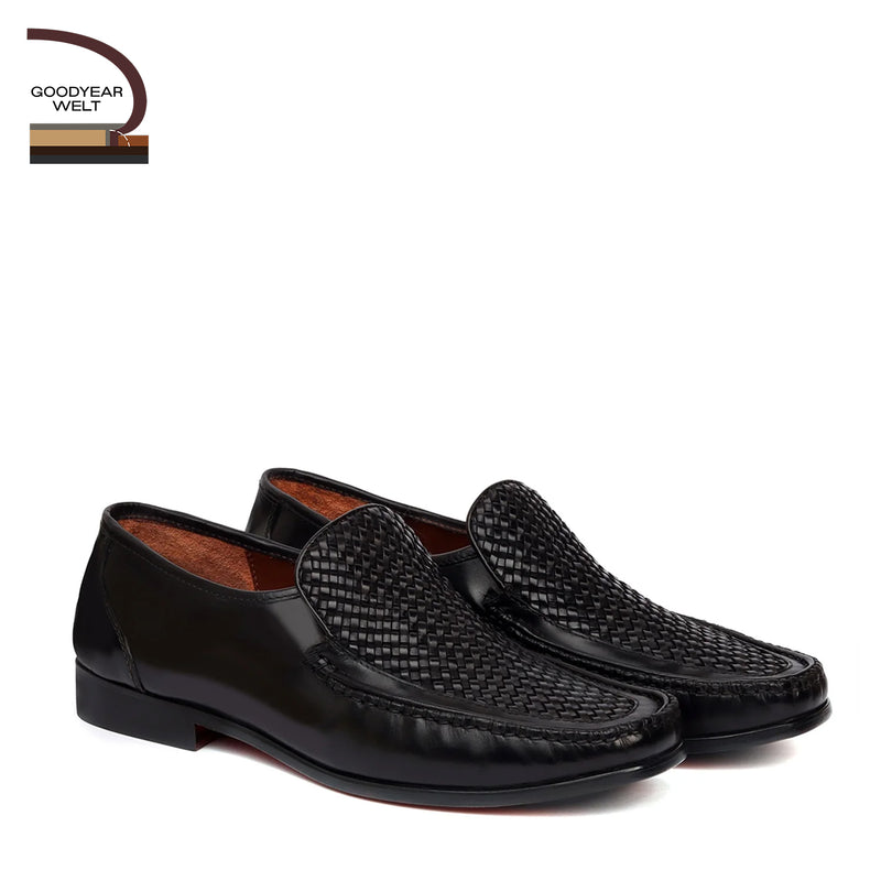 Tan Weaved Vamp Goodyear Welted Sole Leather Loafers