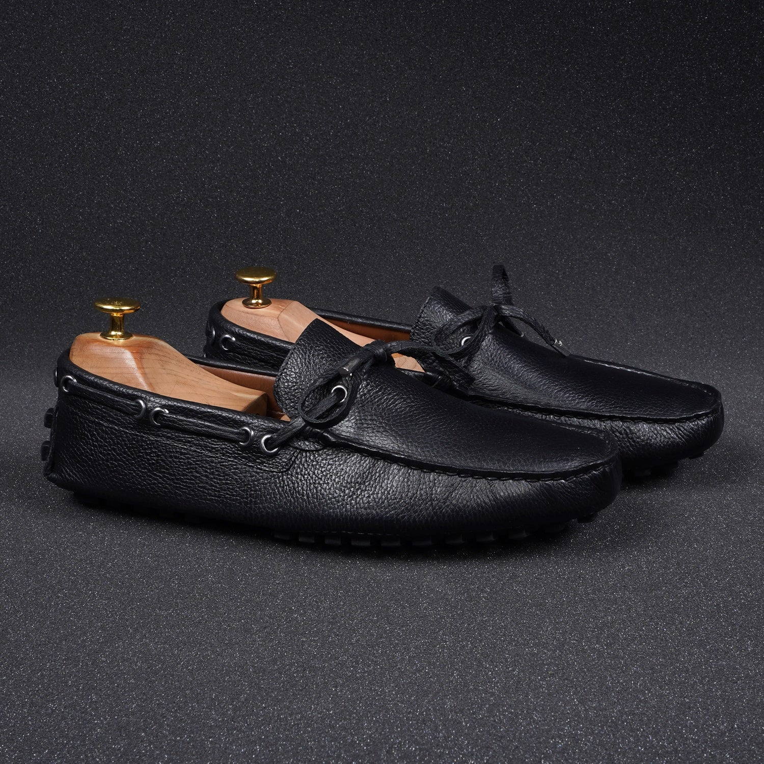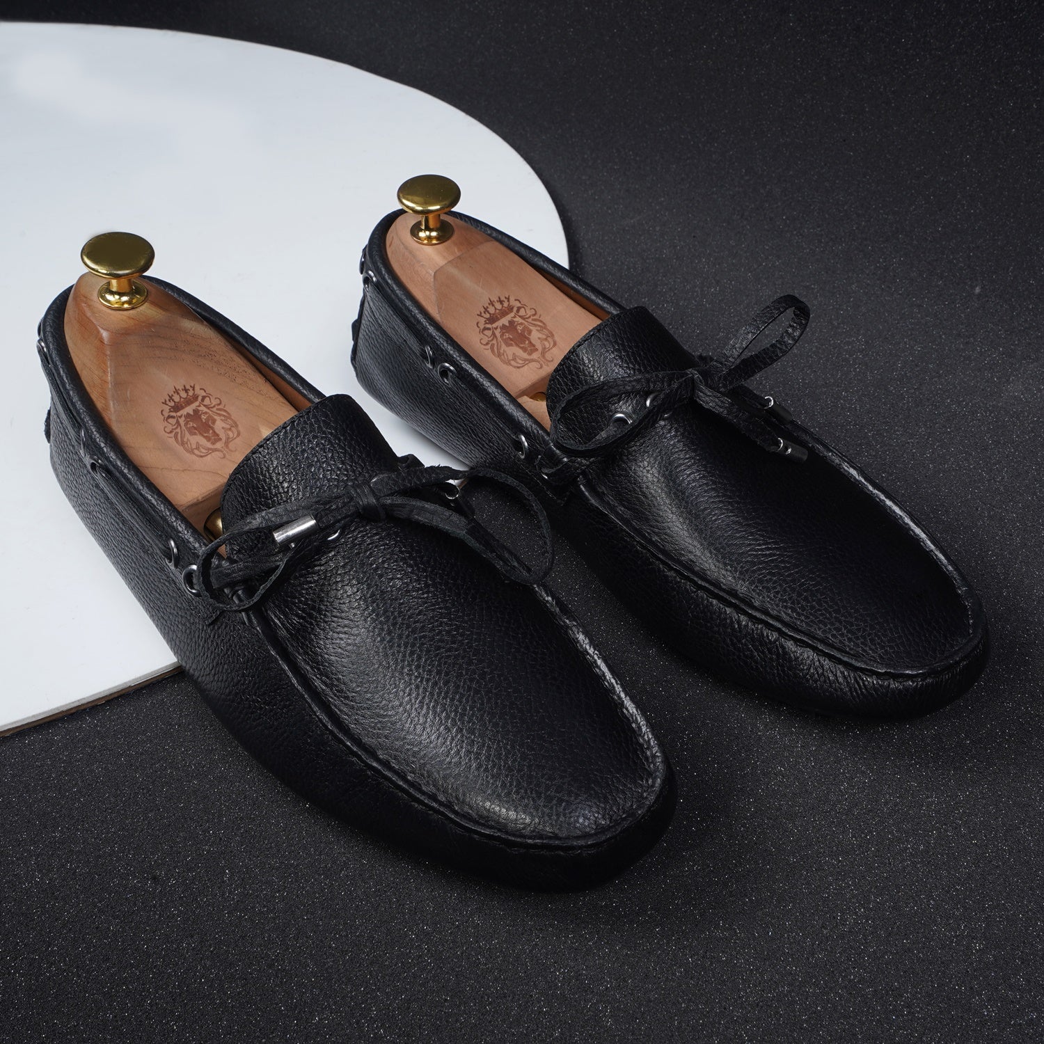 Looking for the perfect shoe for any occasion? Look no further than our handcrafted Tassel Bow nubs Driver Loafer. Made with high quality, durable textured leather, these moccasin loafers feature a stylish Tassel Bow on the vamp and fixed lace-up detailing. Perfect for the office or a night out, these black Driver Loafers offer a comfortable fit with a padded insole and flat sole. Elevate your style with Brune & Bareskin!