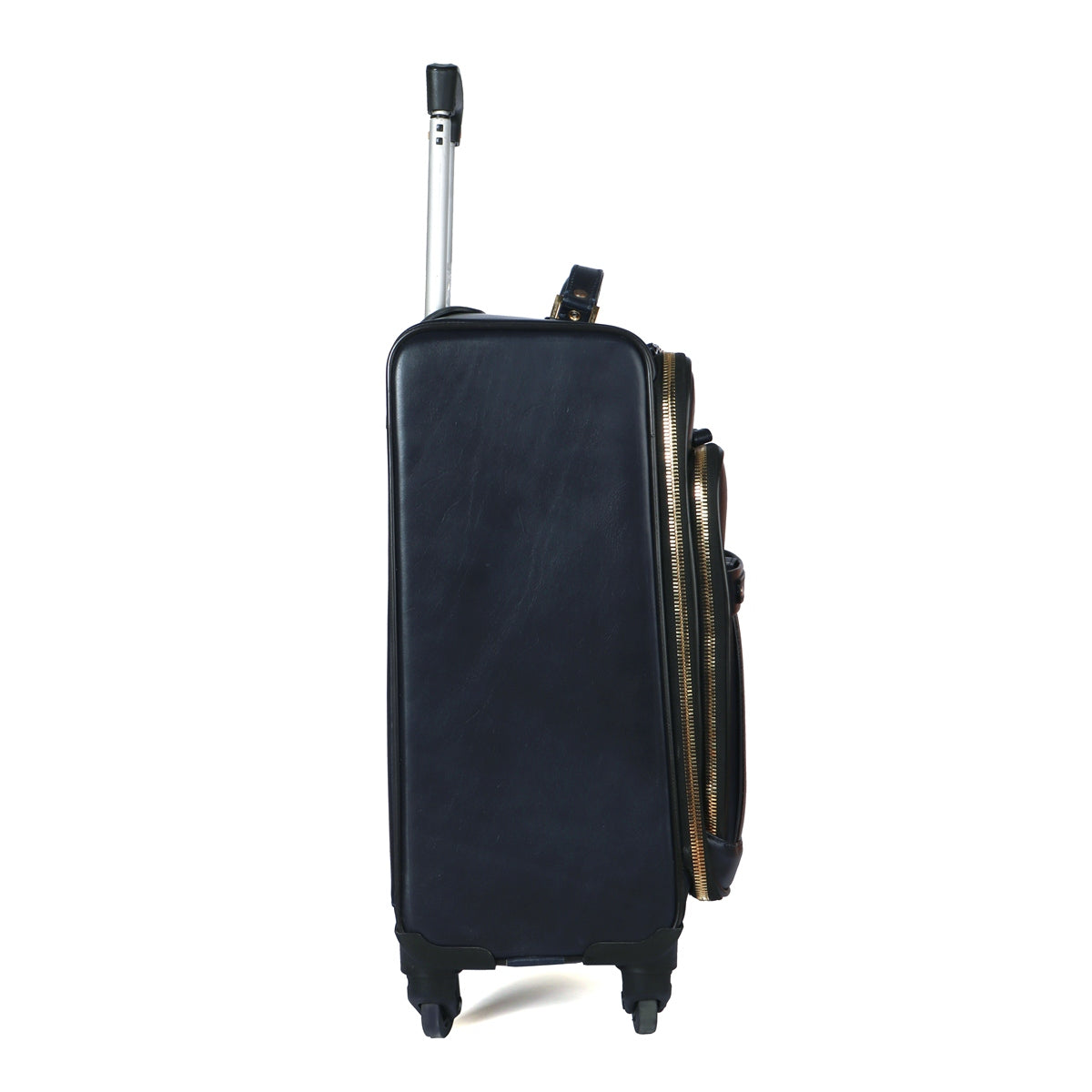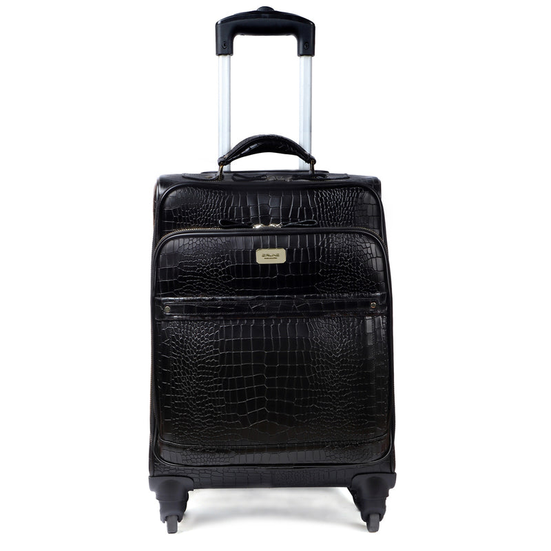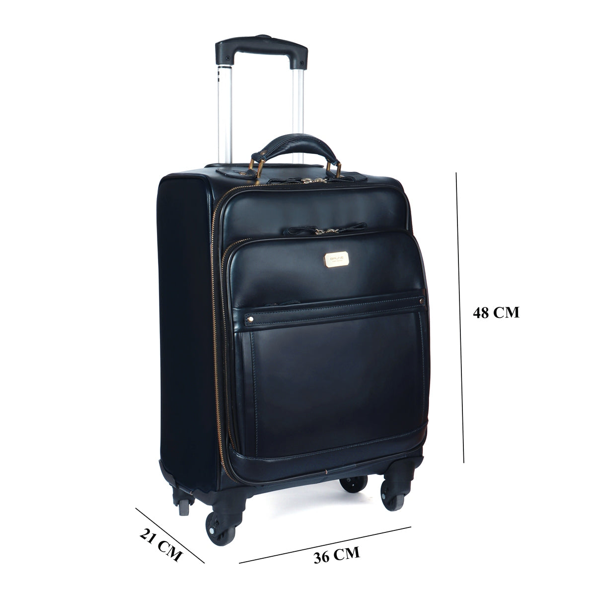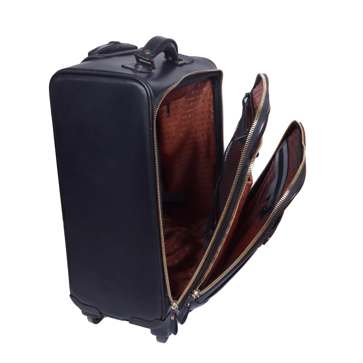 If you're asking about the strolley travel bag, it sounds like a travel bag designed with wheels and a telescopic handle for easy transportation. Brune & Bareskin bag is made of genuine leather, which can provide durability and a stylish appearance. This is handmade bag from the finest quality leather and luxuriously lined with Up to 15" laptop sleeve. The spacious interior which opens with a smooth zipper features pockets and compartments for laptop & iPad and pouches providing extra space for all your travel essentials, whilst the exterior boasts a handy pocket perfect for those last minute airport purchases. The foldaway telescopic handle is tucked away in a neat compartment and the integral quad wheels are discreetly placed at the bottom, which stands the case in all its glory. You can customize this further in your favorite color and also add the name initials.