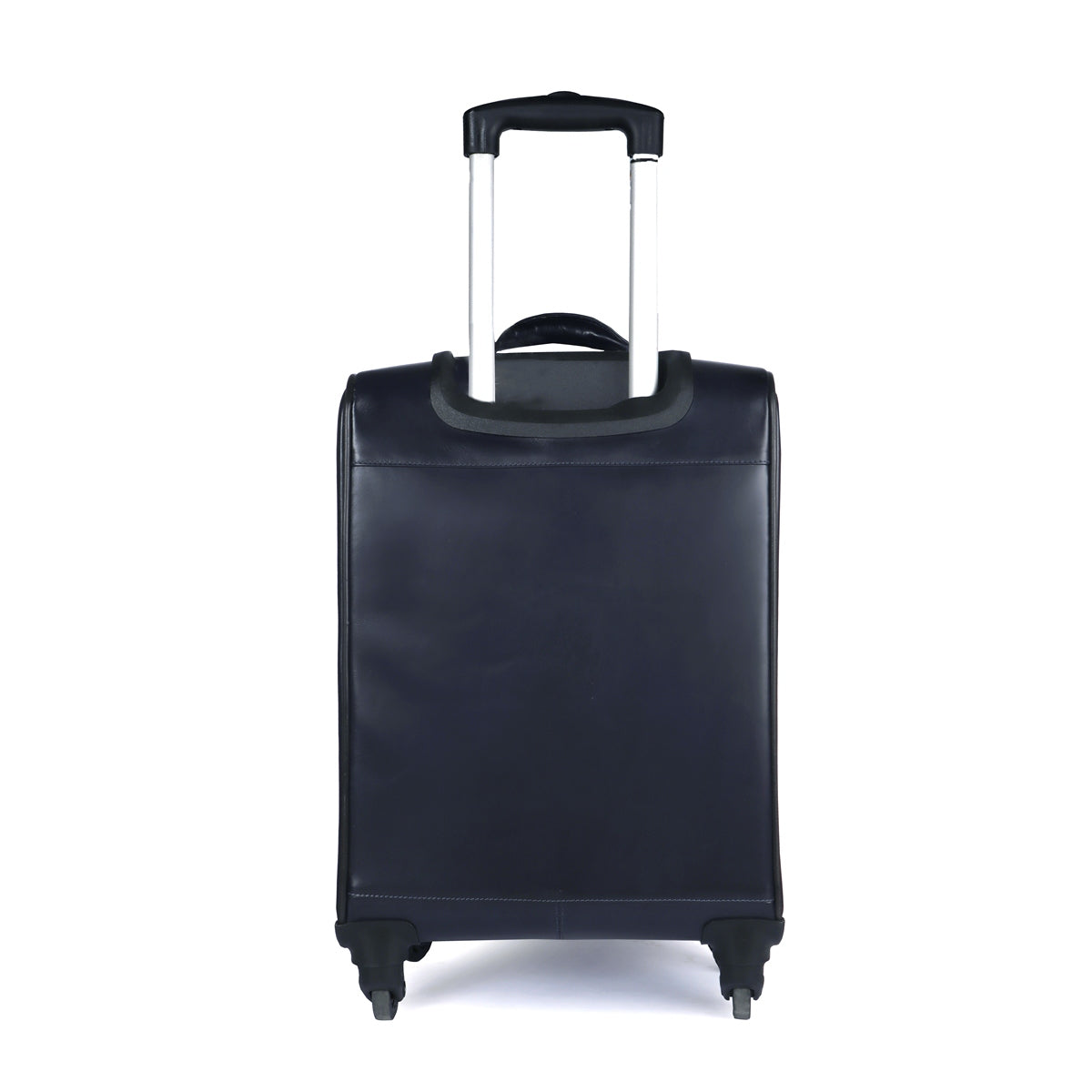 Telescopic Handle Spinner Luggage Quad Wheel Navy Blue Strolley Travel Bag with Golden Zipper Closure
