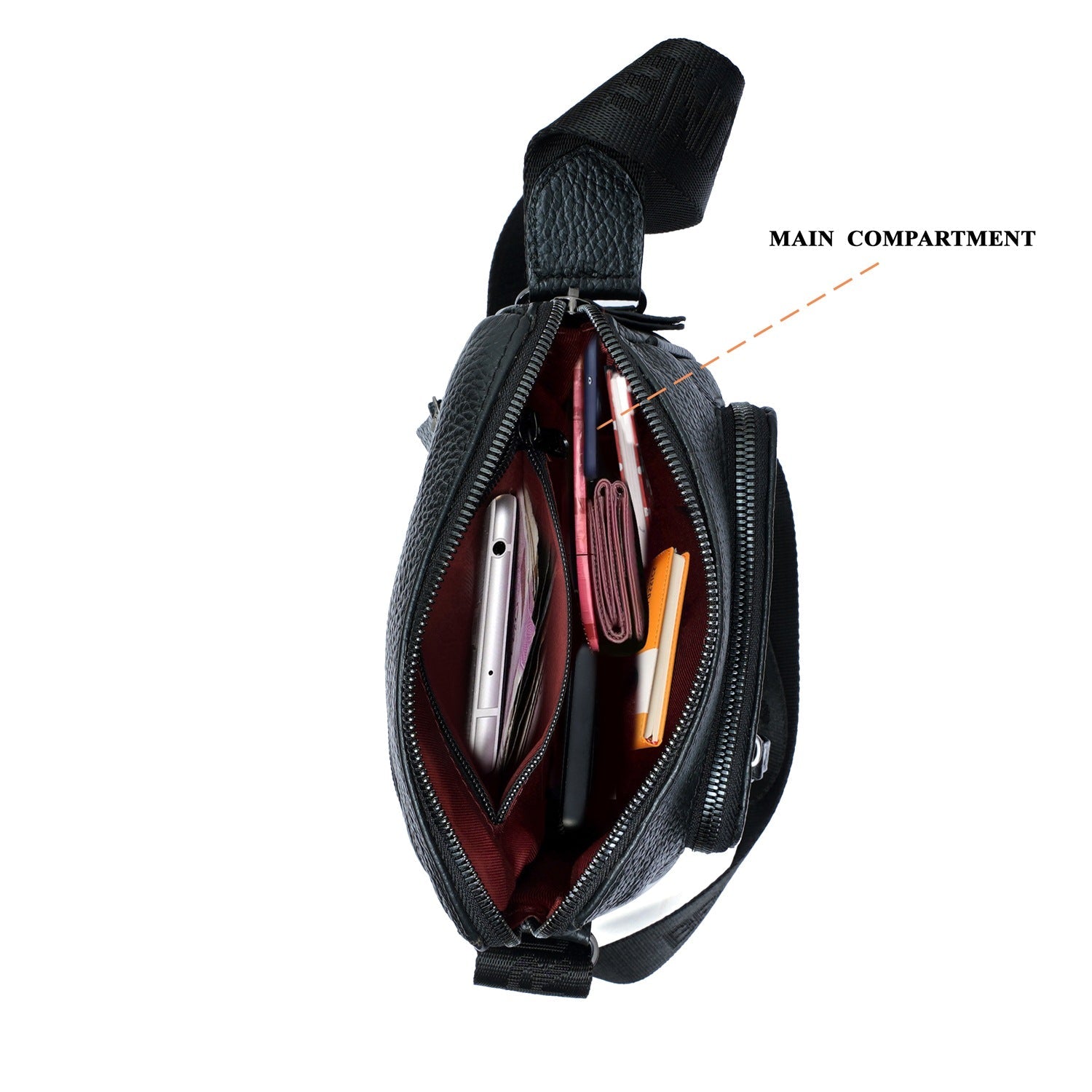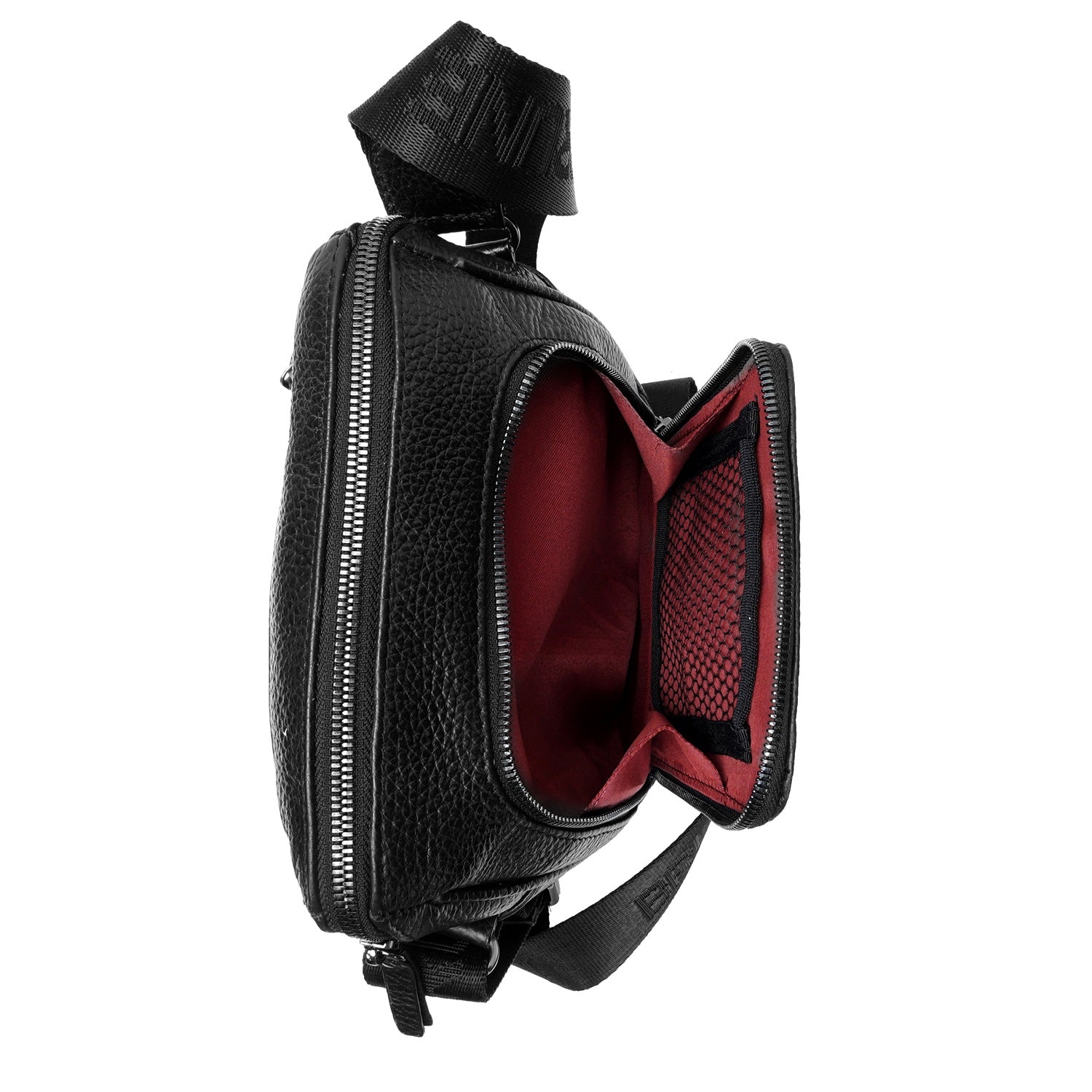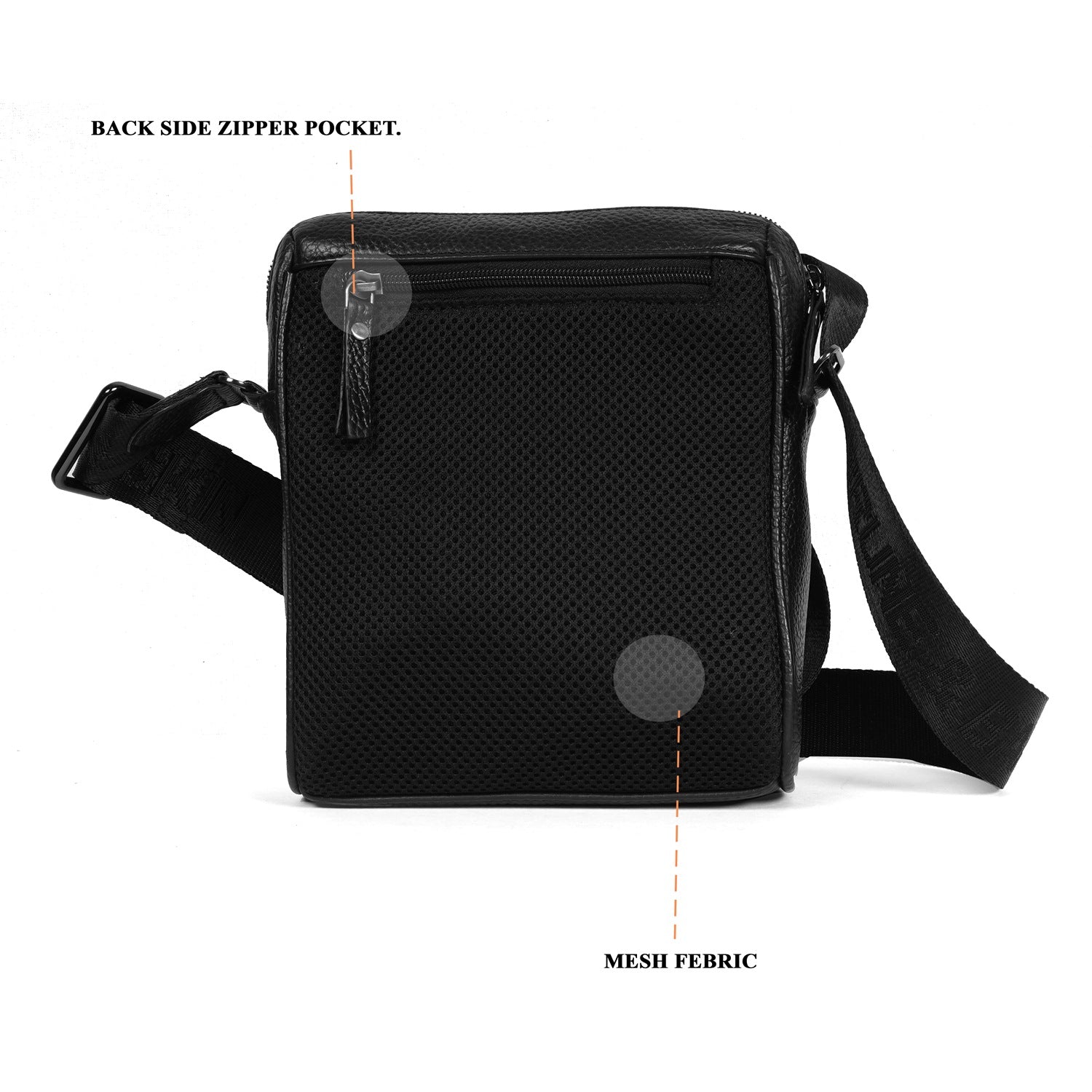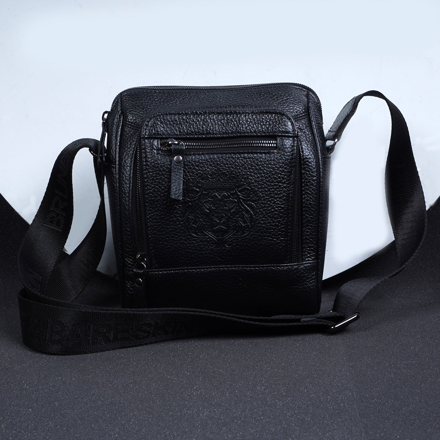 Get ready to turn heads with the Textured Leather Black Crossbody Bag by Brune & Bareskin. Made with premium quality textured leather, this unisex city bag is perfect for traveling. The top zipper compartment, zip pockets, and backside mesh pocket provide ample space for your essentials, while the adjustable shoulder strap with the brand's monogram adds a touch of style. Carry everything you need, from your phone to your air-pods, keys, charger, cash, and more in this classy and sleek crossbody bag.