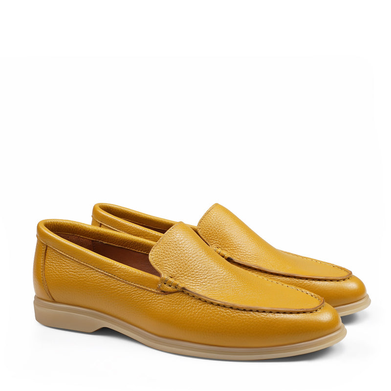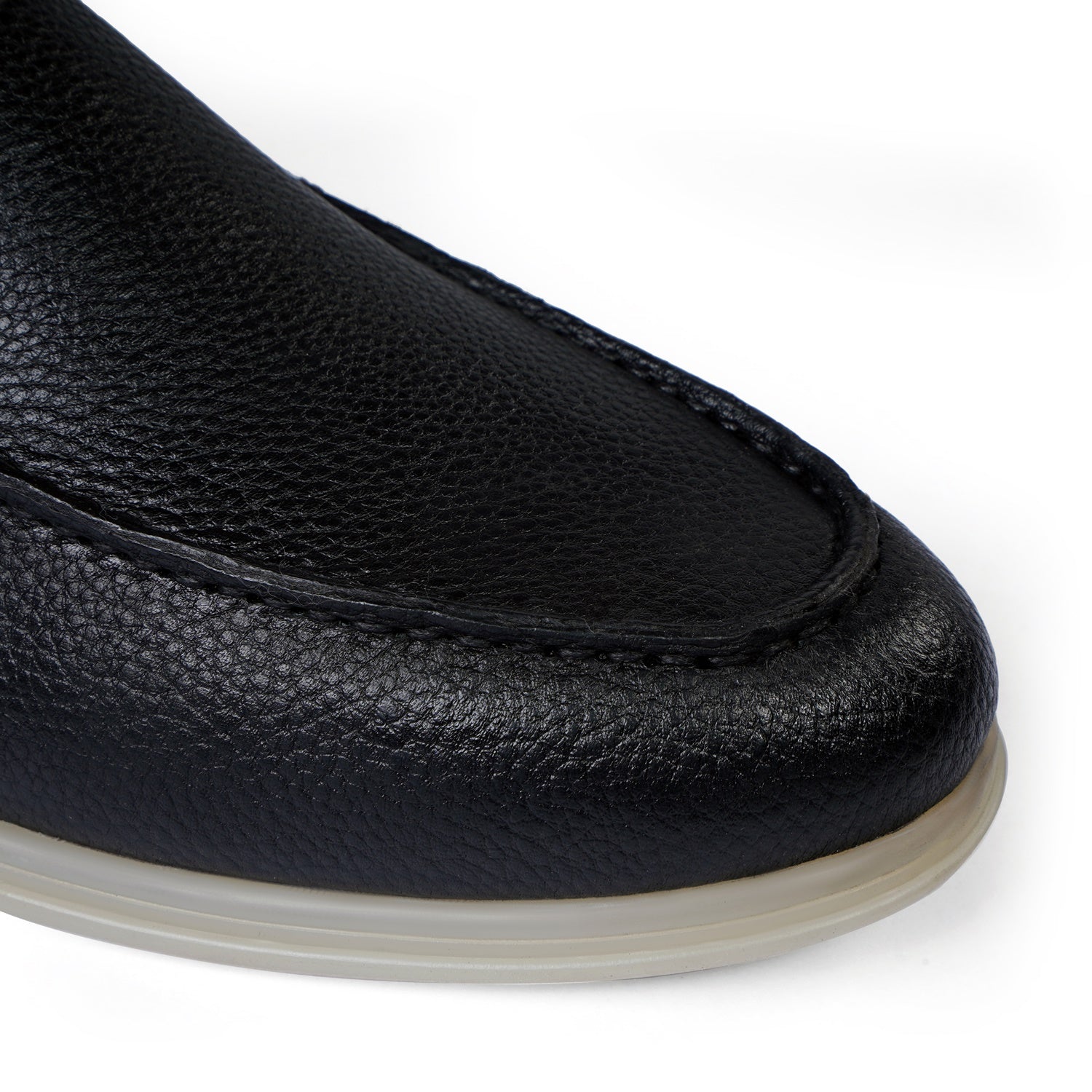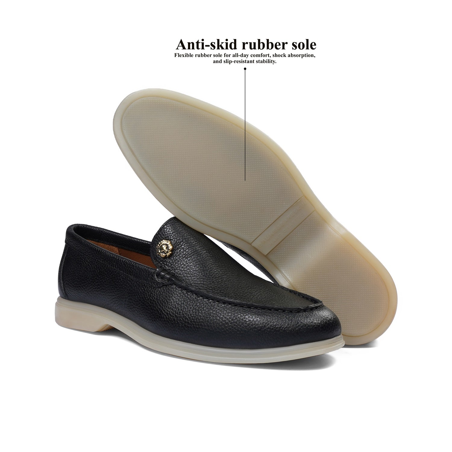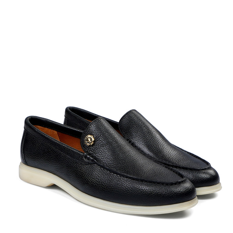 Introducing the perfect summer shoe, the Textured Leather Yacht Slip-On Shoes in Black Color by Brune & Bareskin. Exquisitely hand crafted with premium quality textured leather, these men's loafers provide maximum comfort with their well-designed construction. The rubber sole offers better grip, making them the perfect choice for summer walks. Team them up with Capri's, jeans or any casual outfit for a stylish and comfortable look.