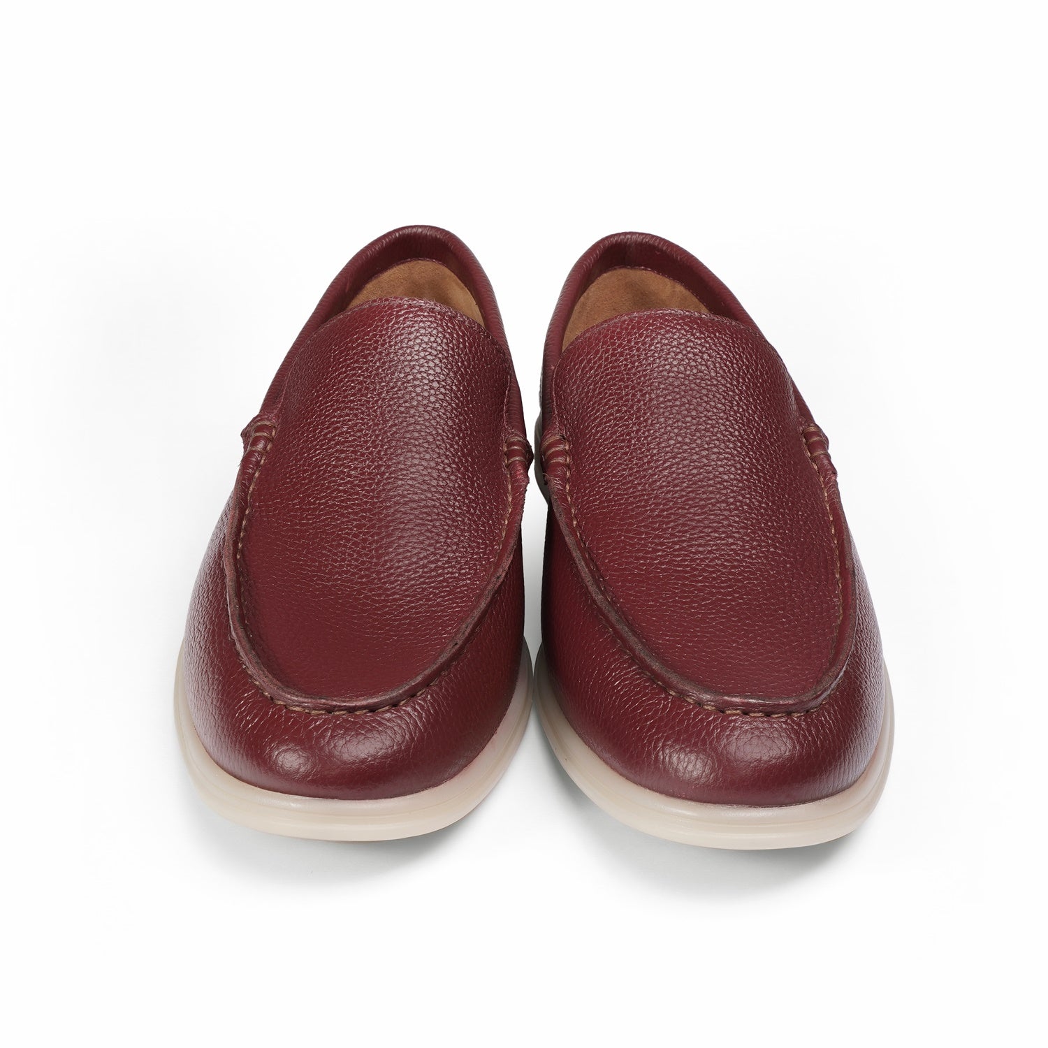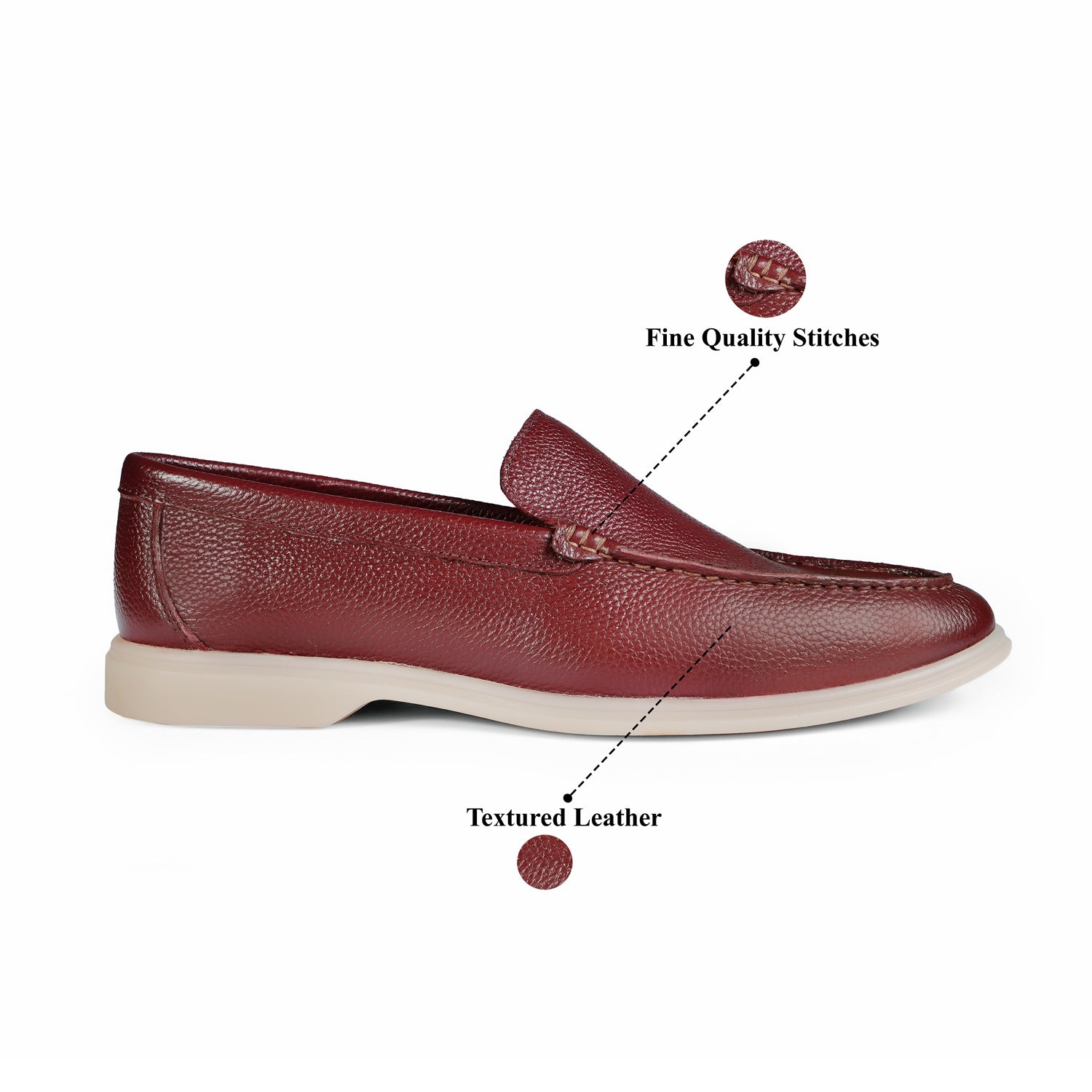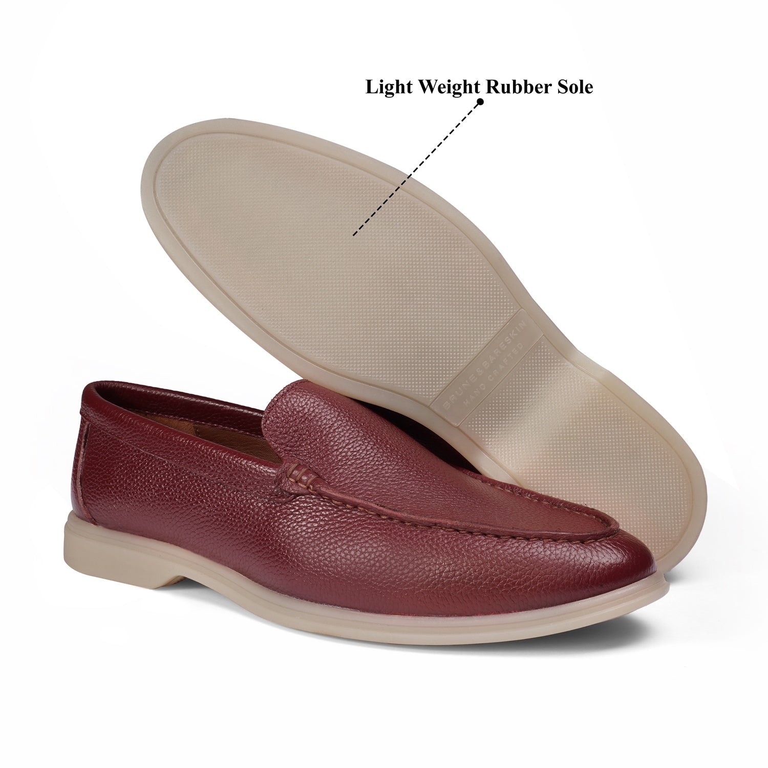Introducing the perfect summer shoe, the Textured Leather Yacht Slip-On Shoes in Wine Color by Brune & Bareskin. Exquisitely hand crafted with premium quality textured leather, these men's loafers provide maximum comfort with their well-designed construction. The rubber sole offers better grip, making them the perfect choice for summer walks. Team them up with Capri's, jeans or any casual outfit for a stylish and comfortable look.