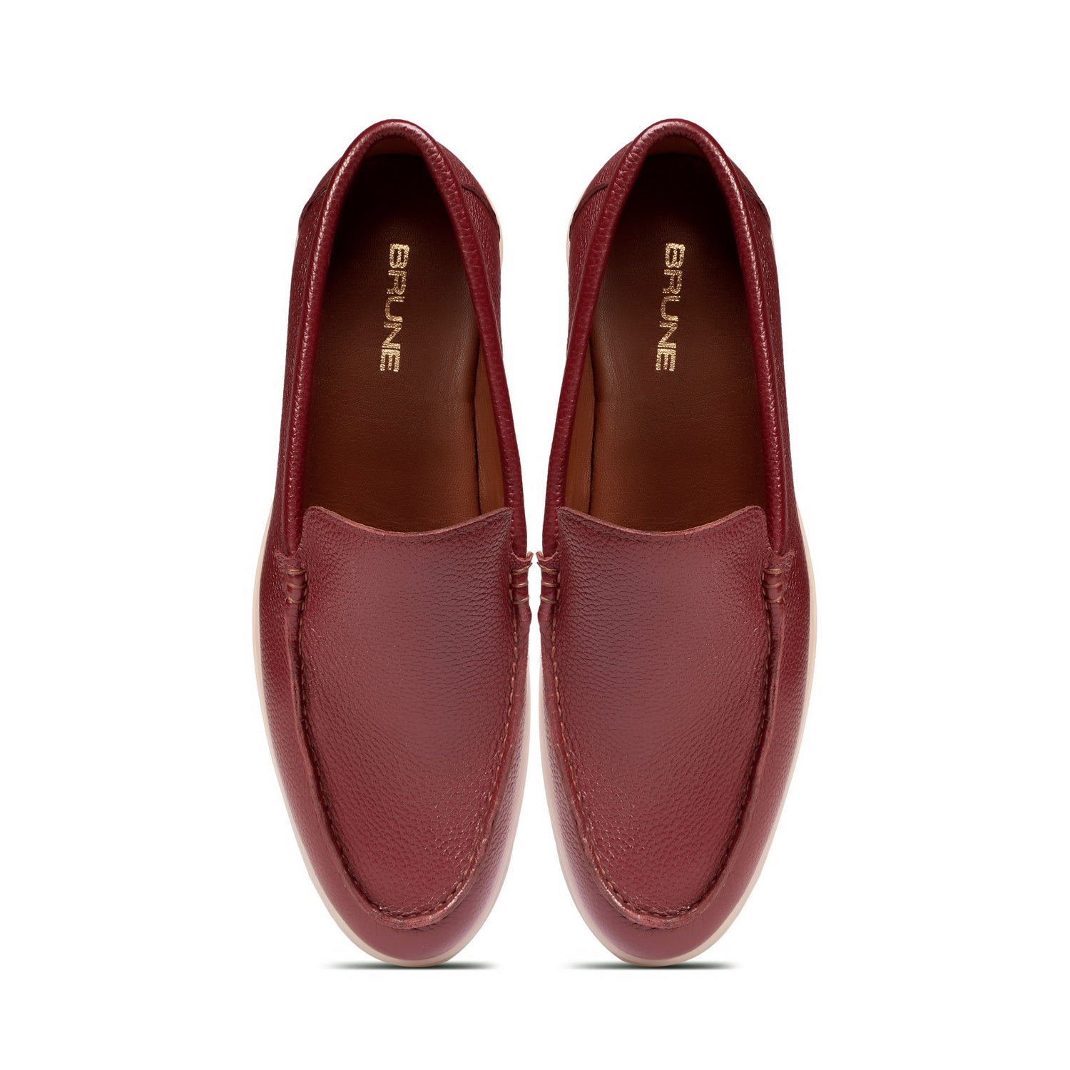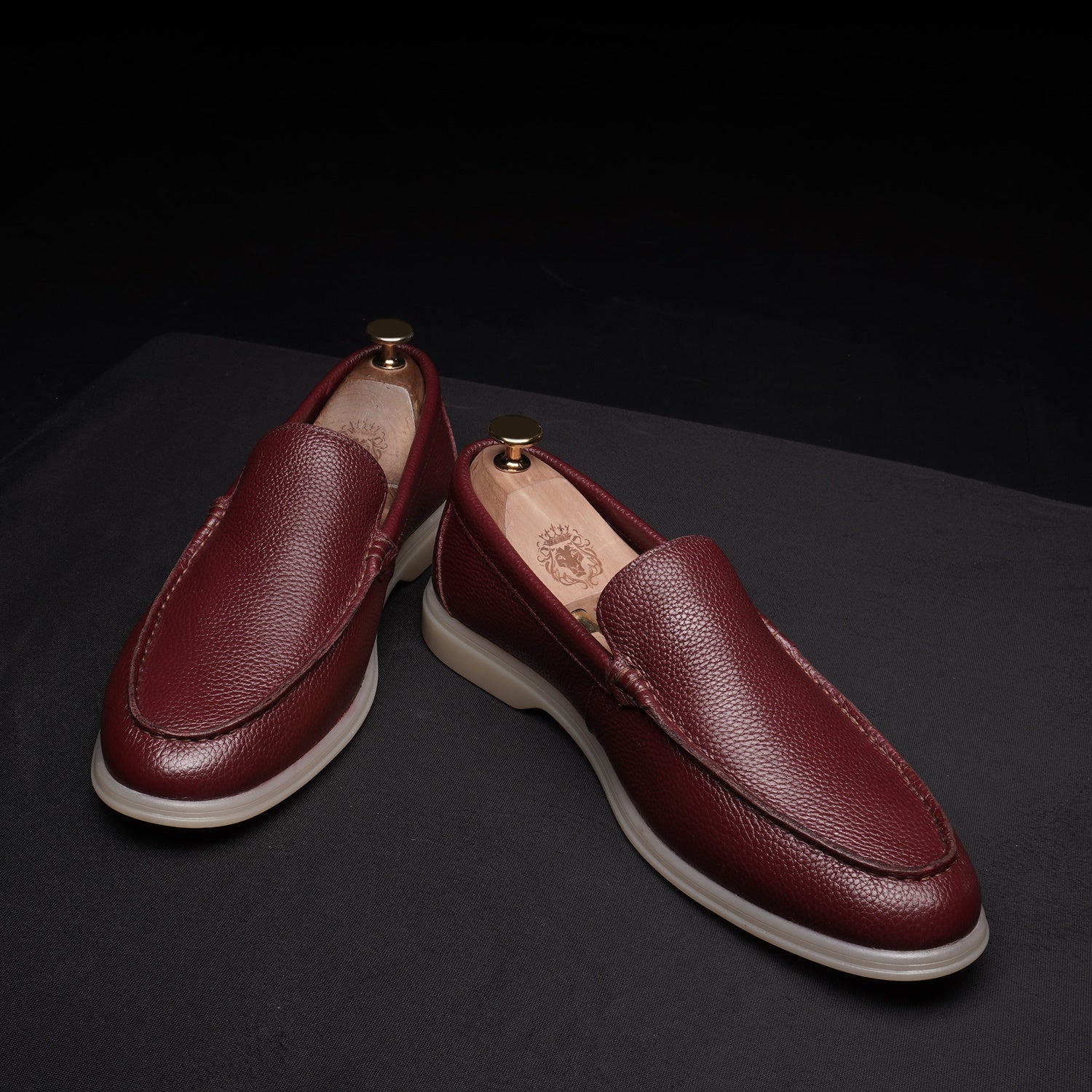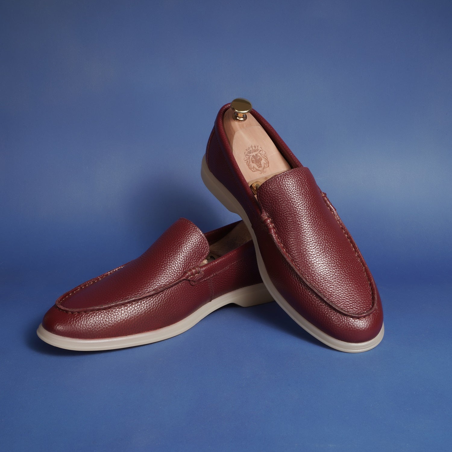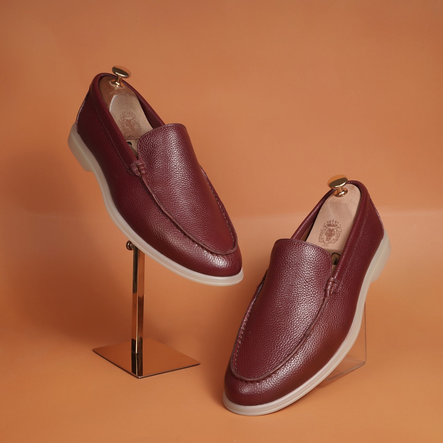 Introducing the perfect summer shoe, the Textured Leather Yacht Slip-On Shoes in Wine Color by Brune & Bareskin. Exquisitely hand crafted with premium quality textured leather, these men's loafers provide maximum comfort with their well-designed construction. The rubber sole offers better grip, making them the perfect choice for summer walks. Team them up with Capri's, jeans or any casual outfit for a stylish and comfortable look.