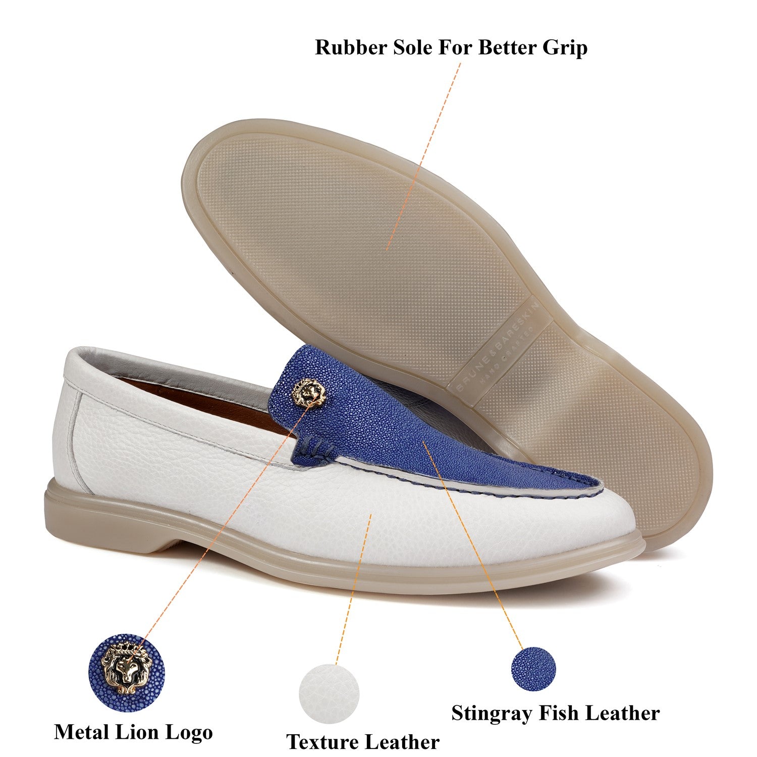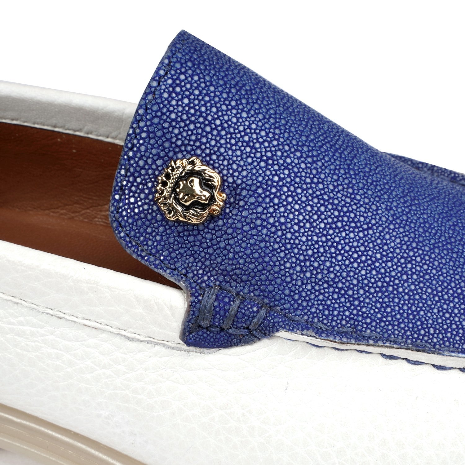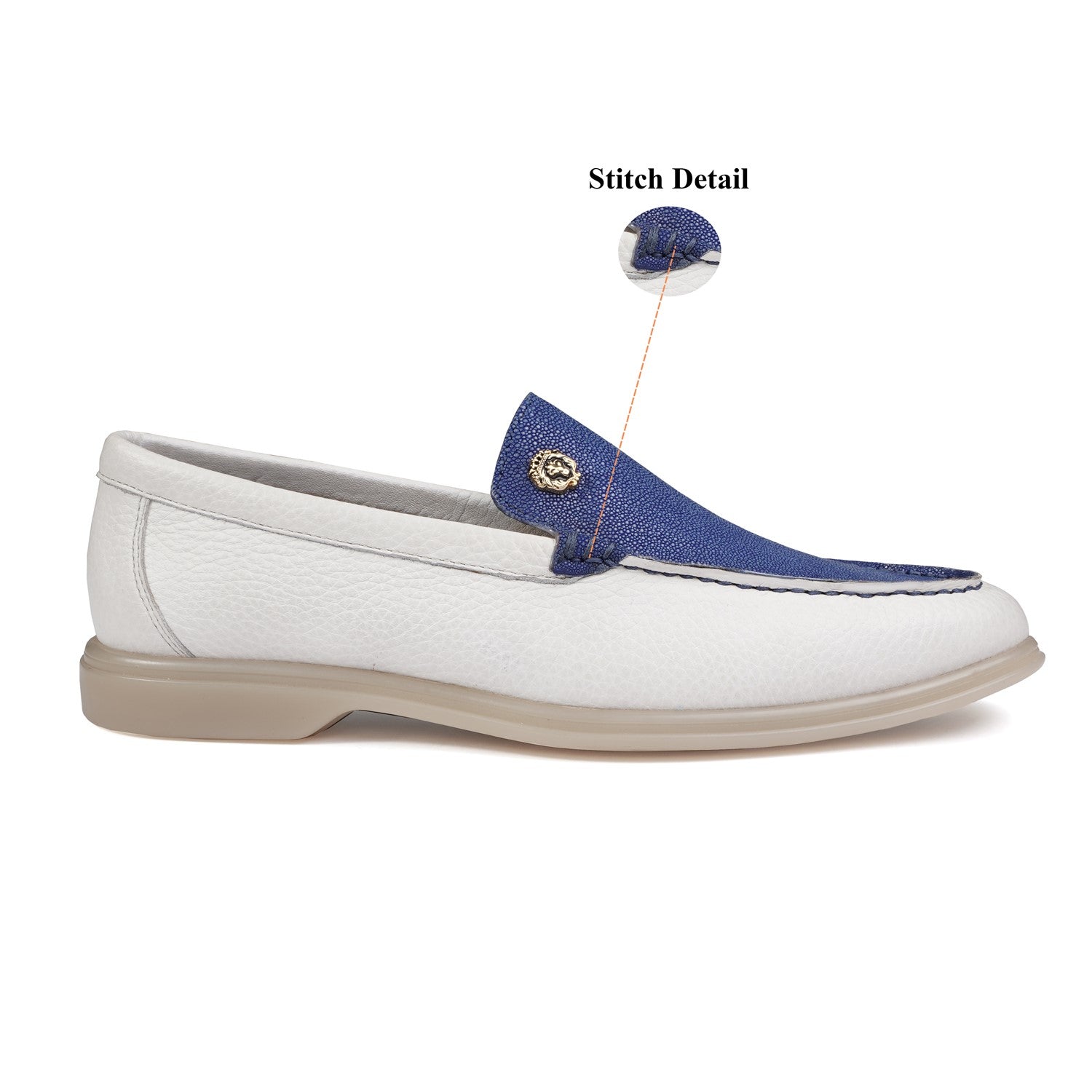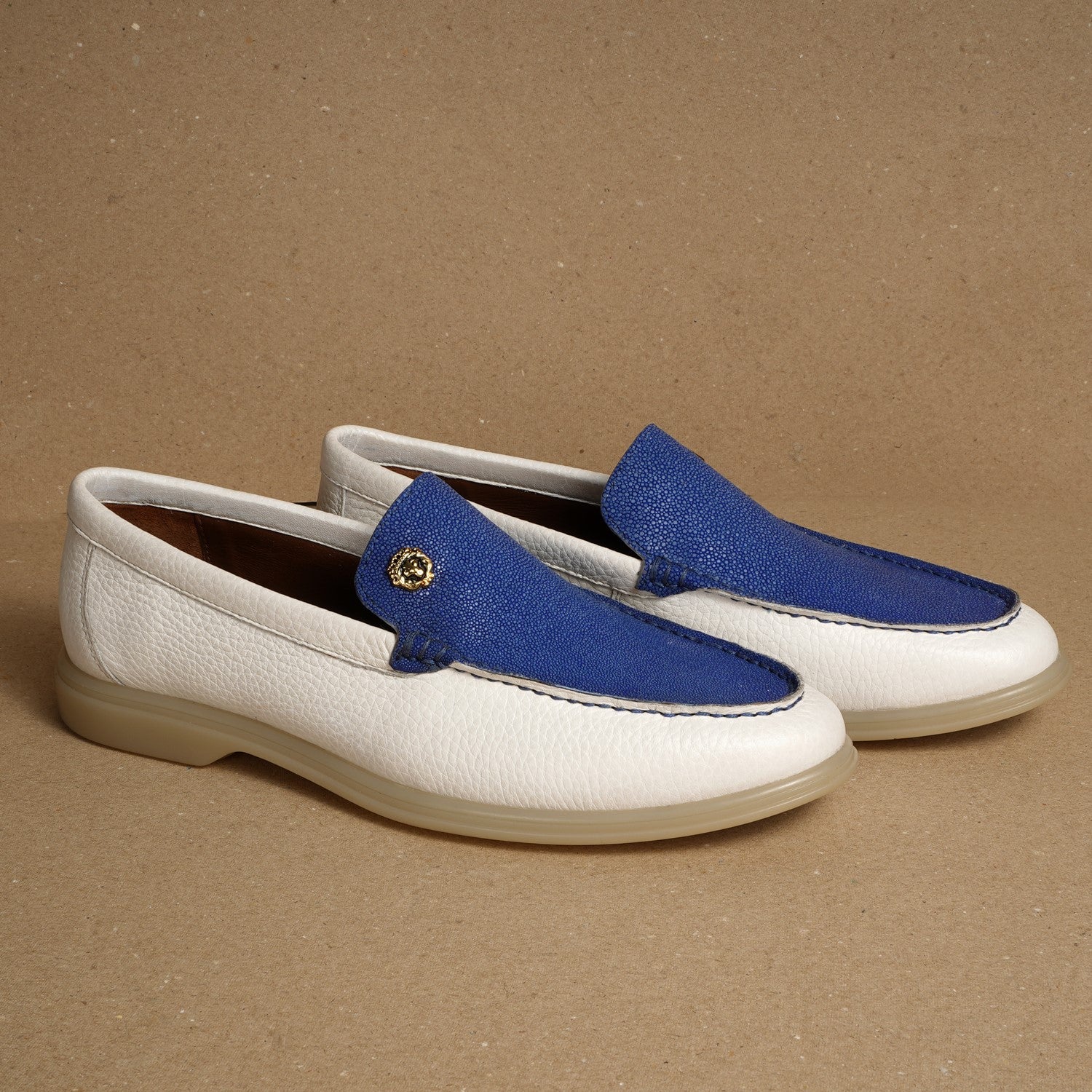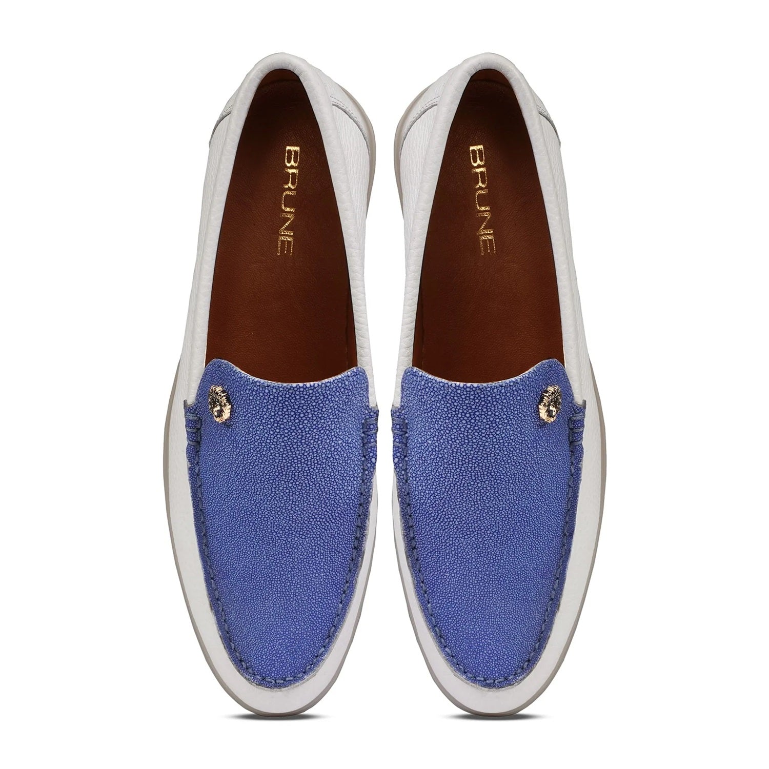 Ray Blend Blue Stingray Leather in Textured White Yacht Loafers