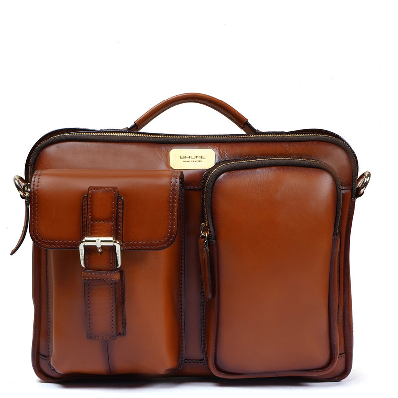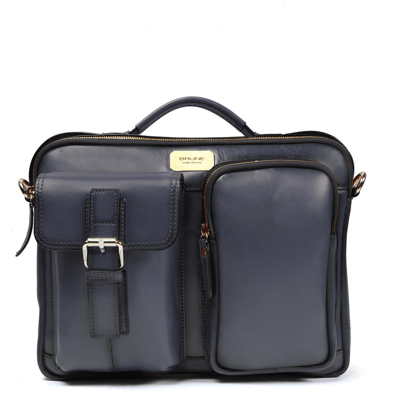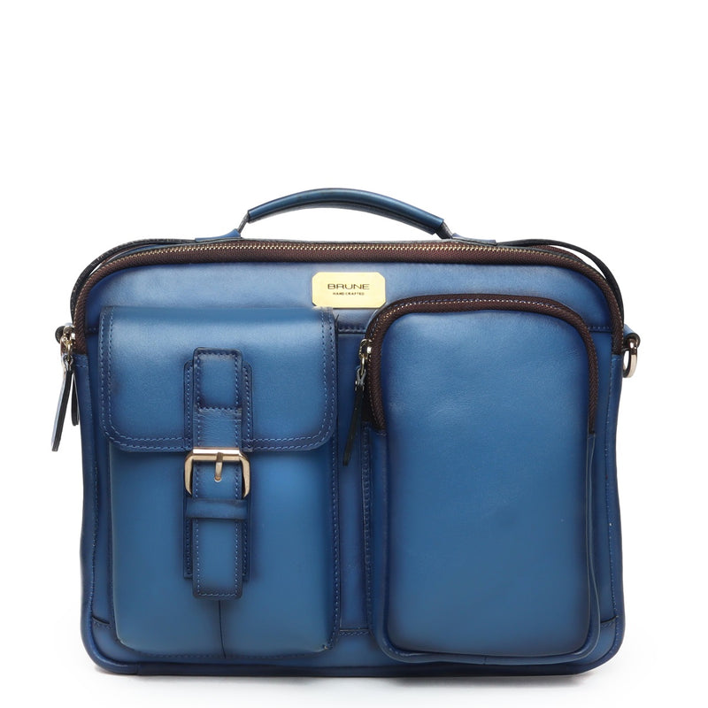 The blue leather office briefcase provides the perfect gentleman look. It has a dedicated laptop sleeve inside with the ultra soft lining. Due to an extra compartment It provides ample space and multiple small pockets in main compartment. The adjustable shoulder strap connects and removes easily with the hidden hardware loops.