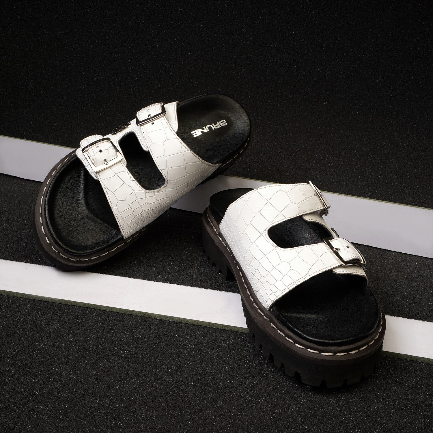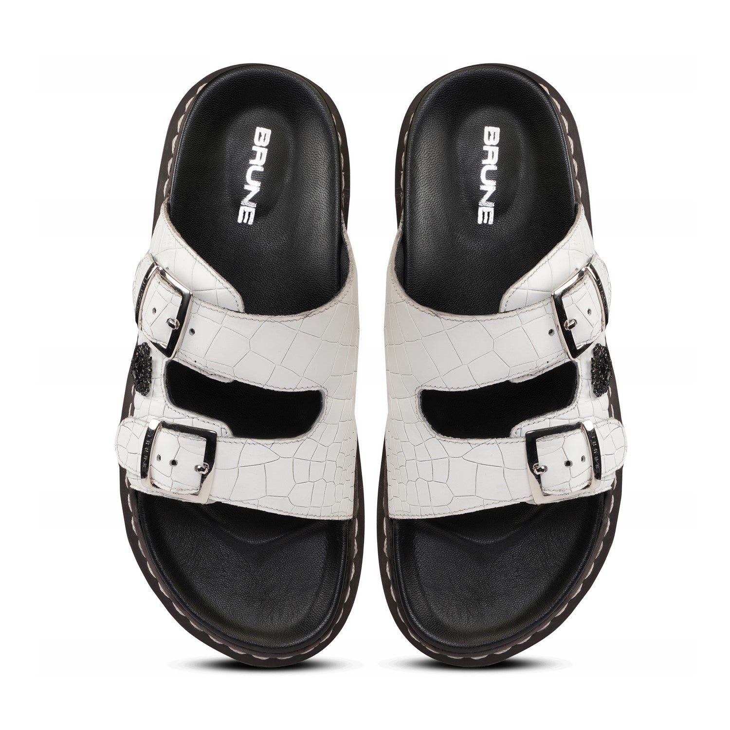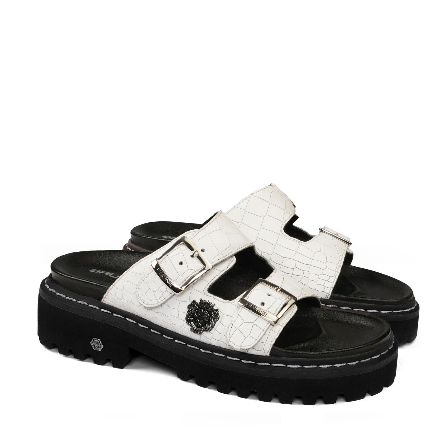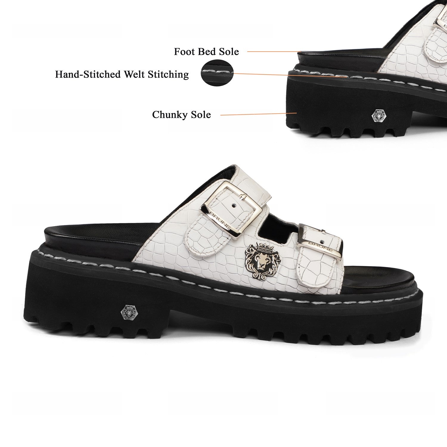 When it comes to slippers, comfort is the highest priority—and these Cut Croco leather slippers and sandals from Brune & Bareskin are a luxurious statement of style. Crafted from premium leather, they’re a must-have this season. The deep-cut Croco design with an adjustable buckle strap blends freedom with a laid-back, sophisticated vibe. The adjustable strap ensures a perfect fit for every foot, offering extra room where needed. Pair them effortlessly with jeans, shorts, capris, or other casual wear to stay ahead in style. Plus, with our bespoke services, you can customize these slippers in any color of your choice.