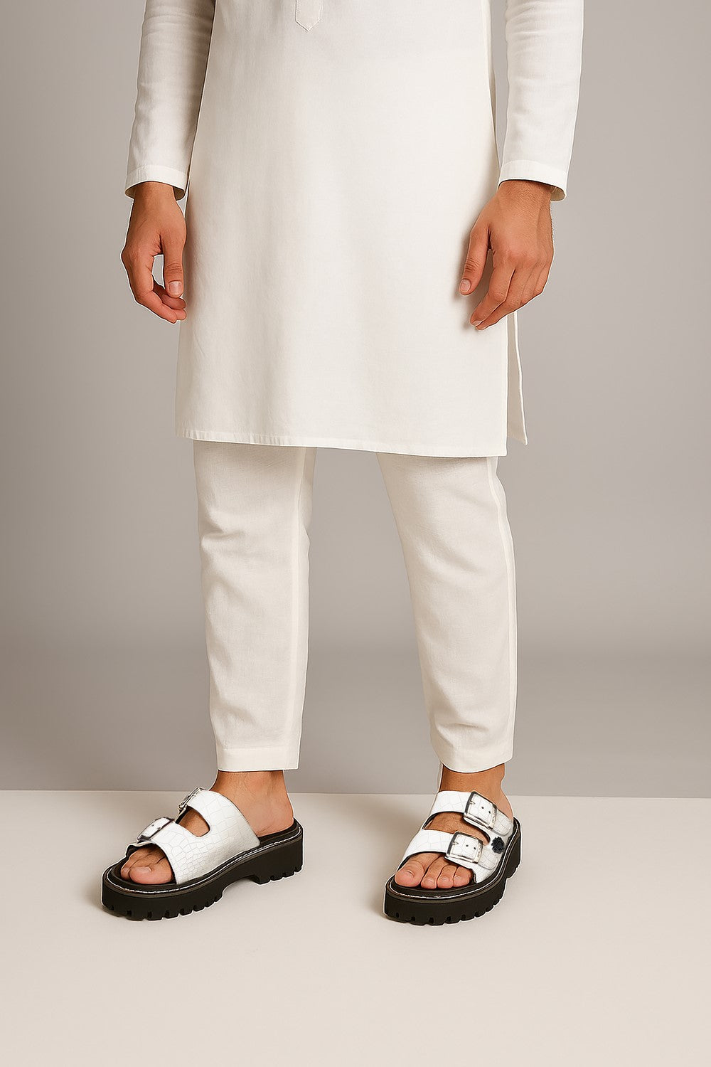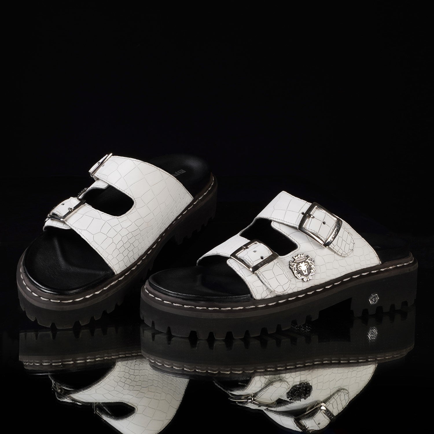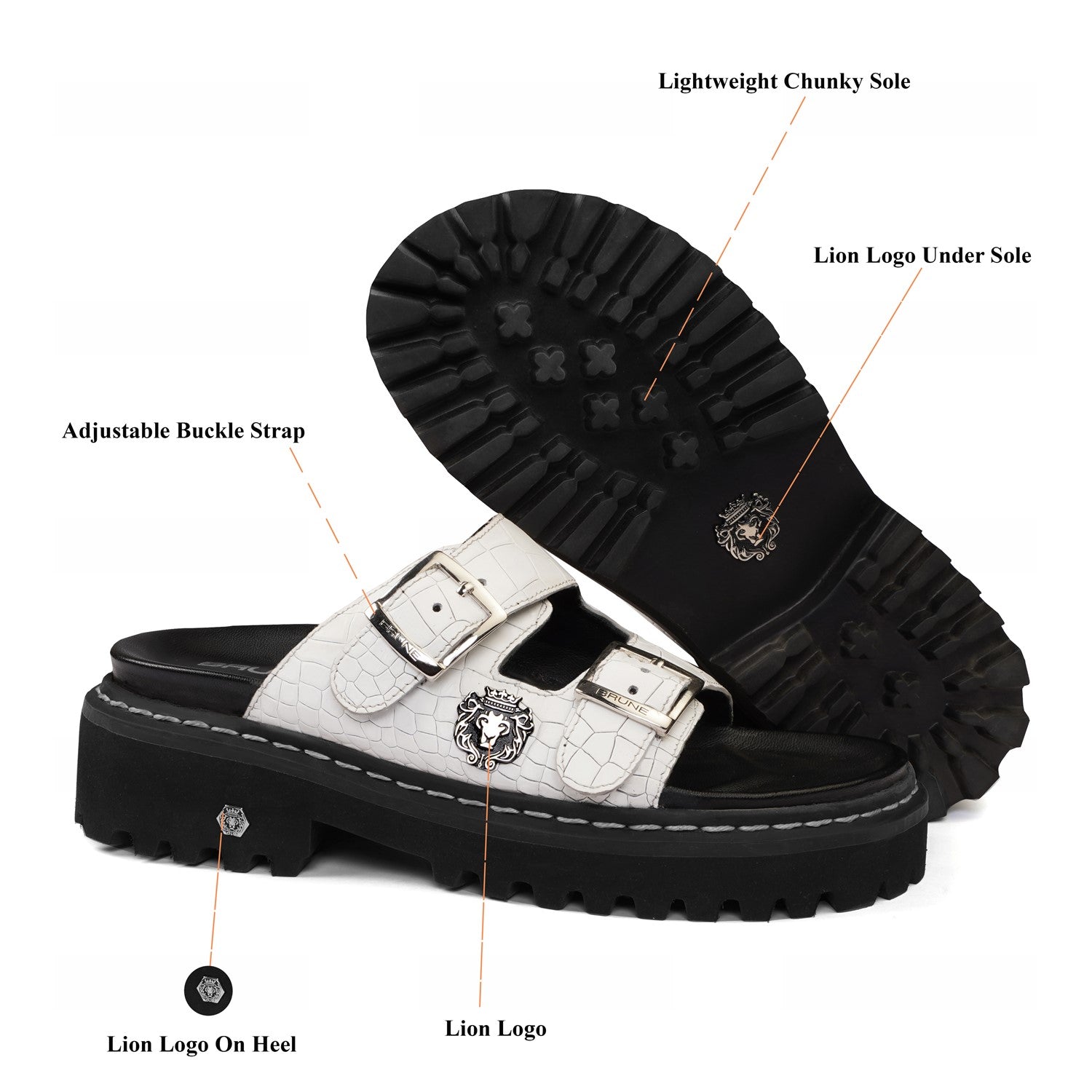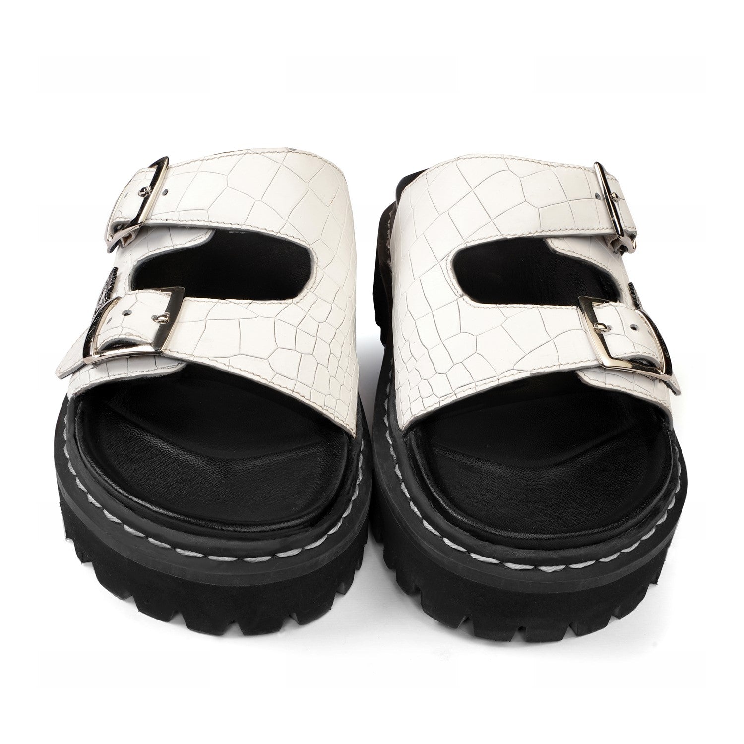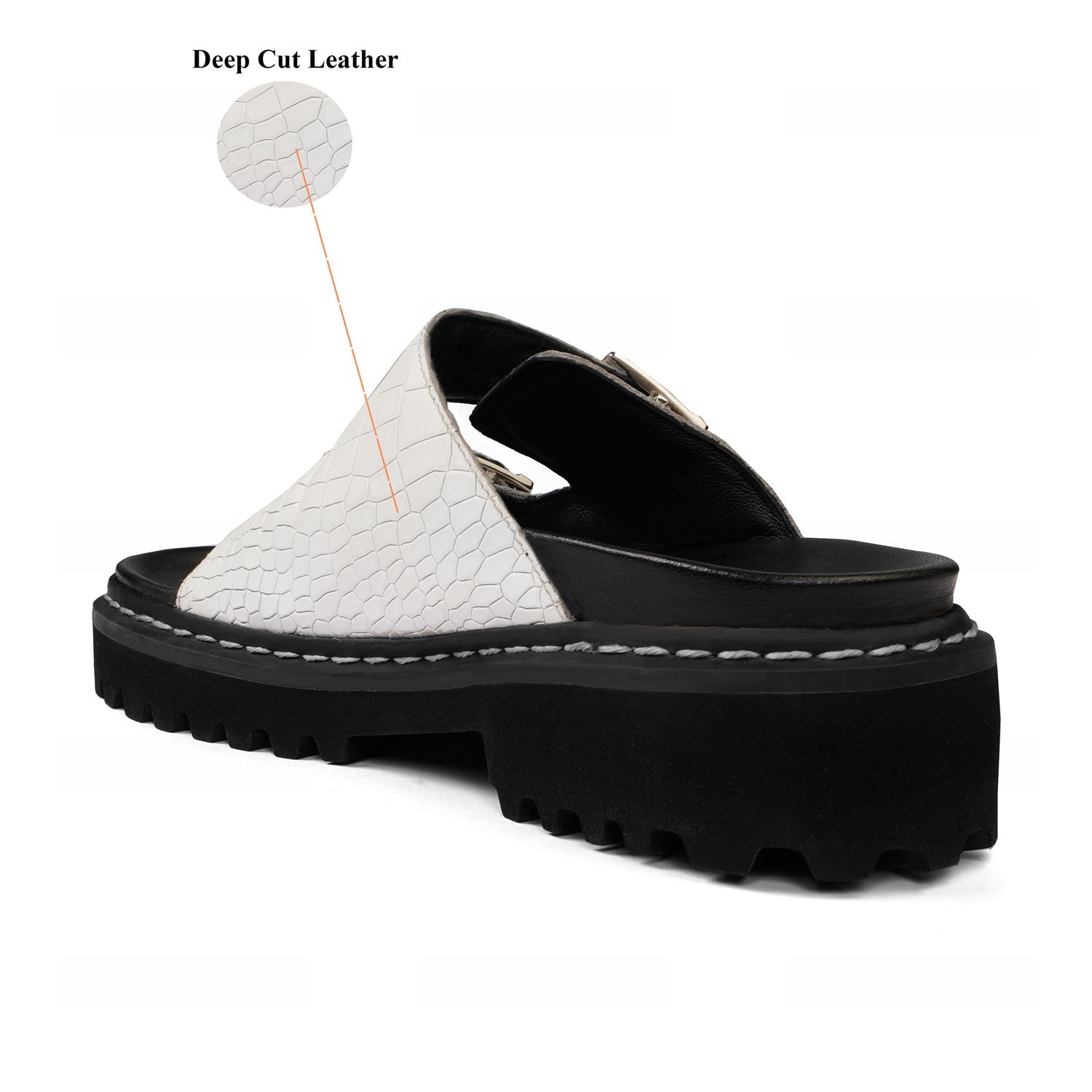 Thick Thread White Chunky Sole Adjustable Buckle Slide-in Slipper