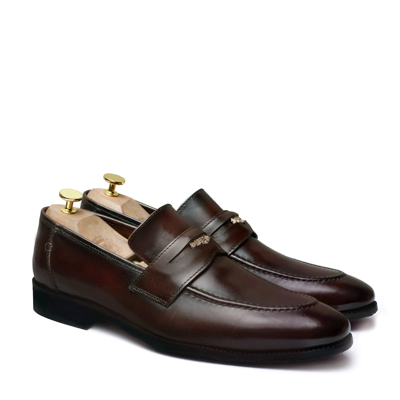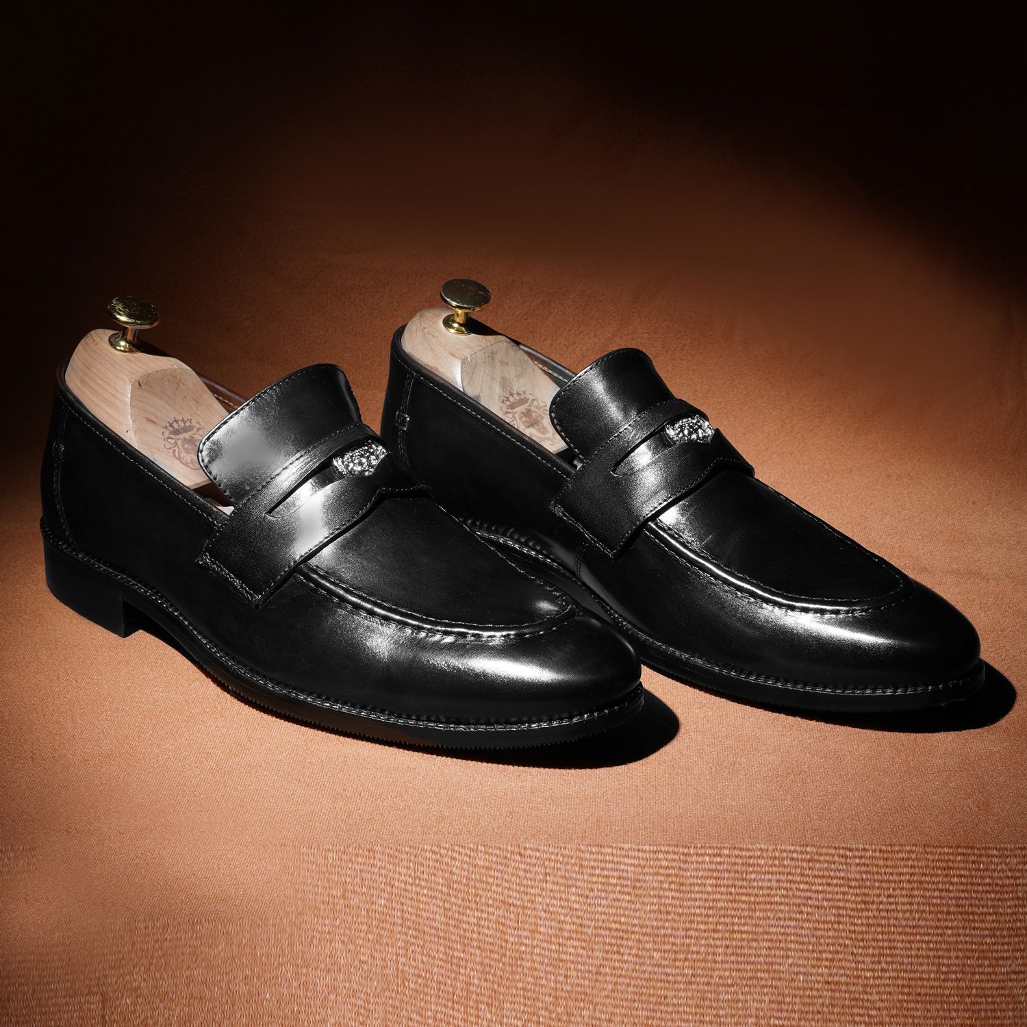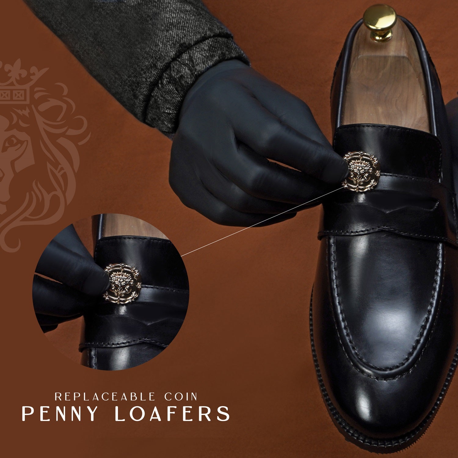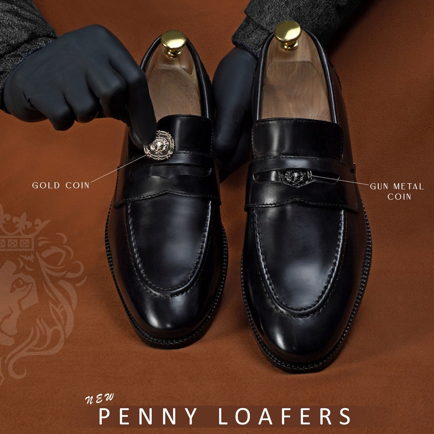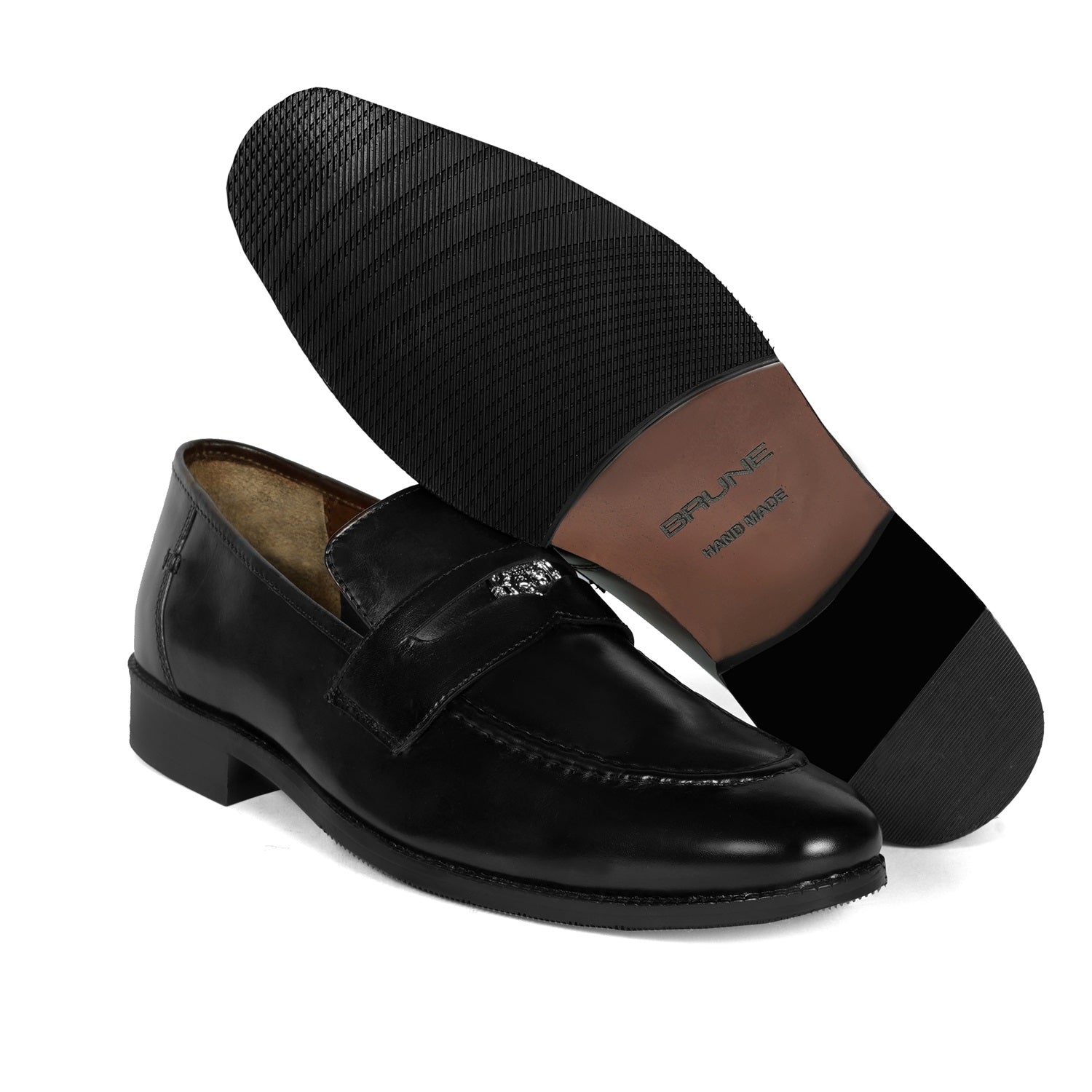 Brune & Bareskin's Loafers are perfect for making a classic and timeless statement. These stylish Black Penny Loafers by Brune & Bareskin will add a touch of sophistication to any outfit. Handmade from Genuine Leather, the iconic style, formal slip-on shoes feature a cut out with the trademark "Brune & Bareskin" lion logo embedded in a front slot. The extra-padded insole and rubber sole provide a comfortable and secure feel. A perfect gift for your man. You can customize this formal shoe in any of your favorite color with our bespoke services.