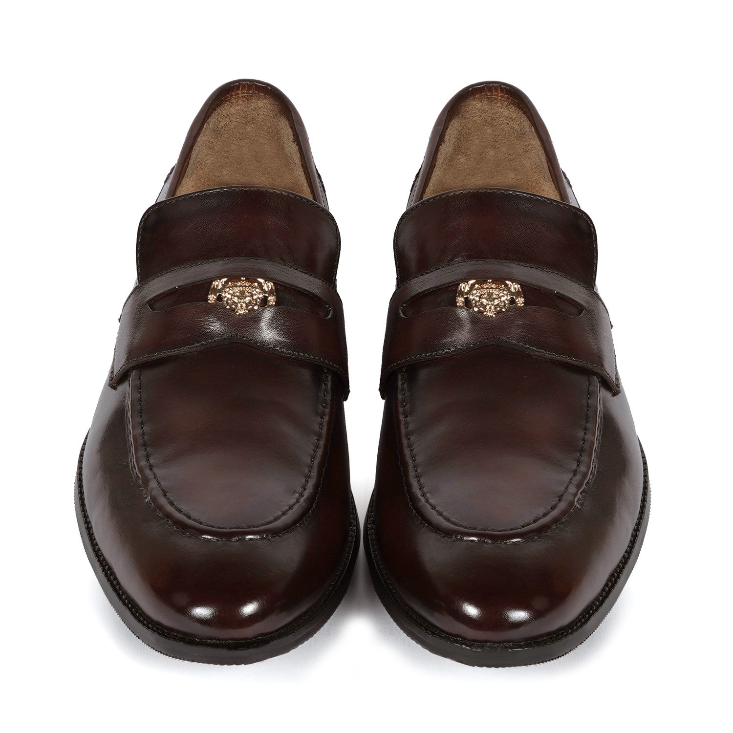 Trademark Lion Logo Penny Loafers in Dark Brown Leather