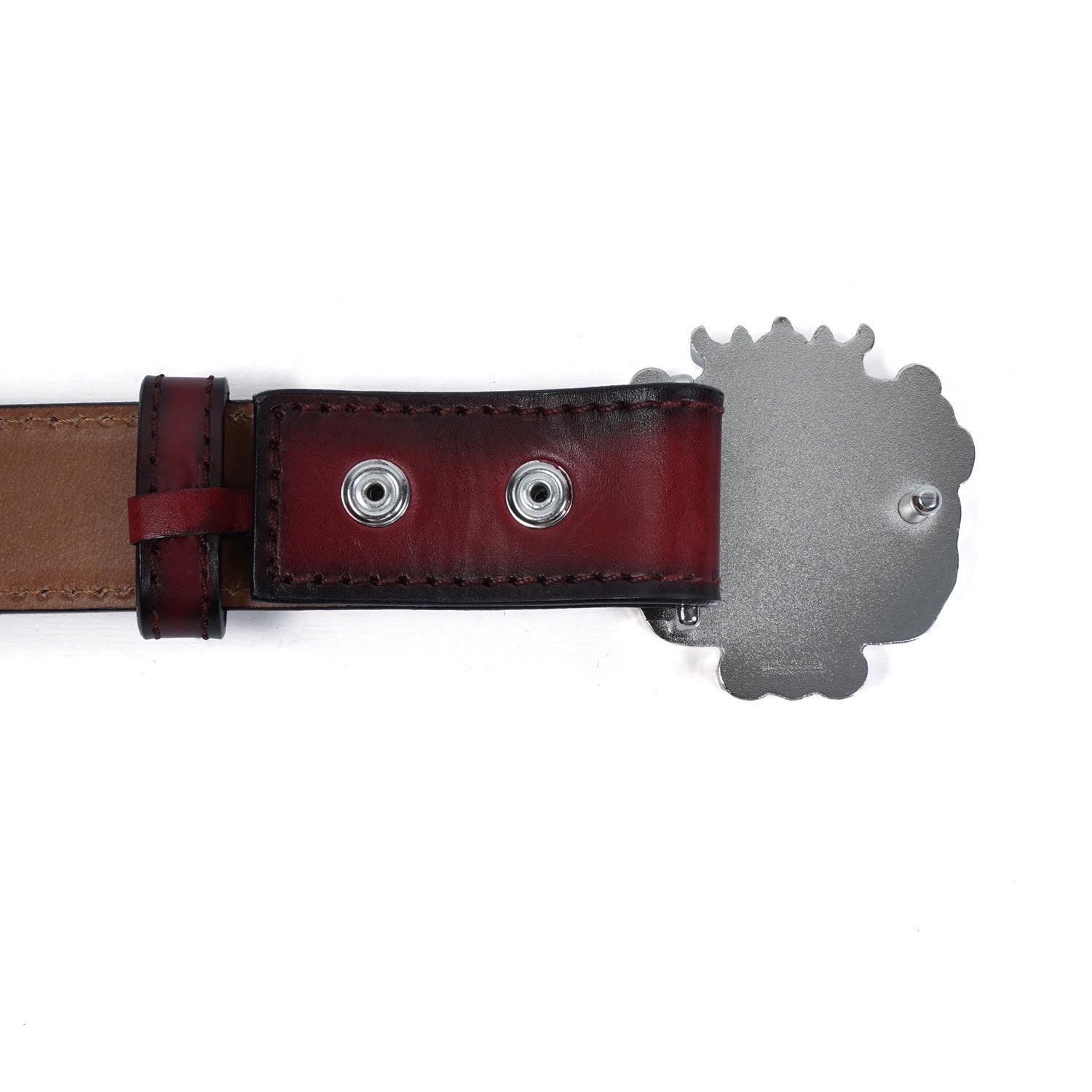 Detachable Trademark Logo Buckle Belt in Burnished Wine Genuine Leather