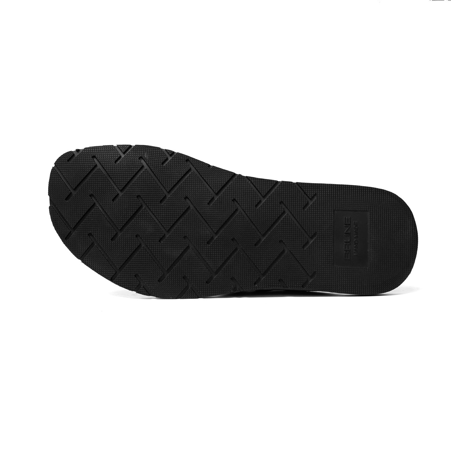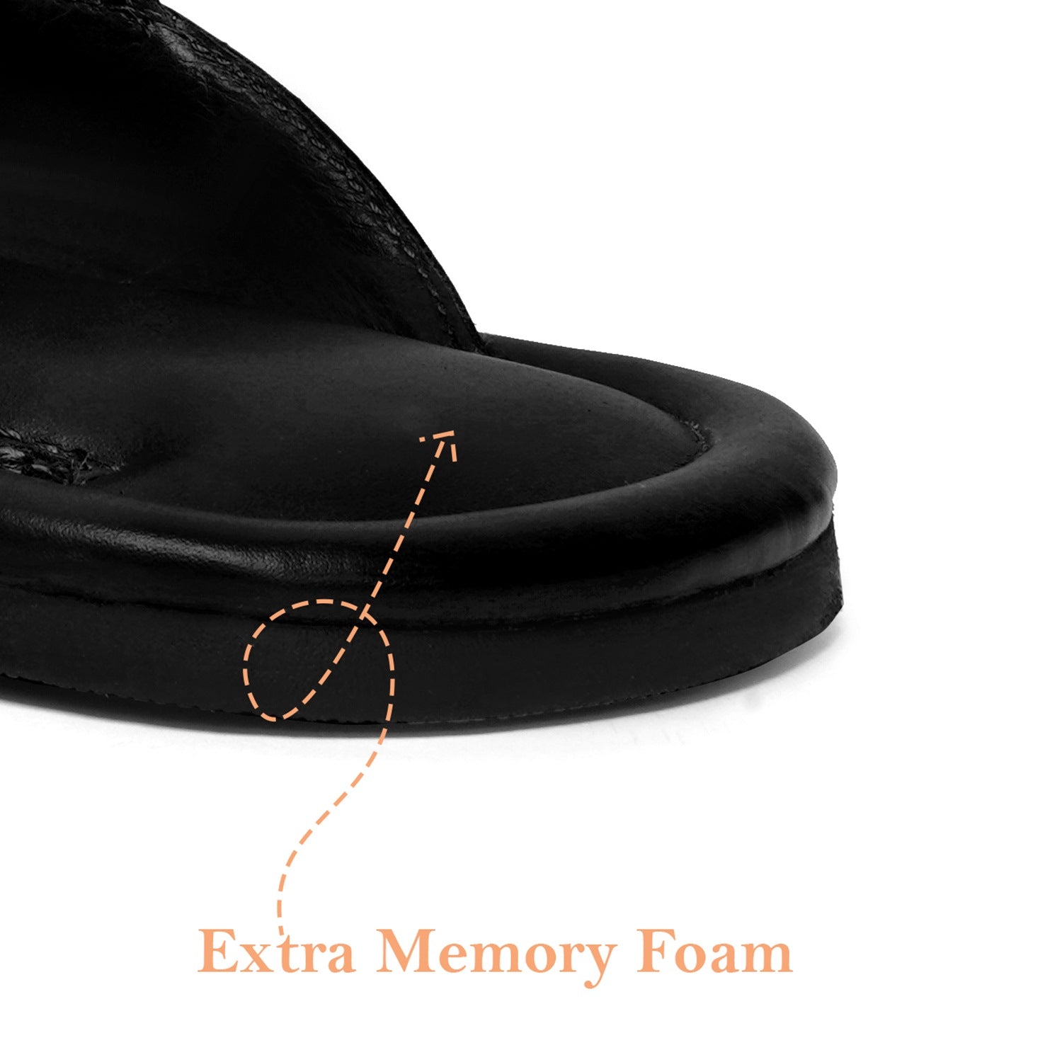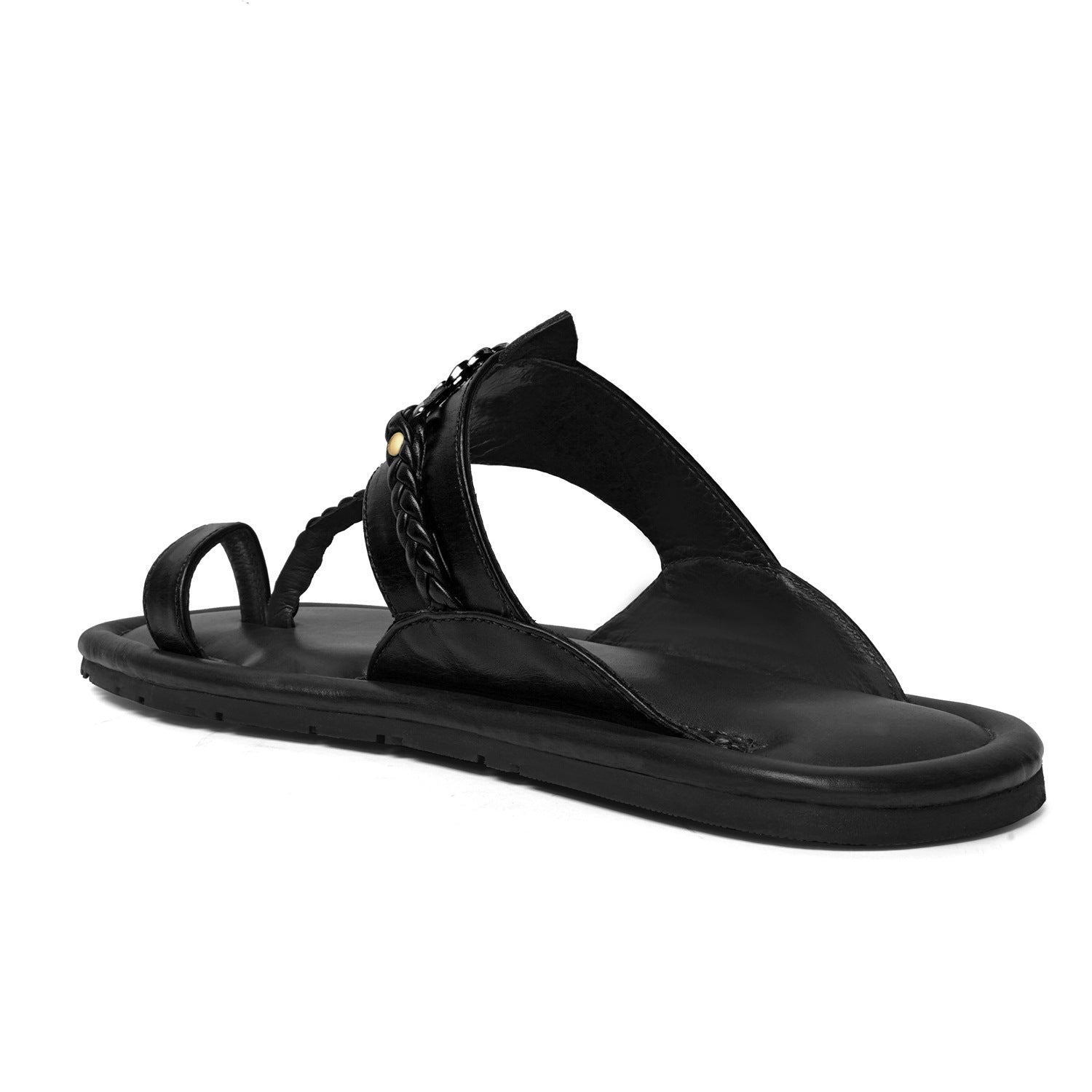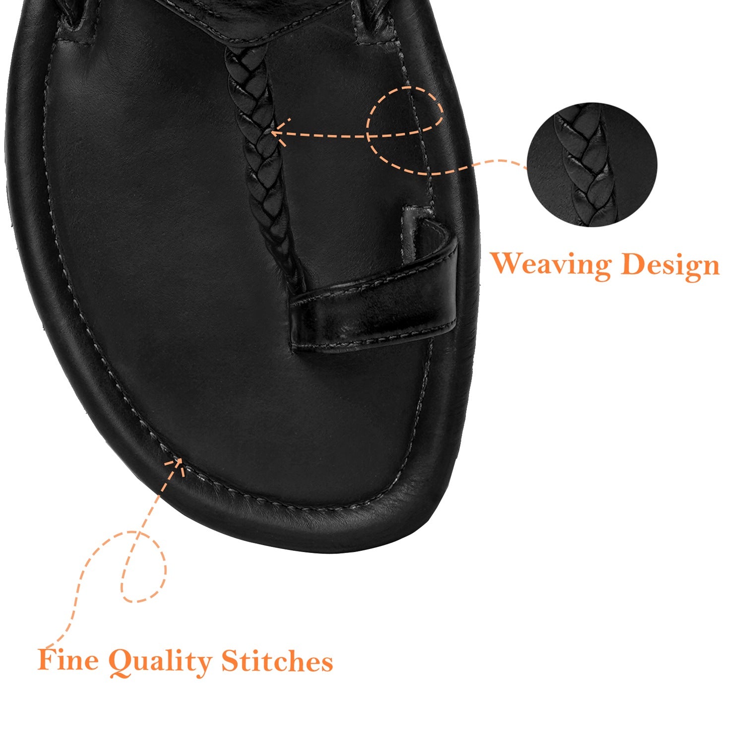 Experience pure comfort and style with the Brune & Bareskin Premium Quality Kolhapuri Slipper. Handcrafted with superior craftsmanship, this black slipper features a T-Bar weaved style strap, perfect for men looking for ethnic and stylish footwear. Constructed with genuine leather and adorned with a gunmetal lion buckle with chain embellishment, this slipper offers a comfortable Square Toe design and anti-skid rubberized sole. Complete your tribal summer footwear collection with this must-have slipper.
