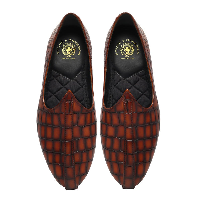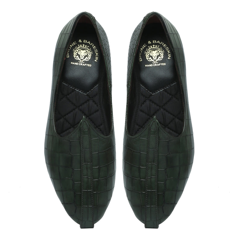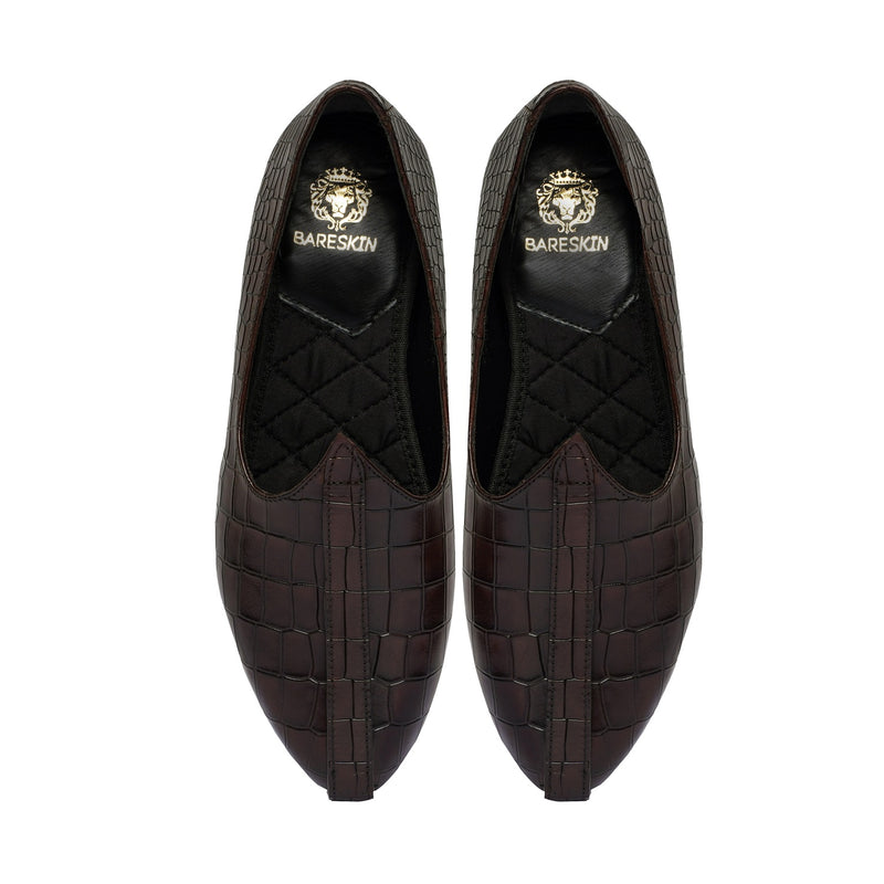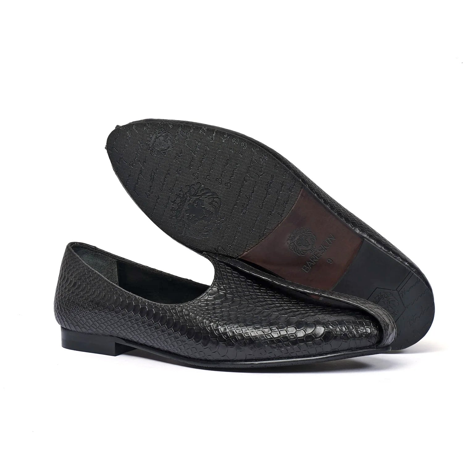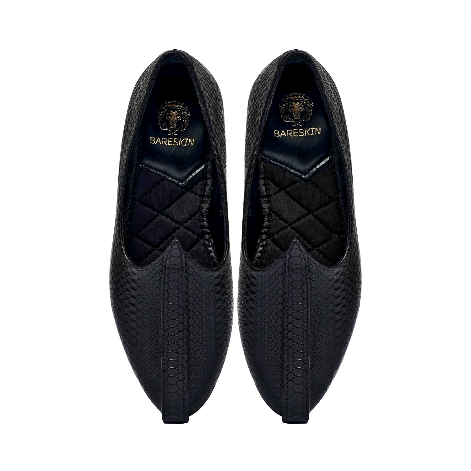 Elevate your ethnic wear with our Snake Skin Black Jalsa Jutti. Crafted from premium quality genuine snake skin textured leather, it not only adds a touch of fashion but is also anti-skid and most comfortable with its padded insole and rubberized sole. Embrace simplicity and style with this must-have piece.