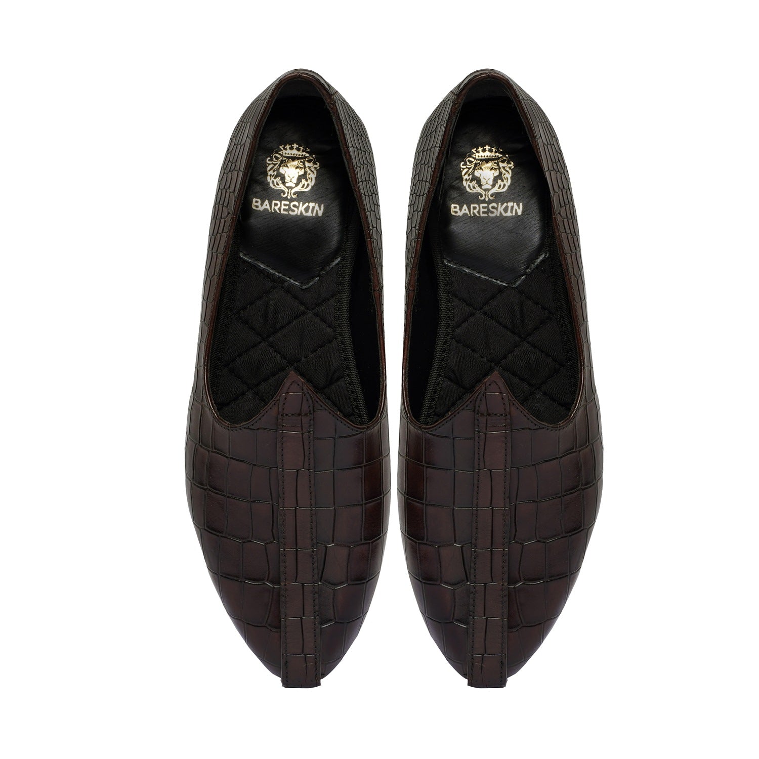 Dark Brown Deep Cut Croco Leather Jalsa Jutti