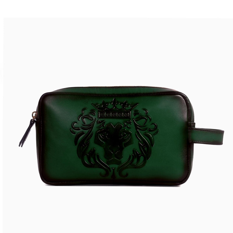 Unisex Blue Genuine Leather Embossed Lion Slim Kit Bag for Travel by Brune & Bareskin