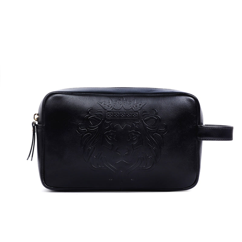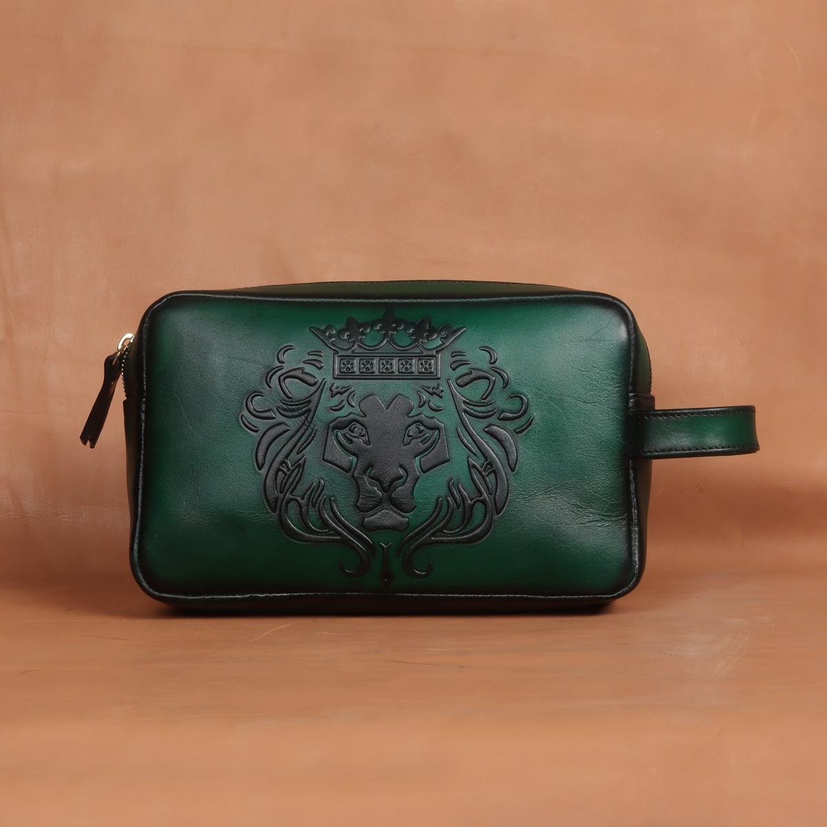 Unisex Green Genuine Leather Embossed Lion Slim Kit Bag for Travel by Brune & Bareskin