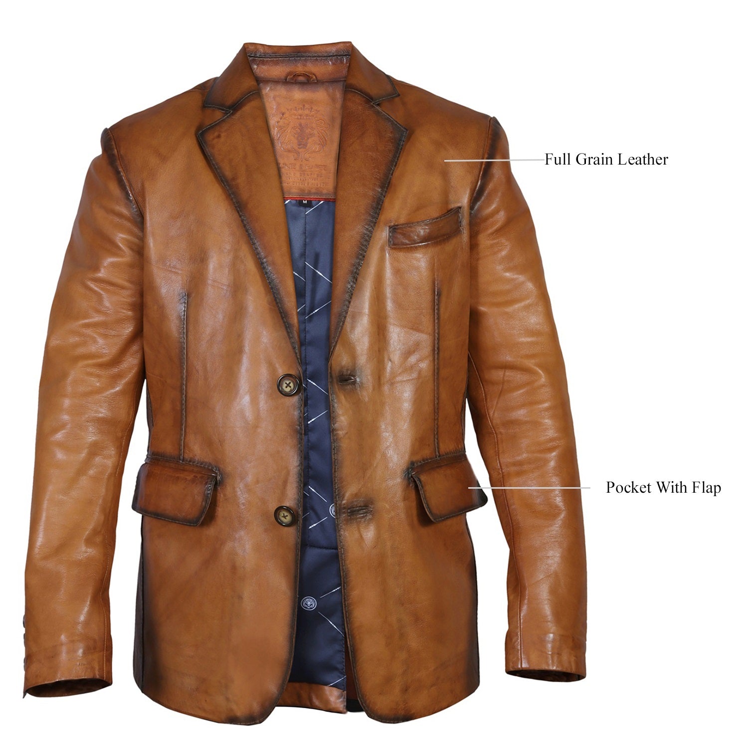 Vintage Style Patina Men's Premium Tan Leather Blazer Jacket