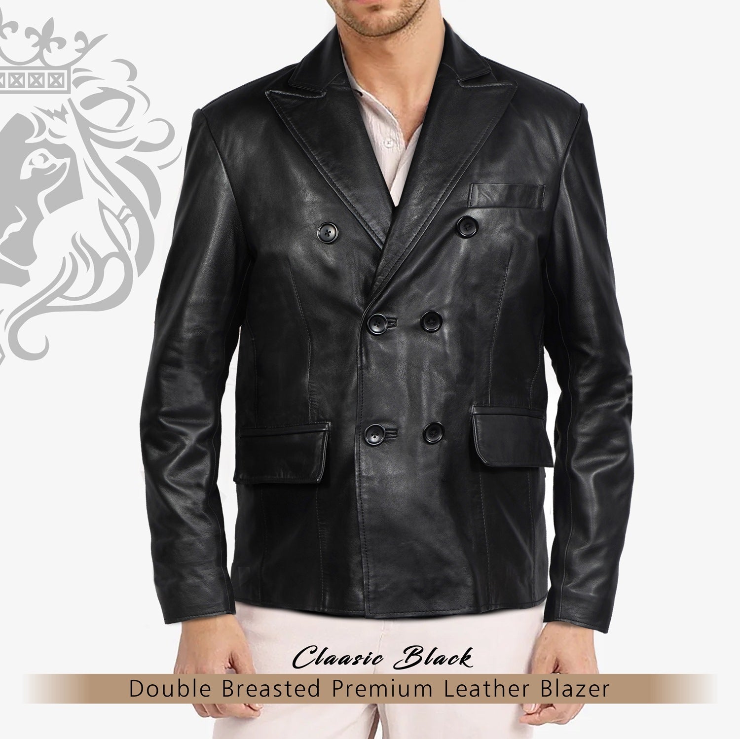 Vintage Style Men's Premium Black Leather Blazer Jacket
