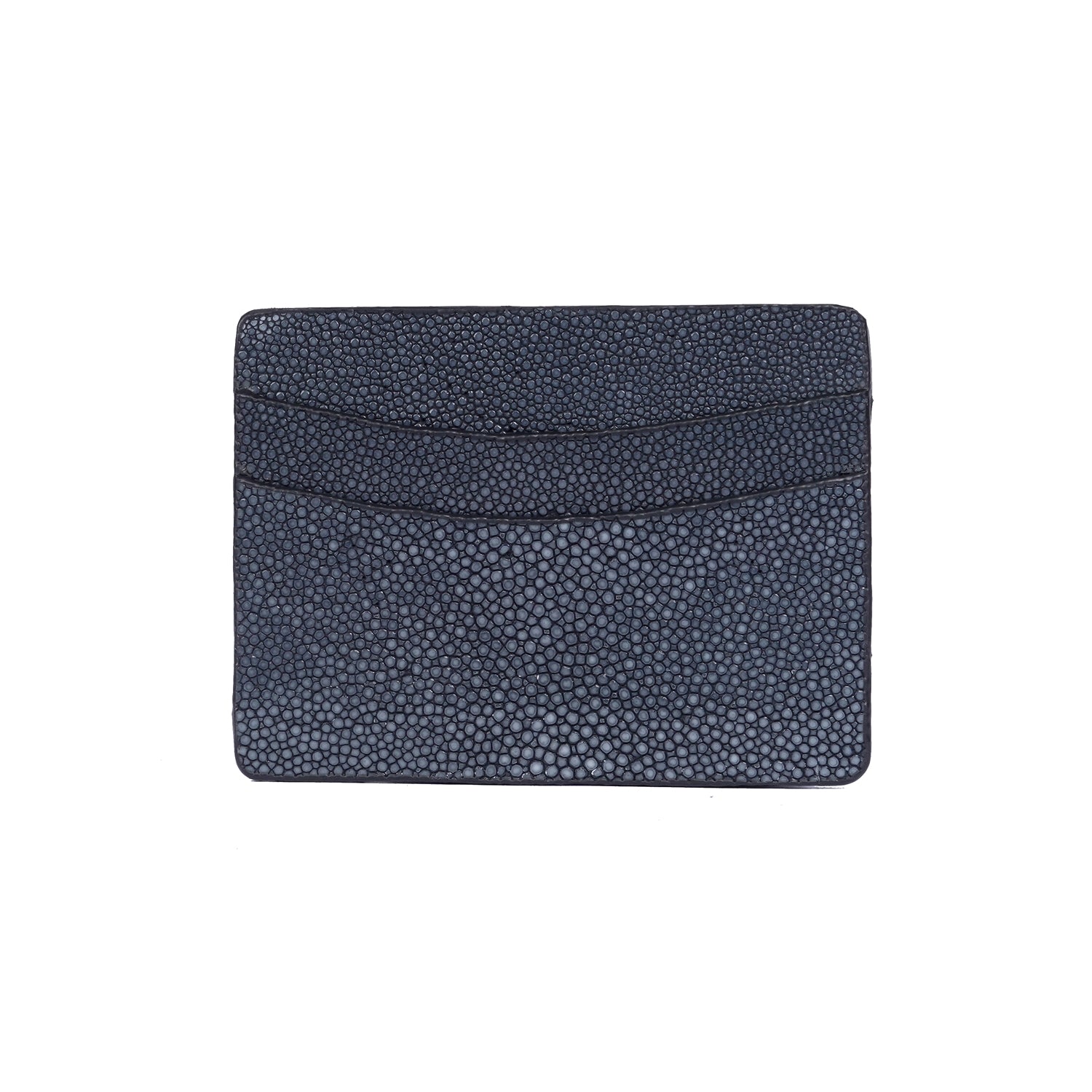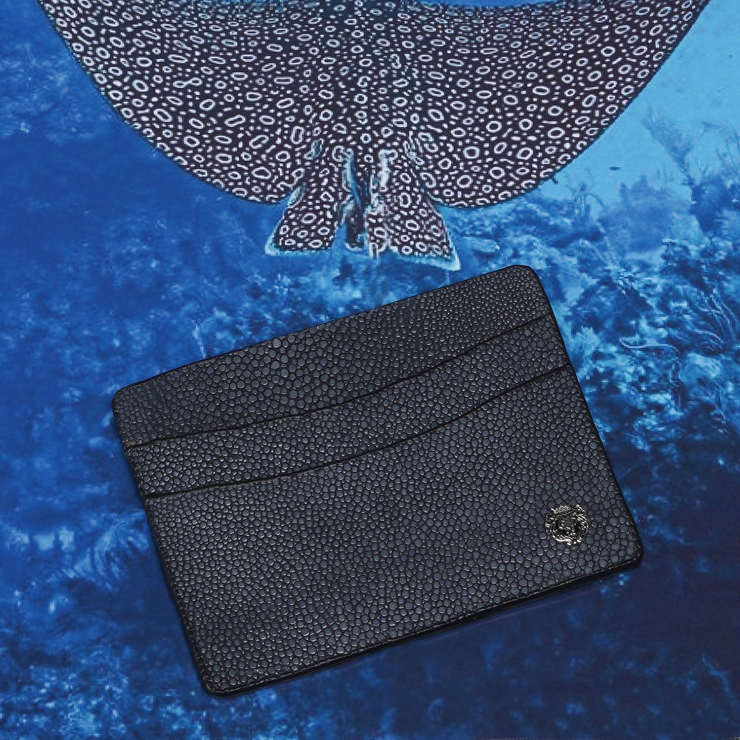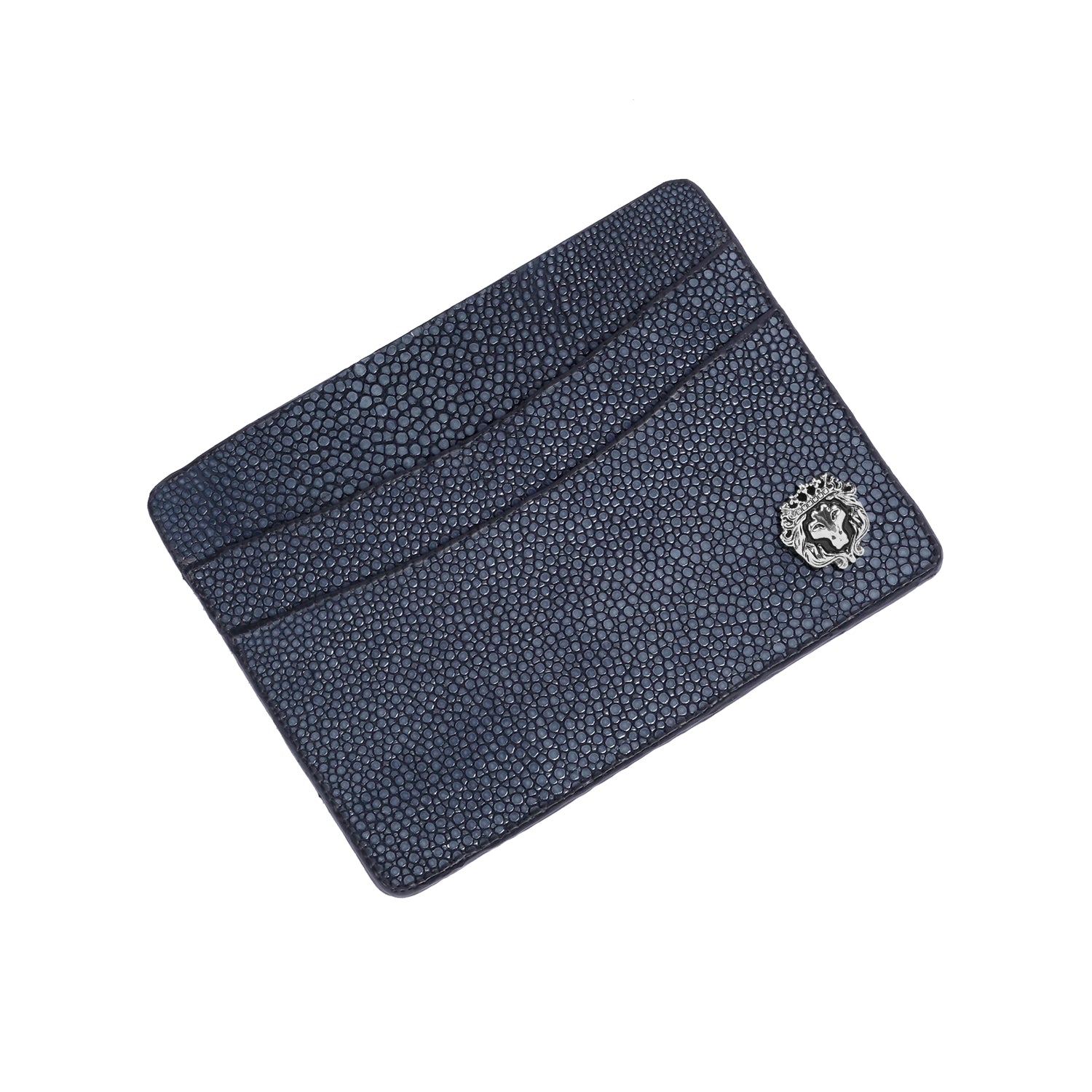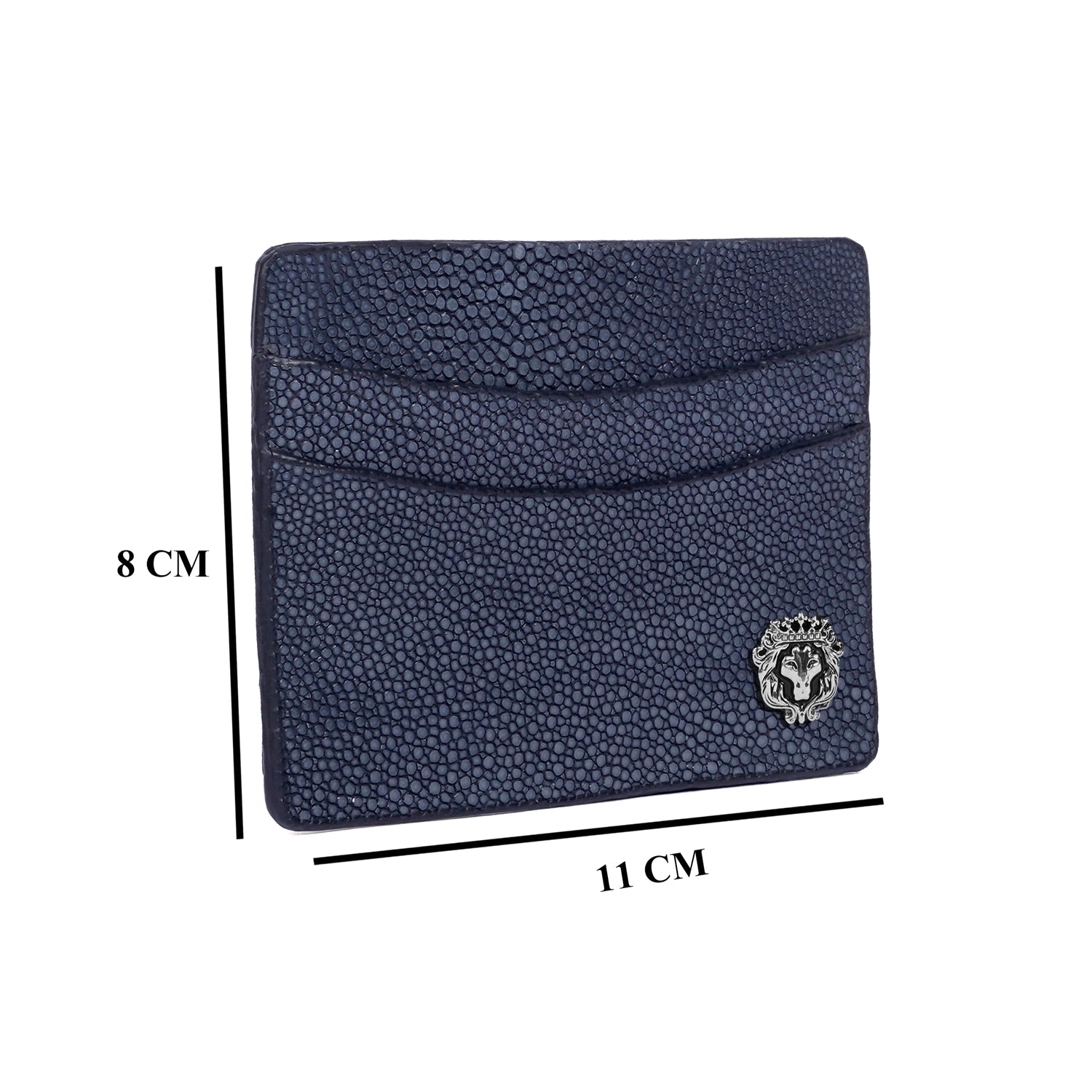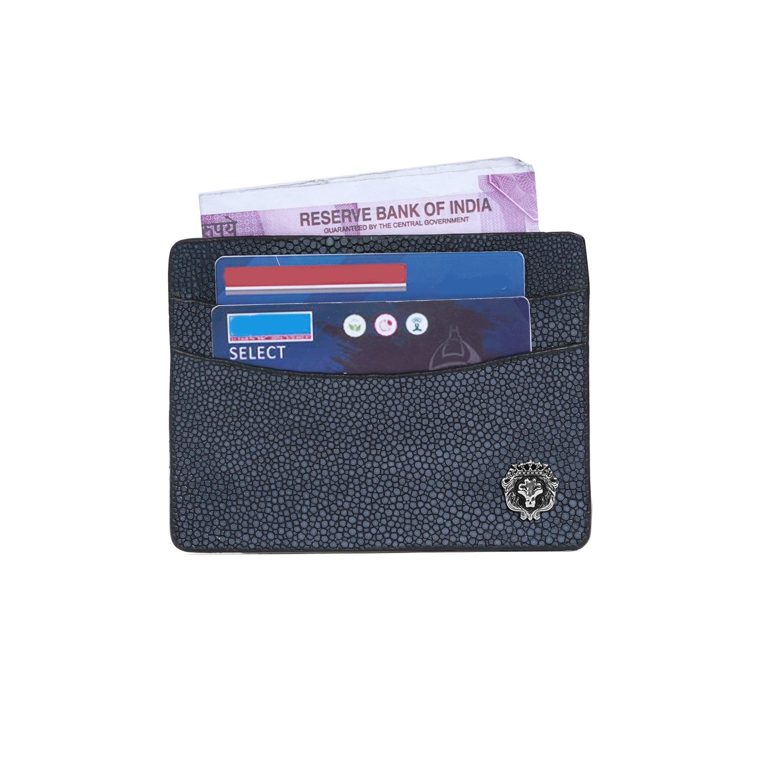 Unisex Card Holder Genuine Stingray Leather With Silver Finish Small Metal Lion