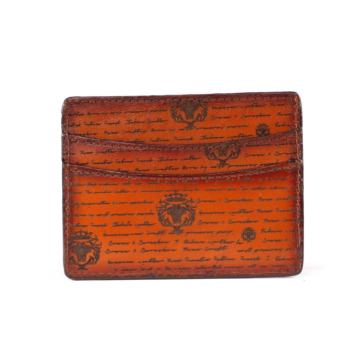Classic Tan Darker Scritto Laser Leather Card Holder with Lion Logo