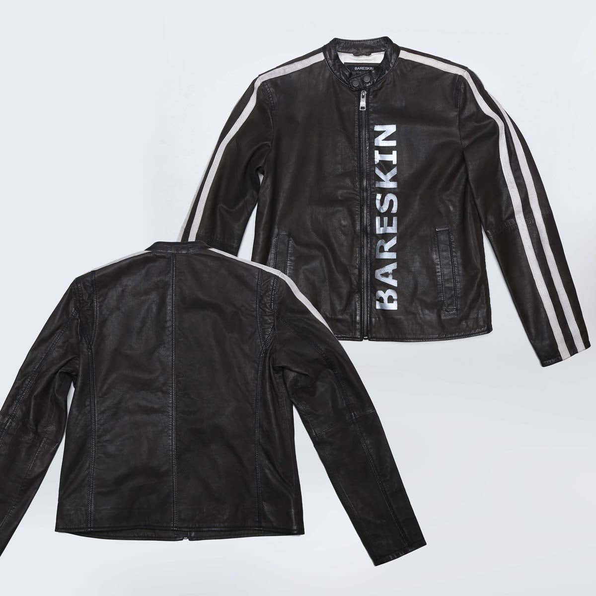 "Just for you' We believe in providing satisfaction to our customers with our handcrafted products. We are introducing a great opportunity for our customers to write their names, initials & embroidery on the products. The Initials can be done with the coloring technique. This Biker Jacket is specially customized for one of our customers in Black Leather & White Stripes along with Brune & Bareskin printed on it. You can click on CUSTOMIZE NOW Button (Just above "ADD TO CART" button) & fill the form to submit your customization requirements. Or you can reach us by Call, Email, Whats app and DM.