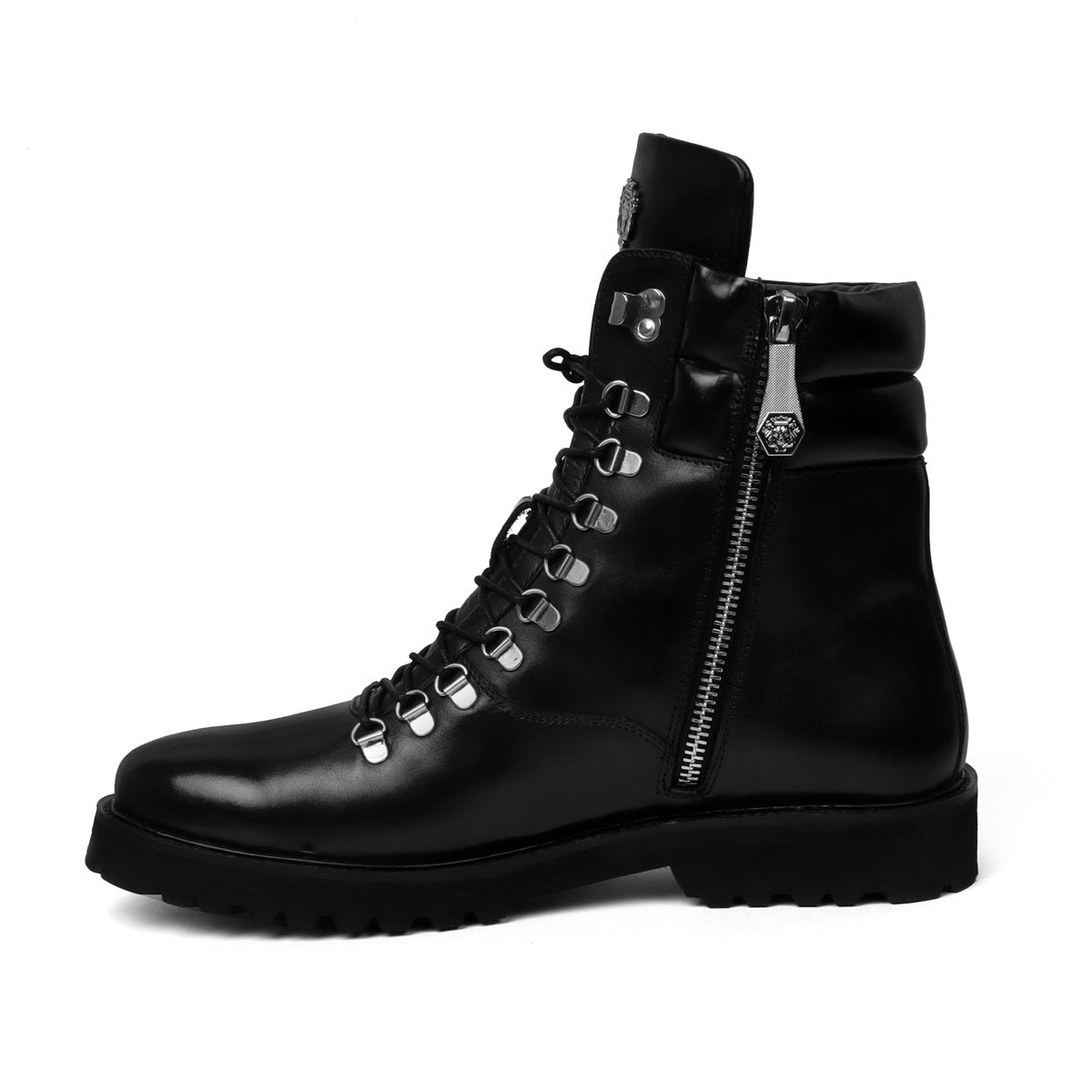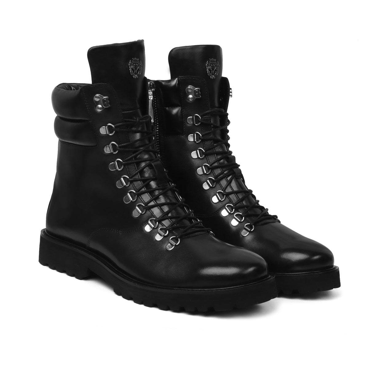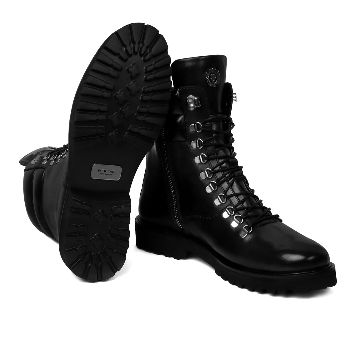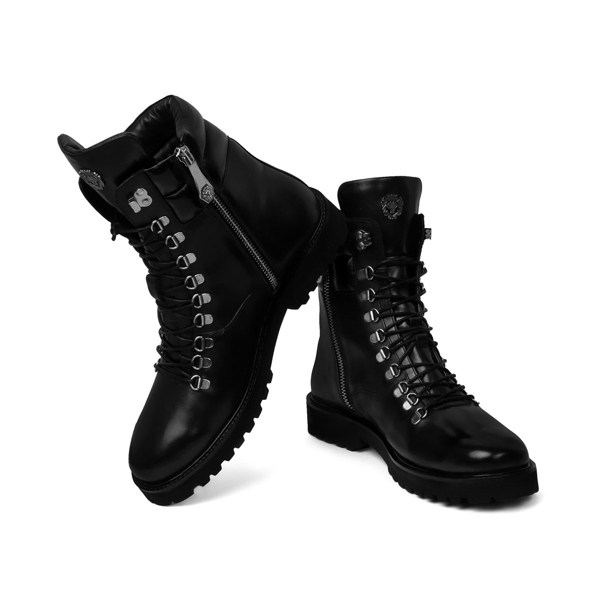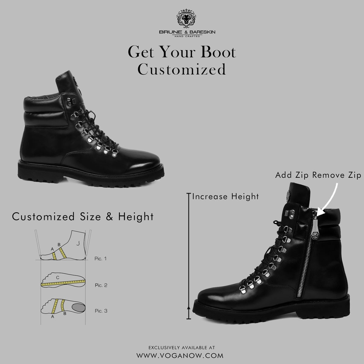 Customized Height Bespoke Black Leather Light Weight Biker Boots For Men By Brune & Bareskin
