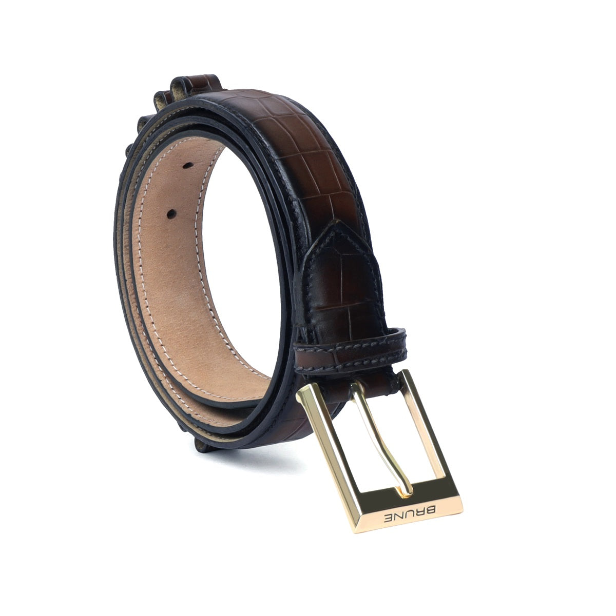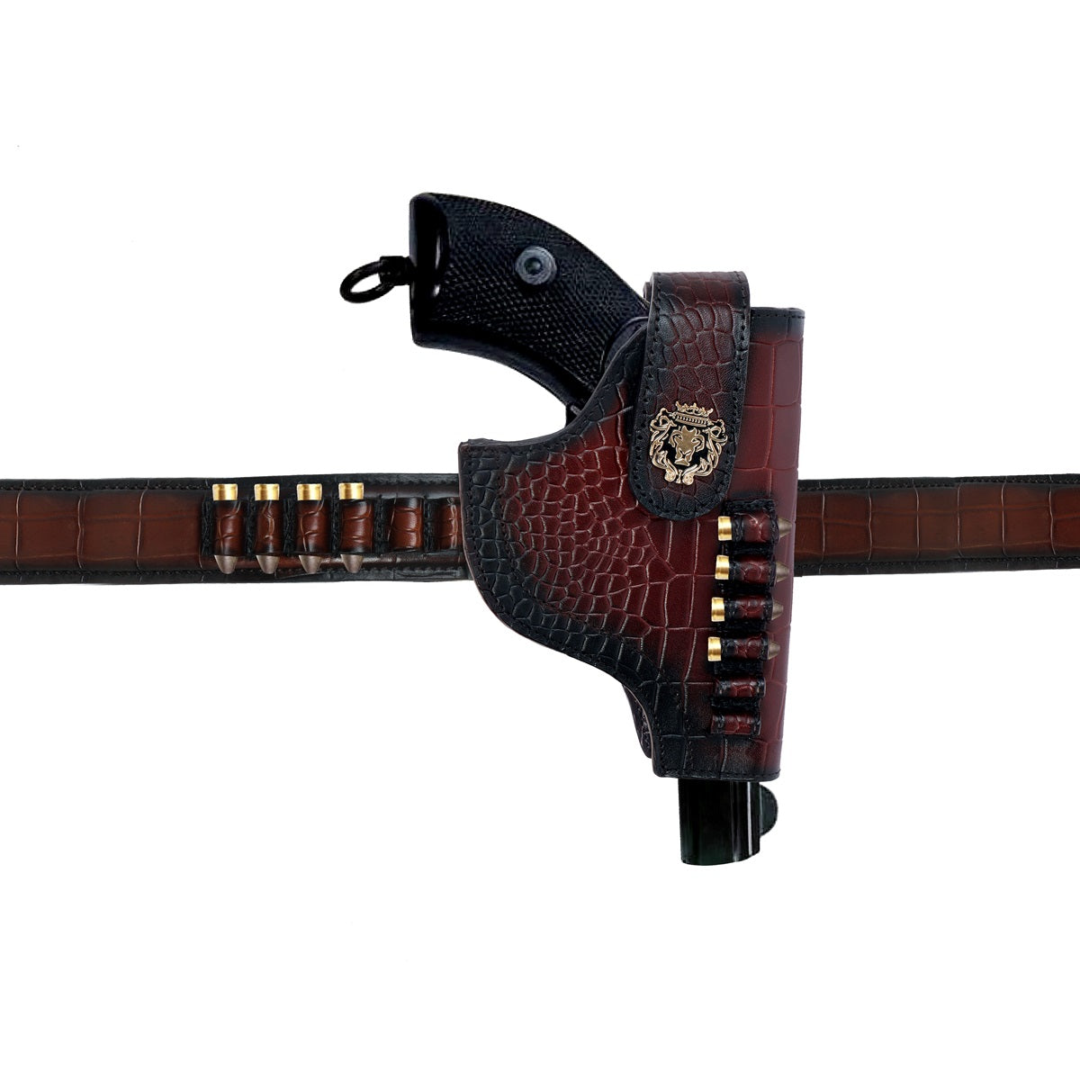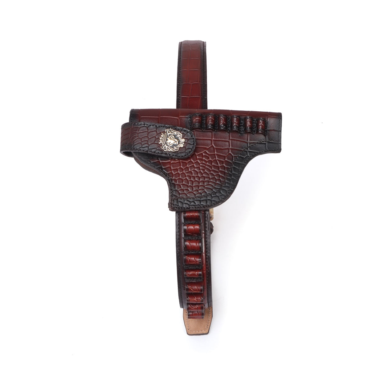Bespoke Dark Brown Cut Croco Leather Combo of Gun Cover & Bullets Holder Belt by Brune & Bareskin