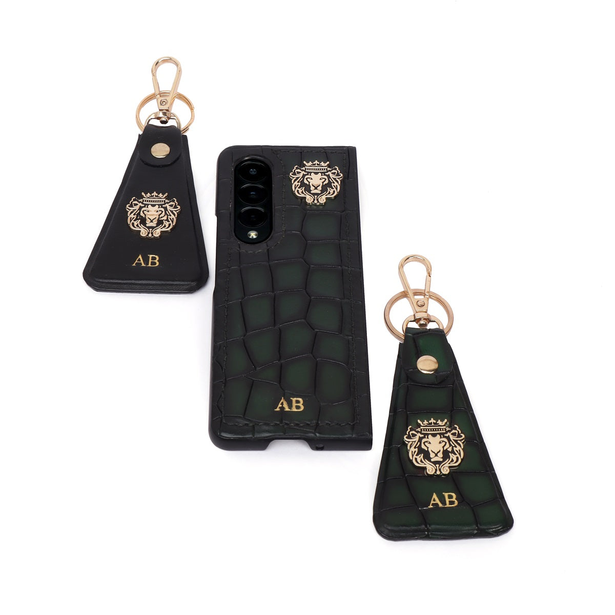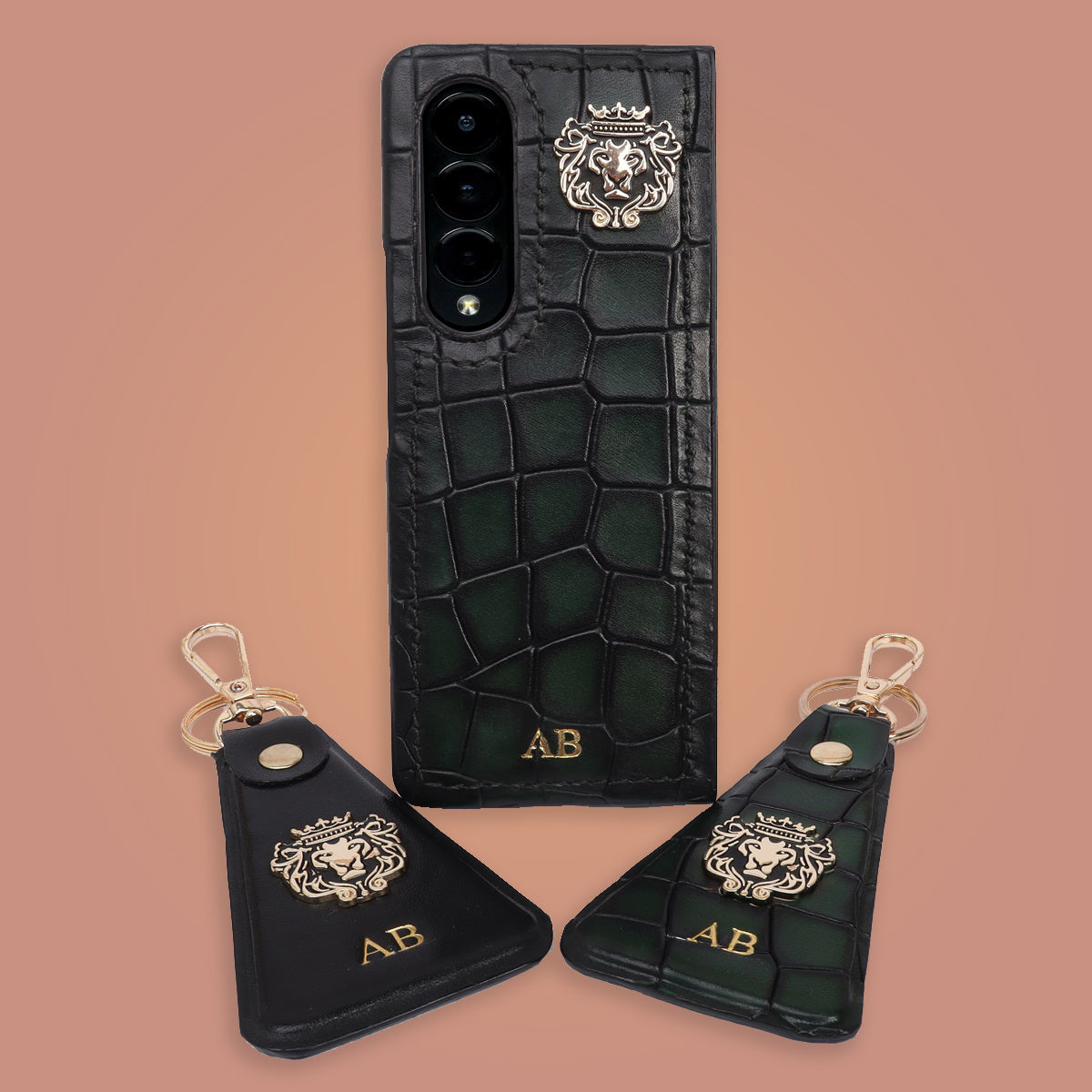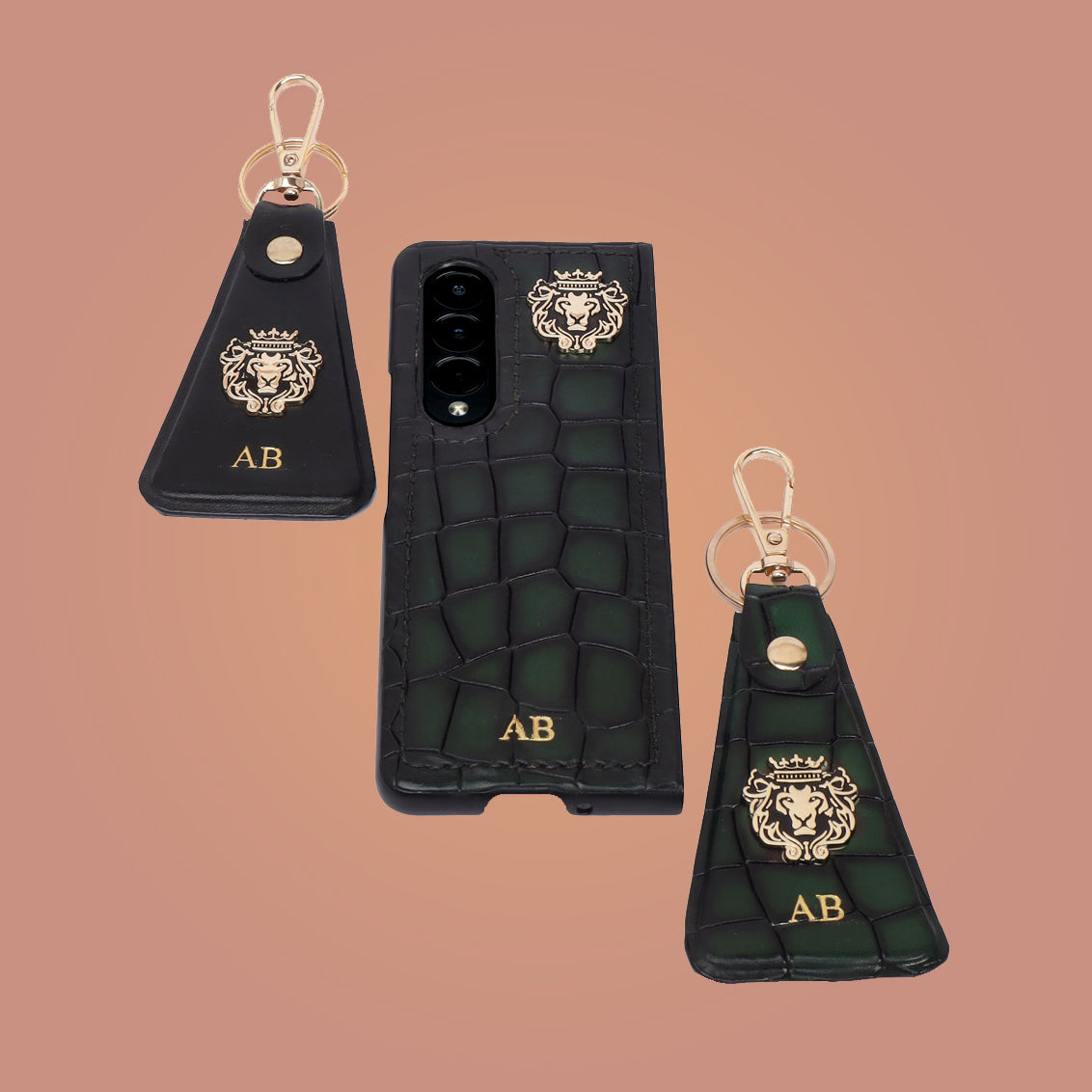 This combo is a perfect for the Cut Croco lovers out there. It is a must have combo to show your class and style statement in Formals and Casuals. The BRUNE & BARESKIN signature metal Lion brand logo increases the style quotient. The latest genuine leather Accessories are made to give you an extra style edge. The elegant combo you would love to have. This deep-cut croco print leather and genuine leather combo leaves a remarkable mark of trend. The subtly embossed branding makes a perfect look with the entire design language. BRUNE & BARESKIN Handcrafted Green Deep Cut Croco leather is used to craft this exclusive Combo for a client. "AB" Name Initials is done with Embossed branding technique elevating its look. We are giving personalized options to choose your choice of color & product to create a combo itself also. You can customize this further in your favorite color and also add the name initials. Our Bespoke service make it a perfect gifting combo for the gentlemen.