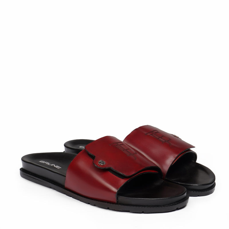 Get ready for summer with our Adjustable Strap Slider Summer Slipper. Featuring a flap over Velcro strap and deep cut croco embossed leather with a Smokey finish, these slippers are as stylish as they are comfortable. The adjustable strap and extra cushioned insole make for a perfect fit, while the welted sole adds durability. With a classic and elegant design and contrasting silver lion logo, these flip-flops by Brand Brune & Bareskin will make you stand out in any summer outfit. Don't miss out on the ultimate summer footwear.