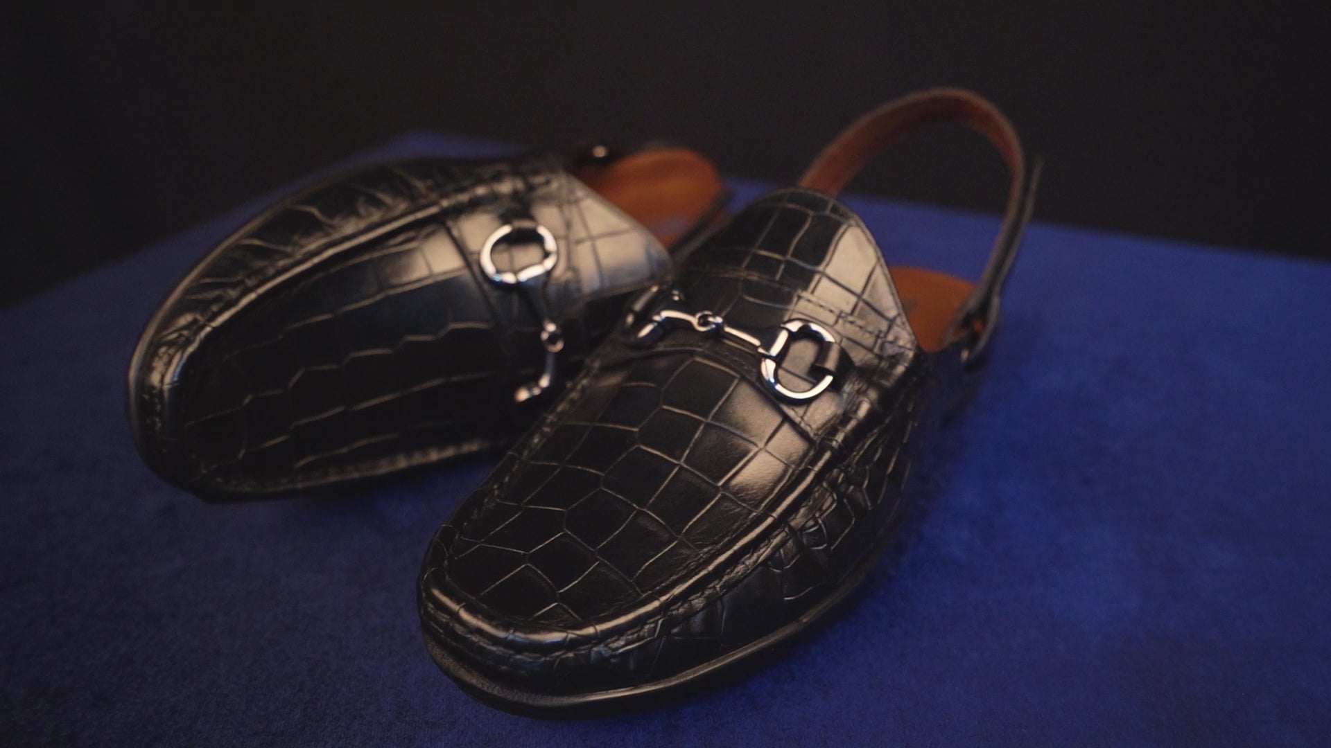 Introducing the perfect addition to your summer footwear collection - the luxurious black men's sandal from Brune & Bareskin. Handcrafted with premium quality deep cut croco textured leather, the patina finish adds a touch of sophistication. The eye-catching gun metal horse-bit buckle detailing, along with the adjustable velcro strap and soft inner sole, provide superior comfort for every occasion. Team with any casual outfit for a stylish and comfortable look.