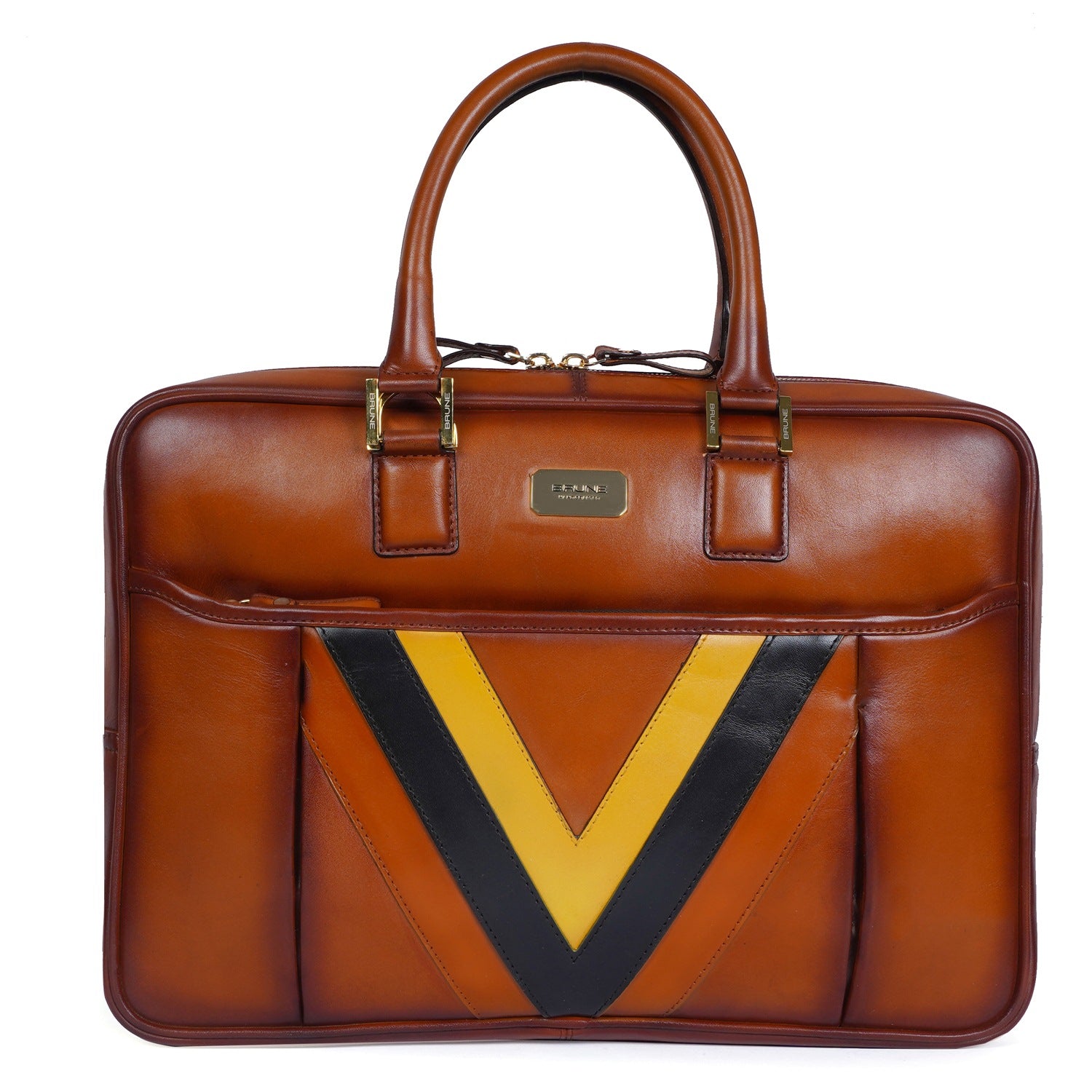 Tan Office Briefcase with Tri Color Leather Trims
