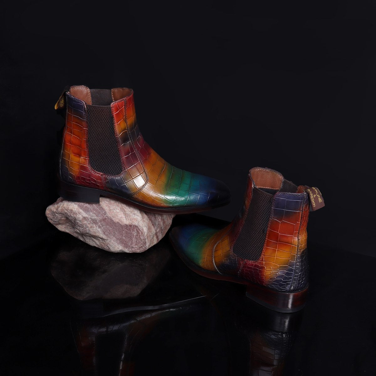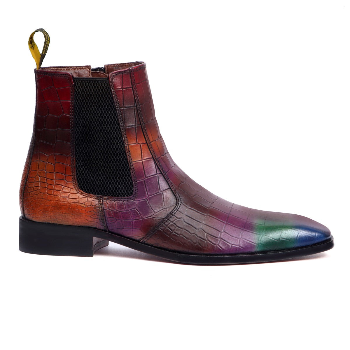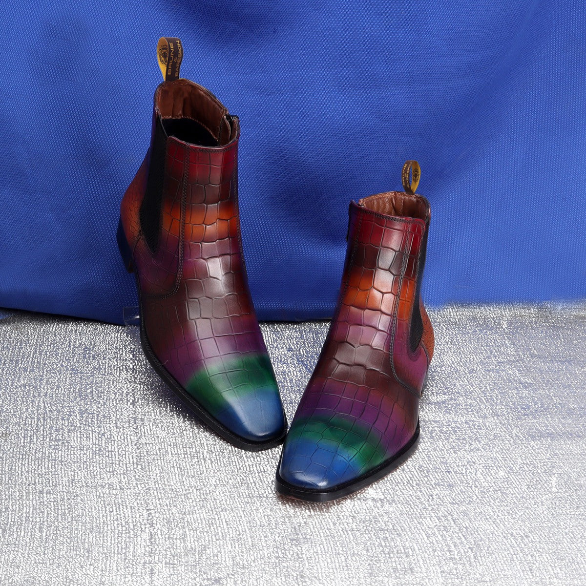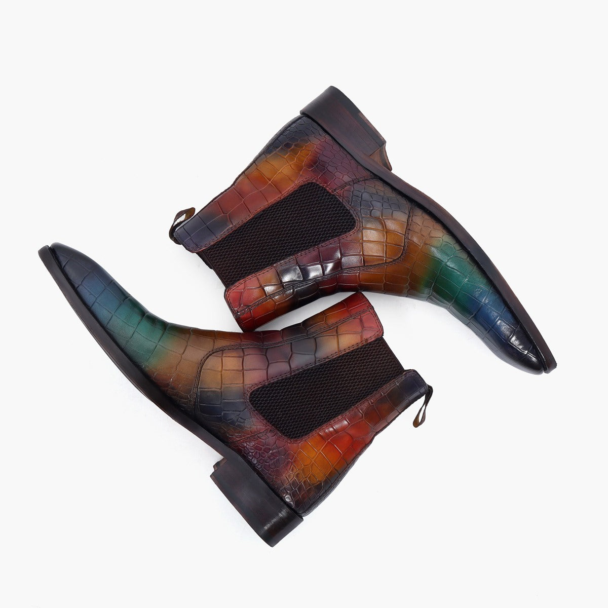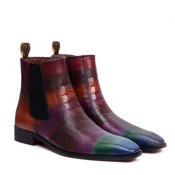 Multi-Colored Croco Textured Leather Chelsea Boots