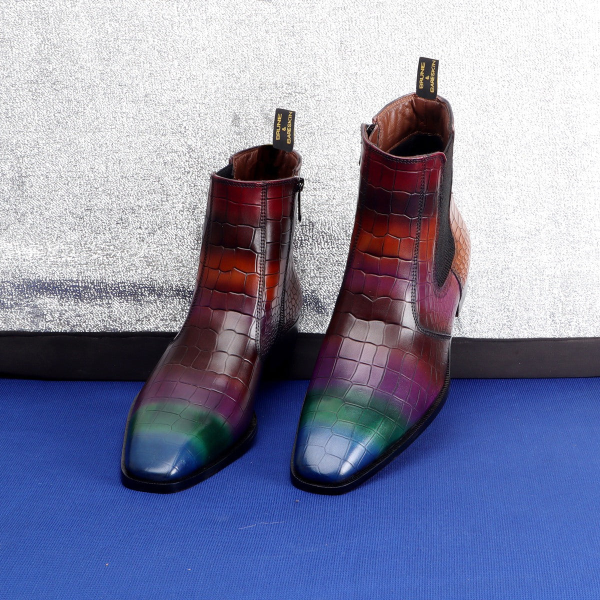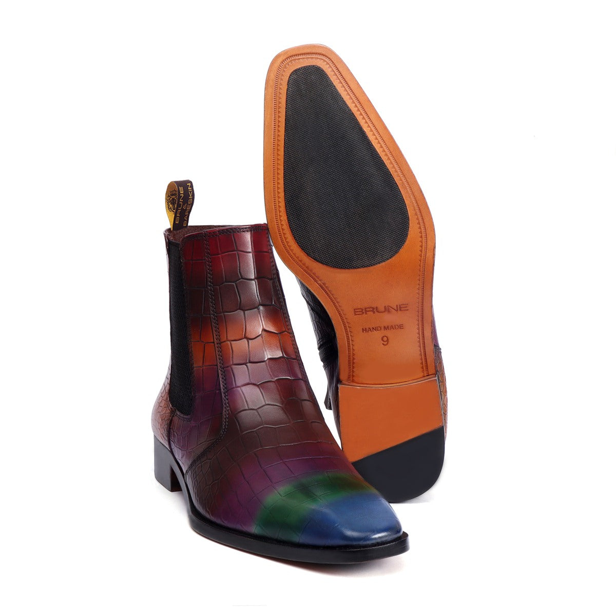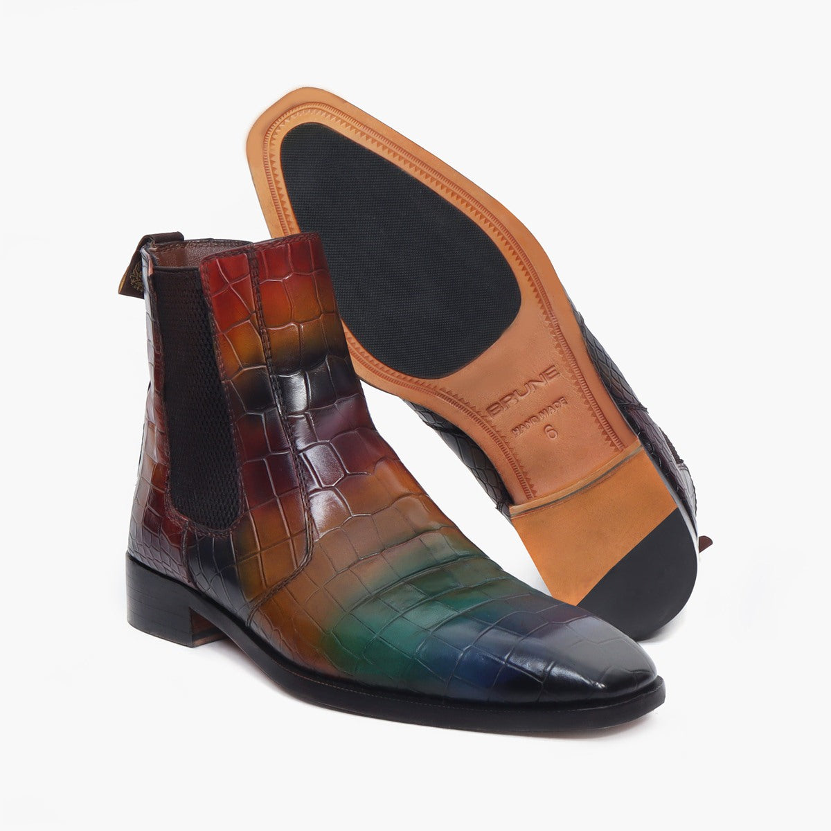 Multi-Colored Croco Textured Leather Chelsea Boots