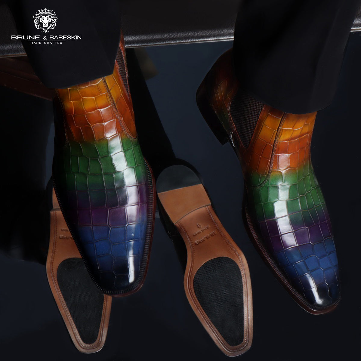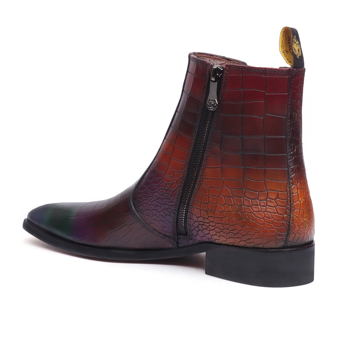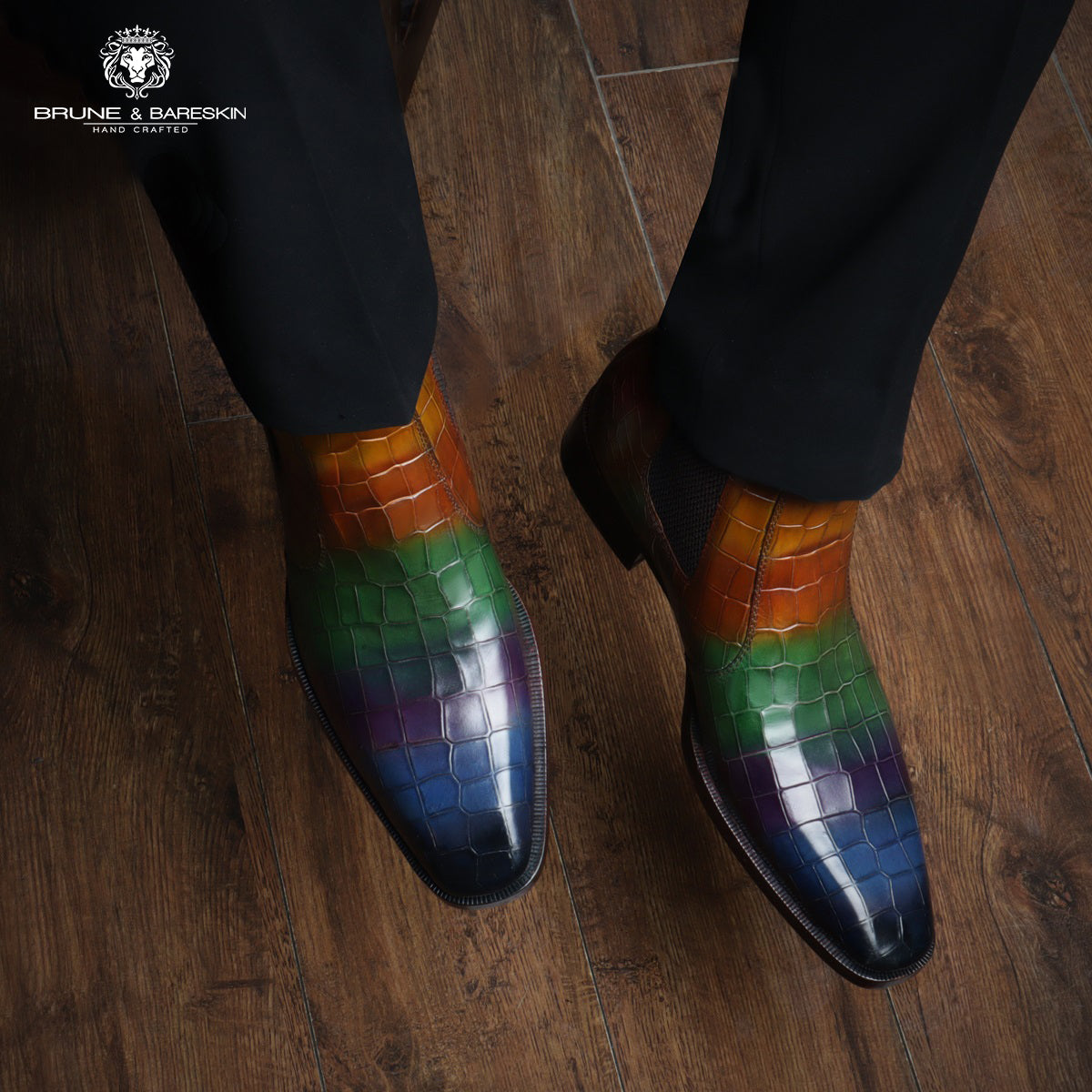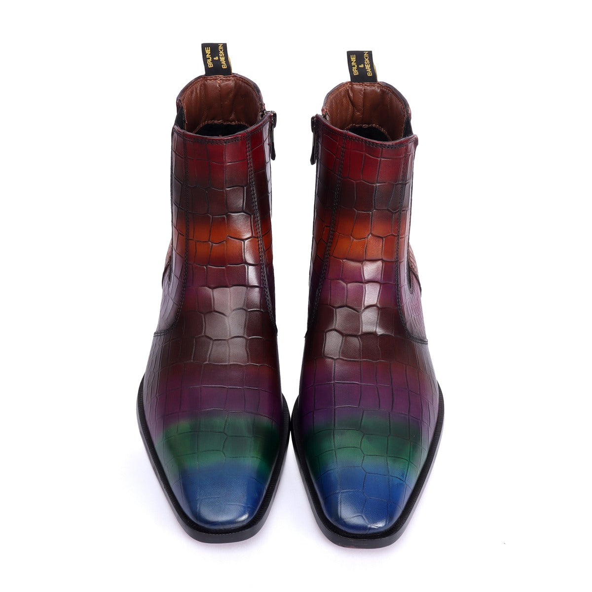 Multi-Colored Croco Textured Leather Chelsea Boots
